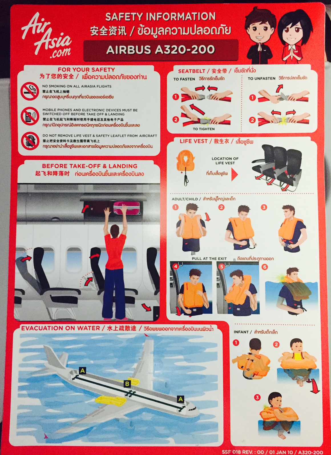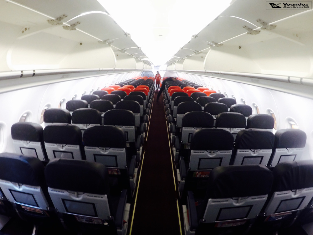 – o Airbus A320 que operaria este voo tinha o prefixo HS-ABK, foi entregue novo à Air Asia em novembro de 2009 e está bem conservado; este avião pode carregar até 186 passageiros na clássica configuração 3×3 (três poltronas de cada lado); a LATAM (ex-TAM) também opera este modelo de Airbus e os configura com apenas 174 passageiros no máximo, ou seja, a Air Asia “enfiou” mais 02 fileiras de poltronas no mesmo modelo de avião; não há sistema de vídeo para entreter os clientes; a ocupação deste voo era de 60%