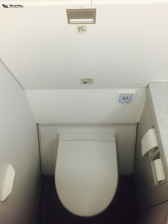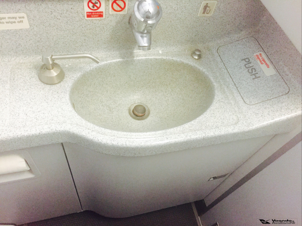 – depois das compras, aproveitei que estava bem perto e fui conferir o banheiro da parte traseira: achei espaçoso, em especial para um avião de corredor único; além disso, ele estava bem conservado e limpo