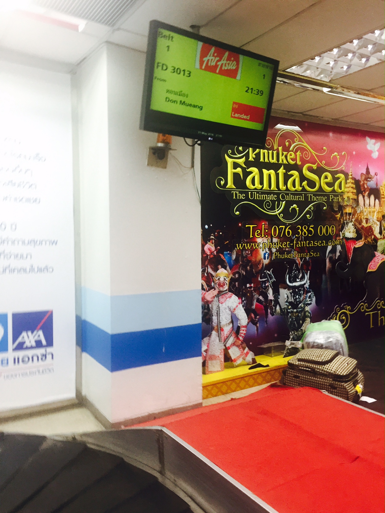 – as malas dos passageiros estavam disponíveis na esteira 01; quando cheguei lá, a minha bagabem tinha acabado de ser “arremessada” para a esteira, não perdi tempo algum; a AirAsia coloca uma placa com o número de voo para facilitar a vida das pessoas em busca das suas malas