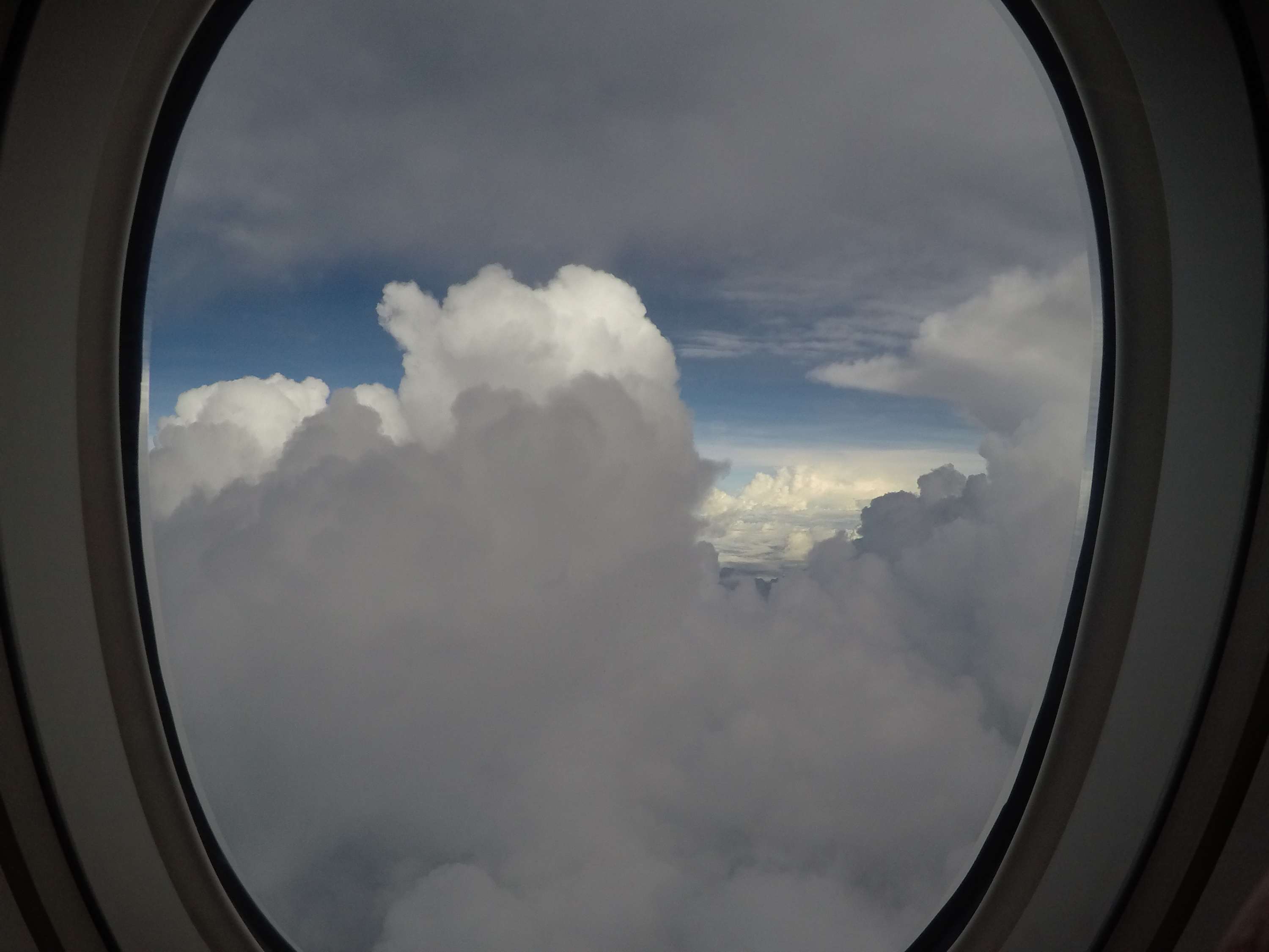 – quando atingimos nossa altitude de cruzeiro, a paisagem lá fora melhorou: as nuvens da 1ª parte do voo desapareceram e um lindo céu azul surgiu na janela