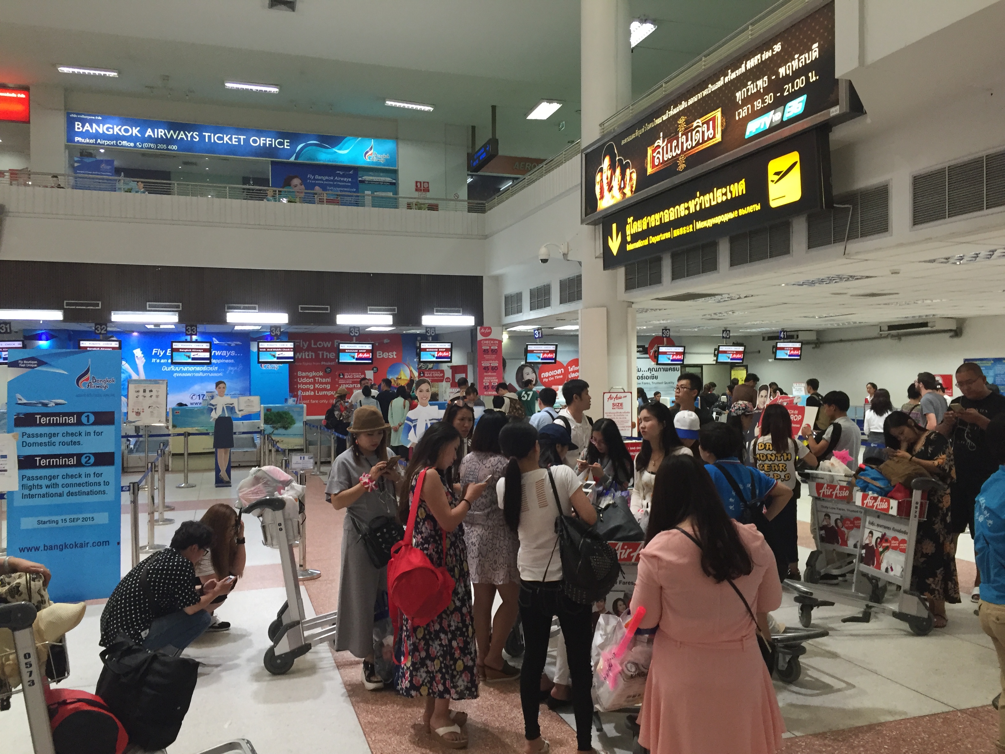 – o esquema de segurança é grande neste aeroporto, ninguém entra no terminal sem passar pelo controle de raio-x que está instalado na entrada; a estrutura do Terminal 2, onde a THAI opera, é antiga e no extremo esquerdo é possível ver a que o prédio do Terminal 1 está sendo modernizado