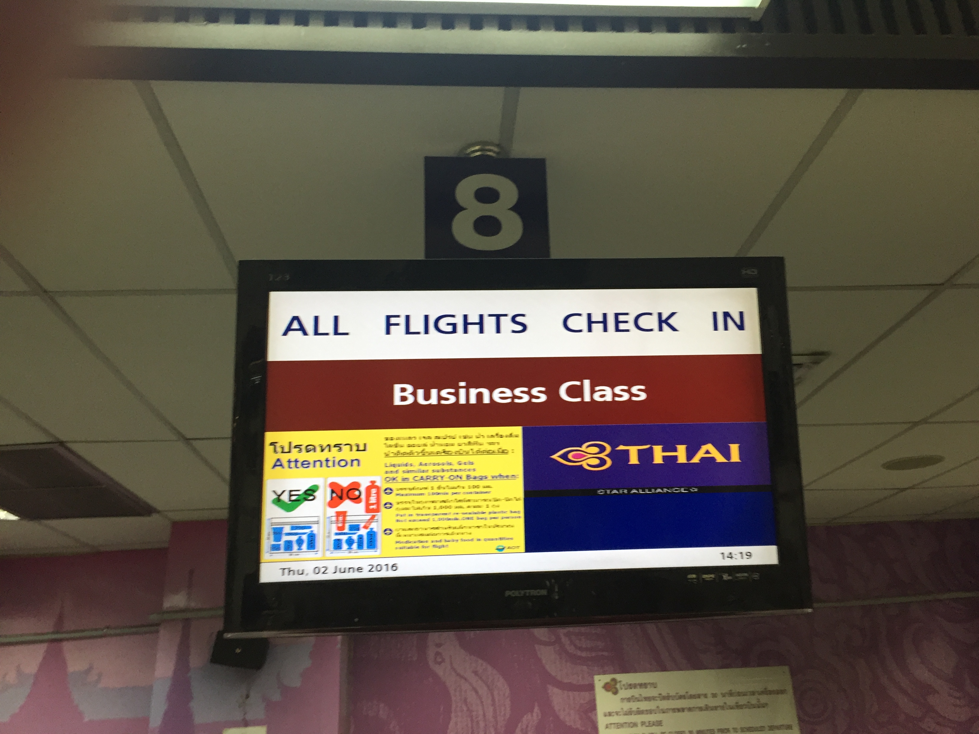– a THAI opera 12 guichês de check-in aos seus passageiros neste terminal e 02 são dedicados para a classe Executiva; não havia filas quando cheguei, somente passageiros sendo atendidos no balcão