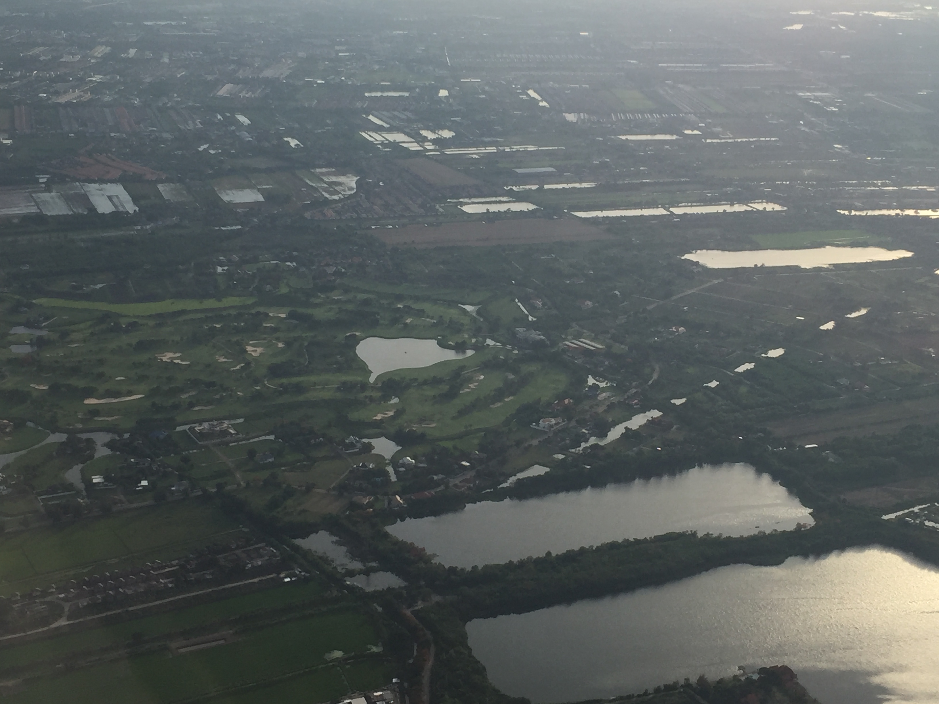 – na aproximação para pouso no Aeroporto de Bangkok/BKK, foi possivel reparar como a agricultura exerce uma relevância na economia tailandesa, os campos e açudes preenchem toda a visão da janela do avião