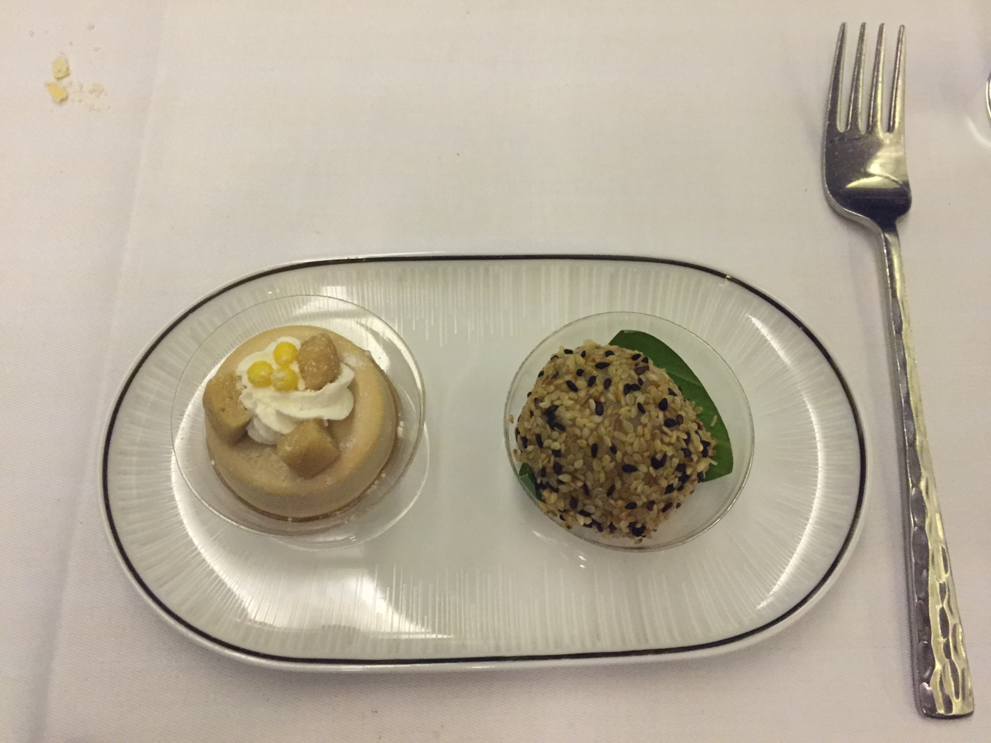 – apesar do voo ser curto (previsão de 01 hora e 15 minutos), foi servida uma refeição: um macarrão tipo yakisoba, com legumes, frango e camarão (eu encontrei apenas 02 perdidos), com um doce de nozes como sobremesa; para acompanhar, suco de laranja (não foi oferecida bebida alcóolica neste voo); no geral, foi apenas razoável
