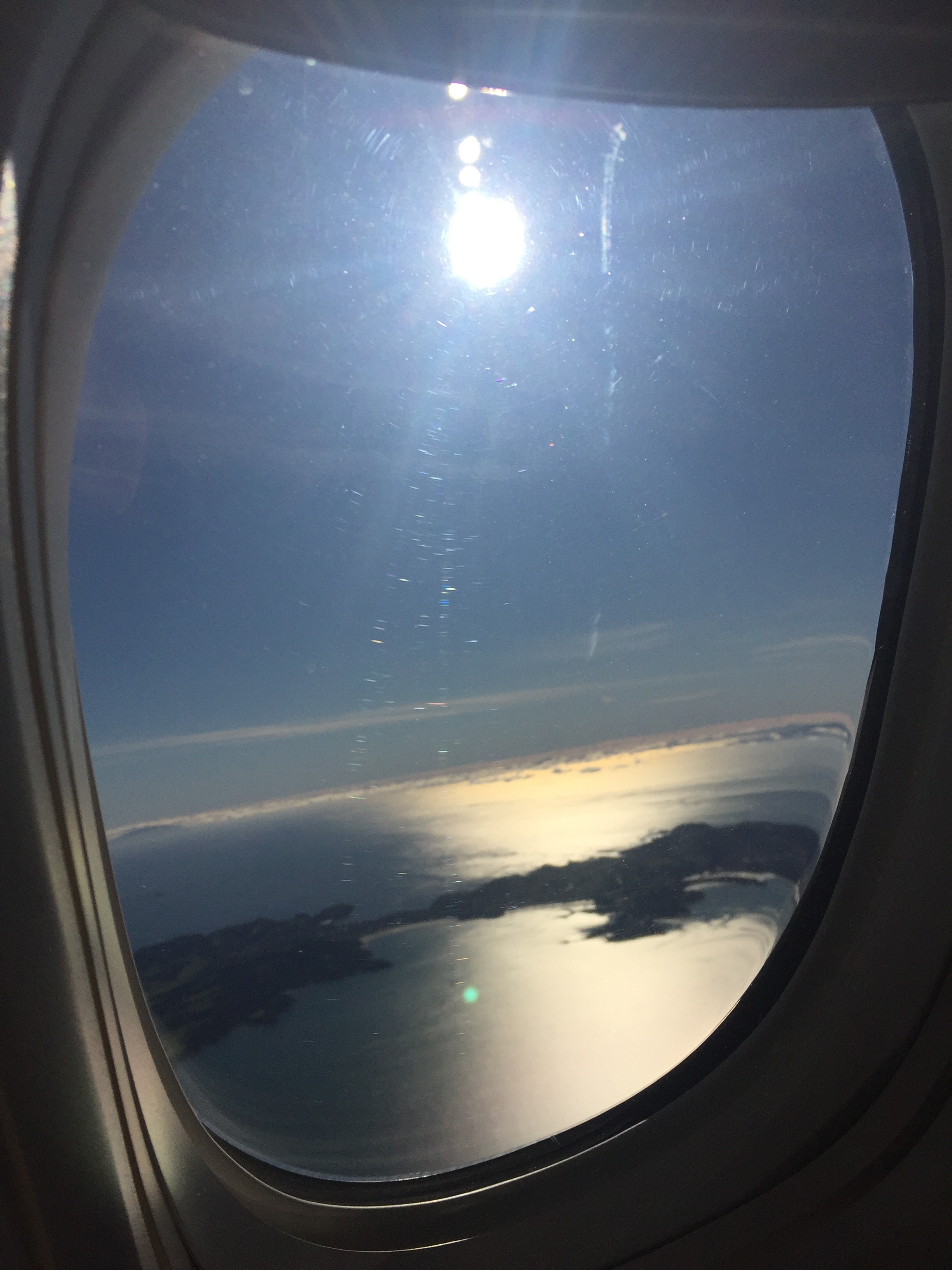 – a manhã estava linda no espaço aéreo do Novo Continente, o trajeto para pouso parecia um voo panorâmico, foram 15 prazerosos minutos até pousarmos de forma segura às 10:30h (horário local, o fuso na Nova Zelândia é de +5 horas com relação ao horário da Tailândia)