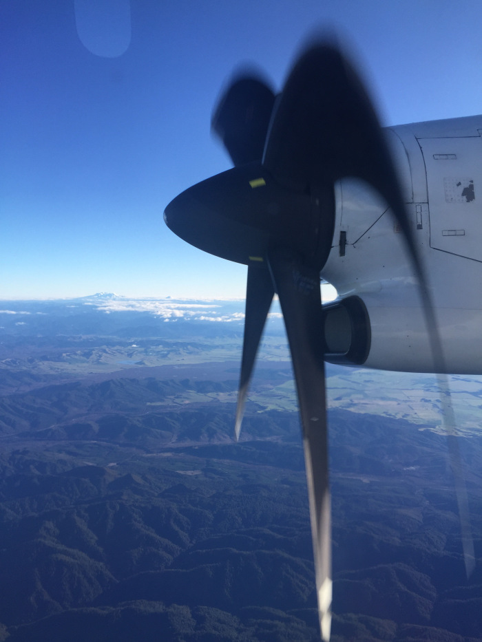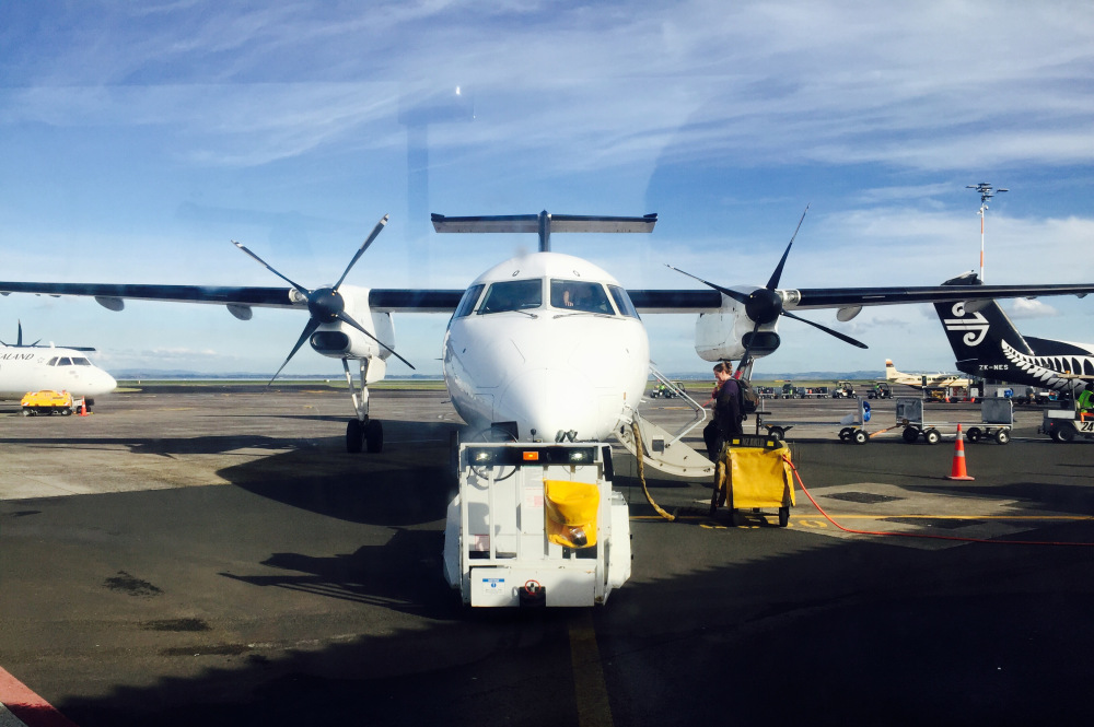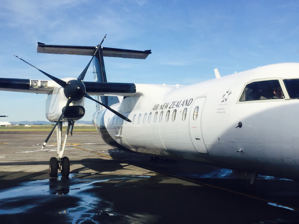 – pesquisei as opções de voo e uma viagem de “bate e volta”para Napier apareceu como a melhor opção (preço razoável, horário perfeito dos voos e voo operado por um Bombardier Q300, um tipo de aeronave que eu nunca tinha voado); comprei passagem em abril de 2016 (ou seja, com 02 meses de antecedência), por 63 dólares neozelandeses (cerca de R$ 140,00) para o voo 8407, com partida marcada para o início da tarde (14:25h)