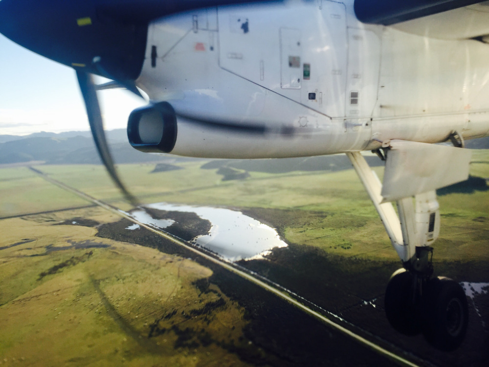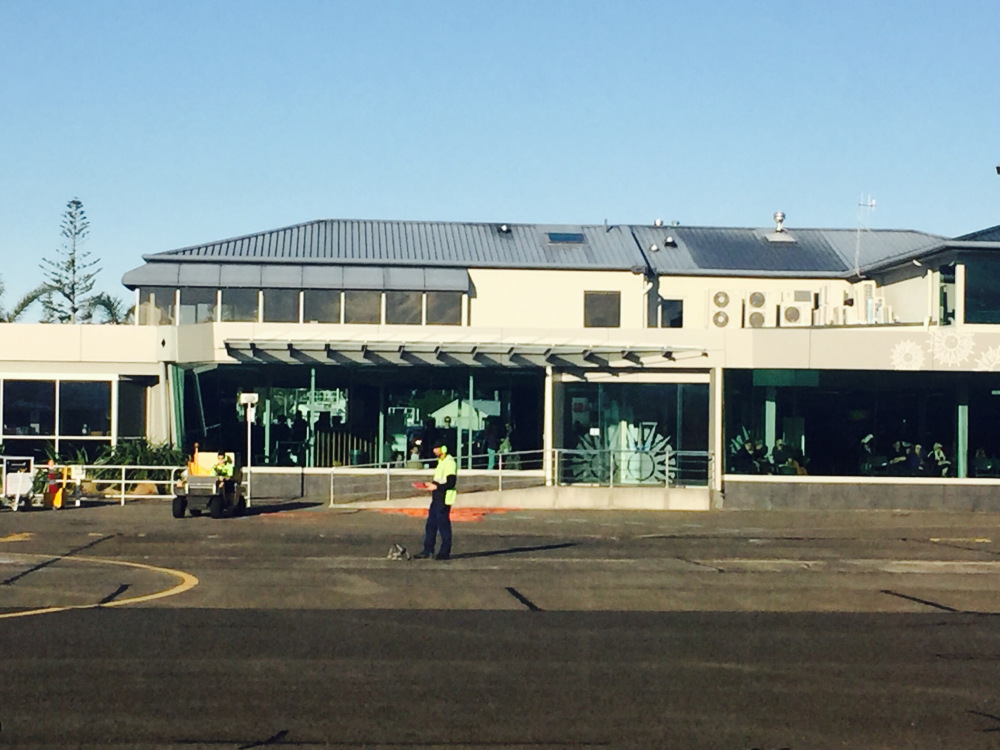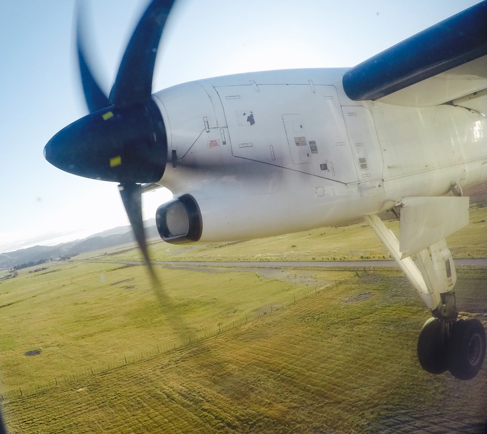 – pousamos às 15:20h: foi um procedimento suave, totalmente seguro, o turbo-hélice não precisou de toda extensão da pista 16/34 de 1.750 metros do Aeroporto de Napier; o estrutura do terminal é simples, não há área de taxiamento, a aeronave pousa, segue até o final da pista, faz uma volta de 180 graus para se dirigir ao pátio de embarque/desembarque
