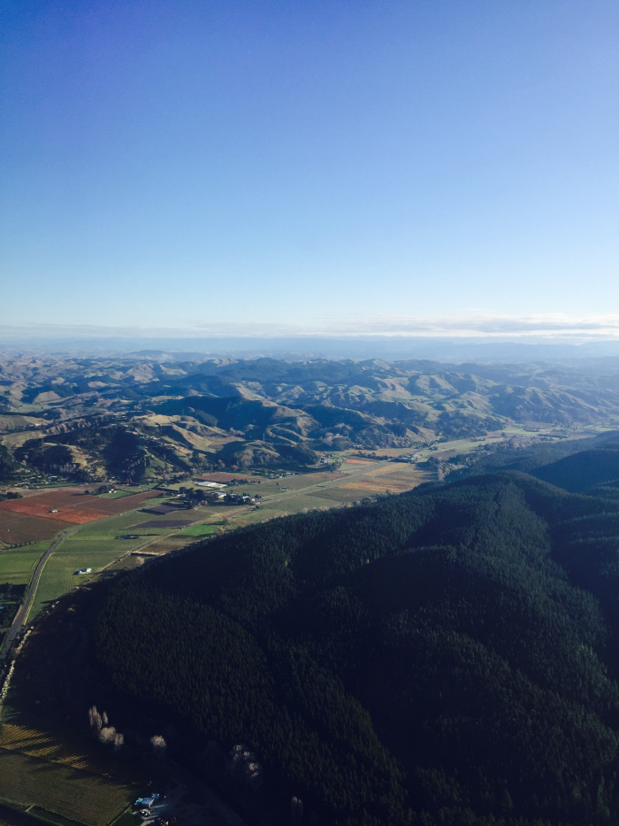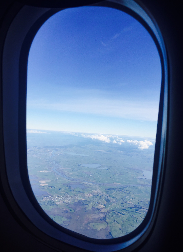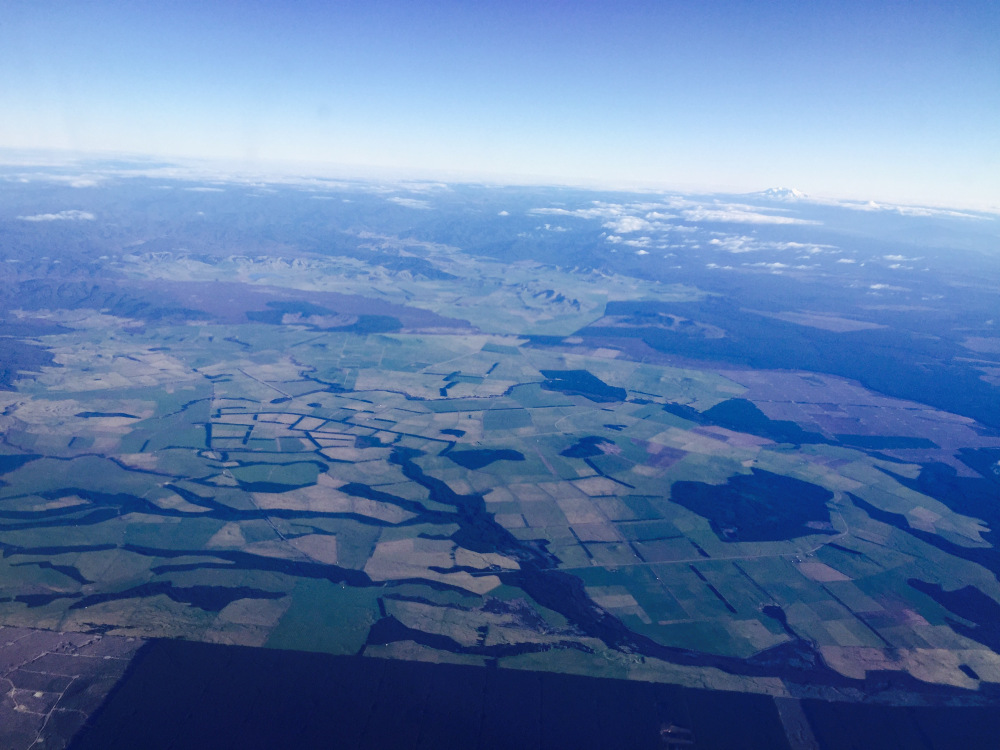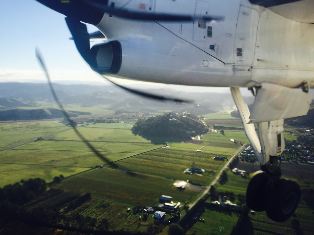 – eram 15:08h quando o aviso de apertar cintos foi ligado, logo em seguida, o trem de pouso, que fica dentro da carenagem do motor, foi acionado e travado; mais uma vez, a visão da janela do avião era linda, a rota de aproximação para a pista de Napier passa por campos verdes e alguns morros baixos