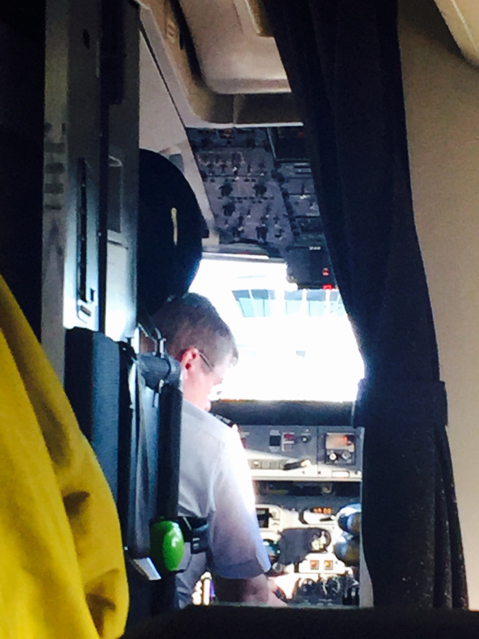 – depois que todos os passageiros tinham embarcado, a Comissária fez uso do sistema de áudio para anunciar que o tempo de voo até Napier seria de apenas 45 minutos; além disso, ela esclareceu a regra para uso dos telefones celulares: o modo-avião é permitido durante todo o voo