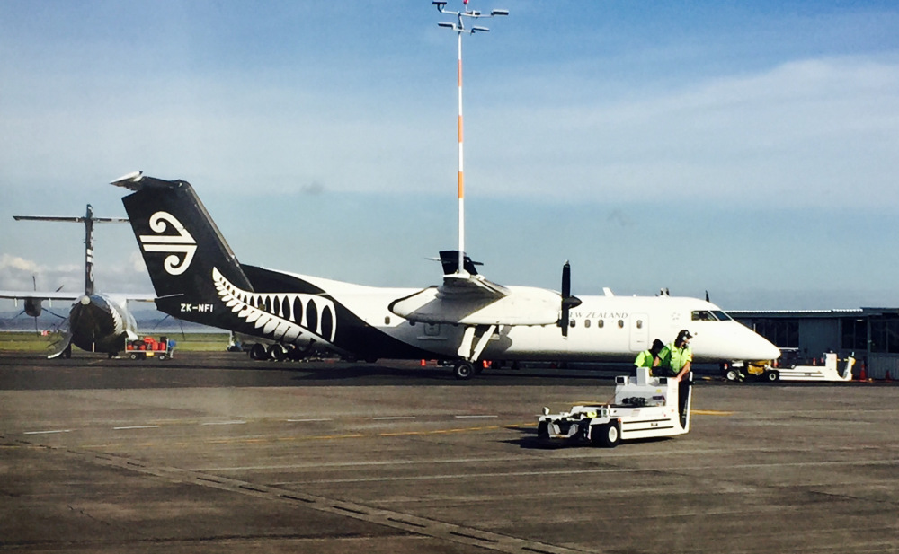 – o taxiamento foi rápido e passamos por outros turbo-hélices da companhia sendo preparados para os voos regionais oferecidos pela Air NZ; a pintura da cauda das aeronaves da empresa neozelandesa é linda