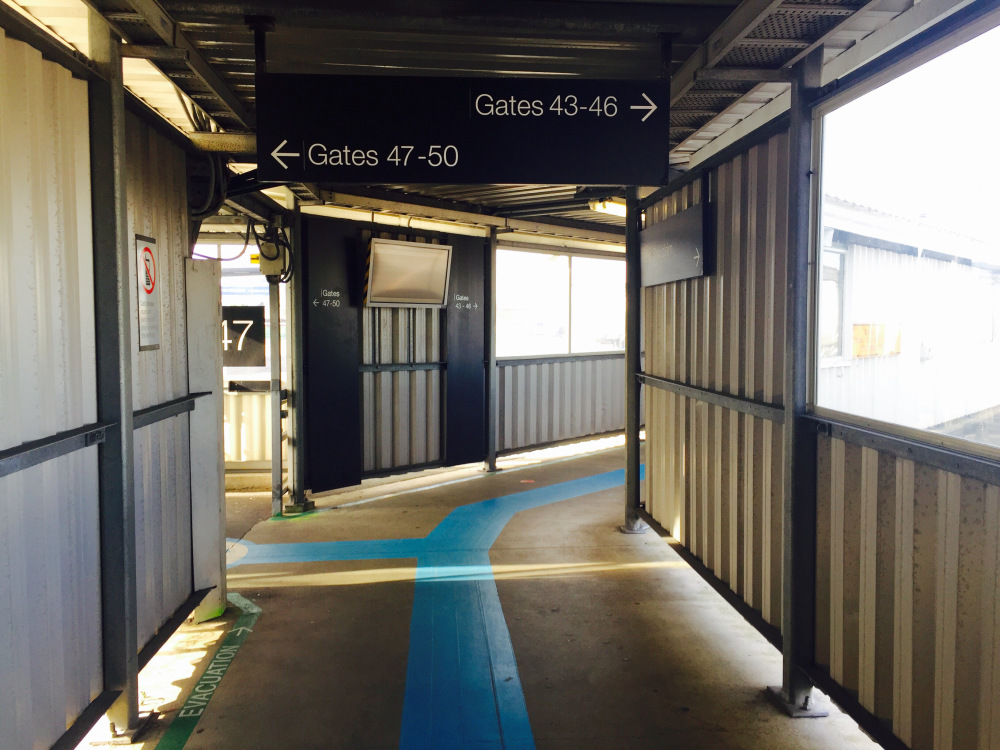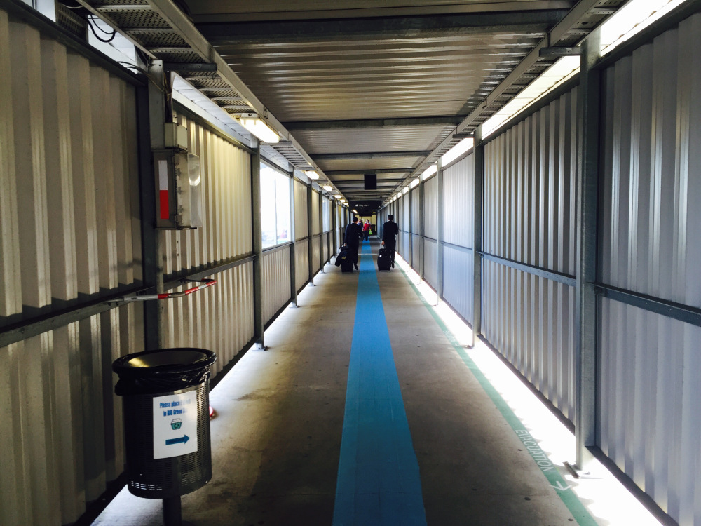 – um túnel montado por uma estrutura de ferro com janelas de acrílico é utilizado para acesso aos vários aviões que aguardam seus passageiros para os voos regionais; é uma estrutura que parece improvisada, mas que conta com iluminação, aparelhos de prevenção a incêndio e marcação no piso para pessoas com deficiência visual, portanto, completa