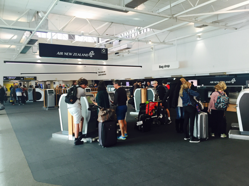 – cheguei no Terminal Doméstico exclusivo para a Air New Zealand do Aeroporto de Auckland às 13:20h; contratei os serviços de uma van coletiva (foram 03 paradas no meio do caminho para pegar outros clientes), ao custo de 35 dólares neozelandeses (cerca de R$ 80,00), pois pelas pesquisas que fiz, esta se mostrou uma boa opção para ir do centro da capital para o terminal (um táxi sai por cerca de 8o Nzd e o Uber por 65 Nzd)