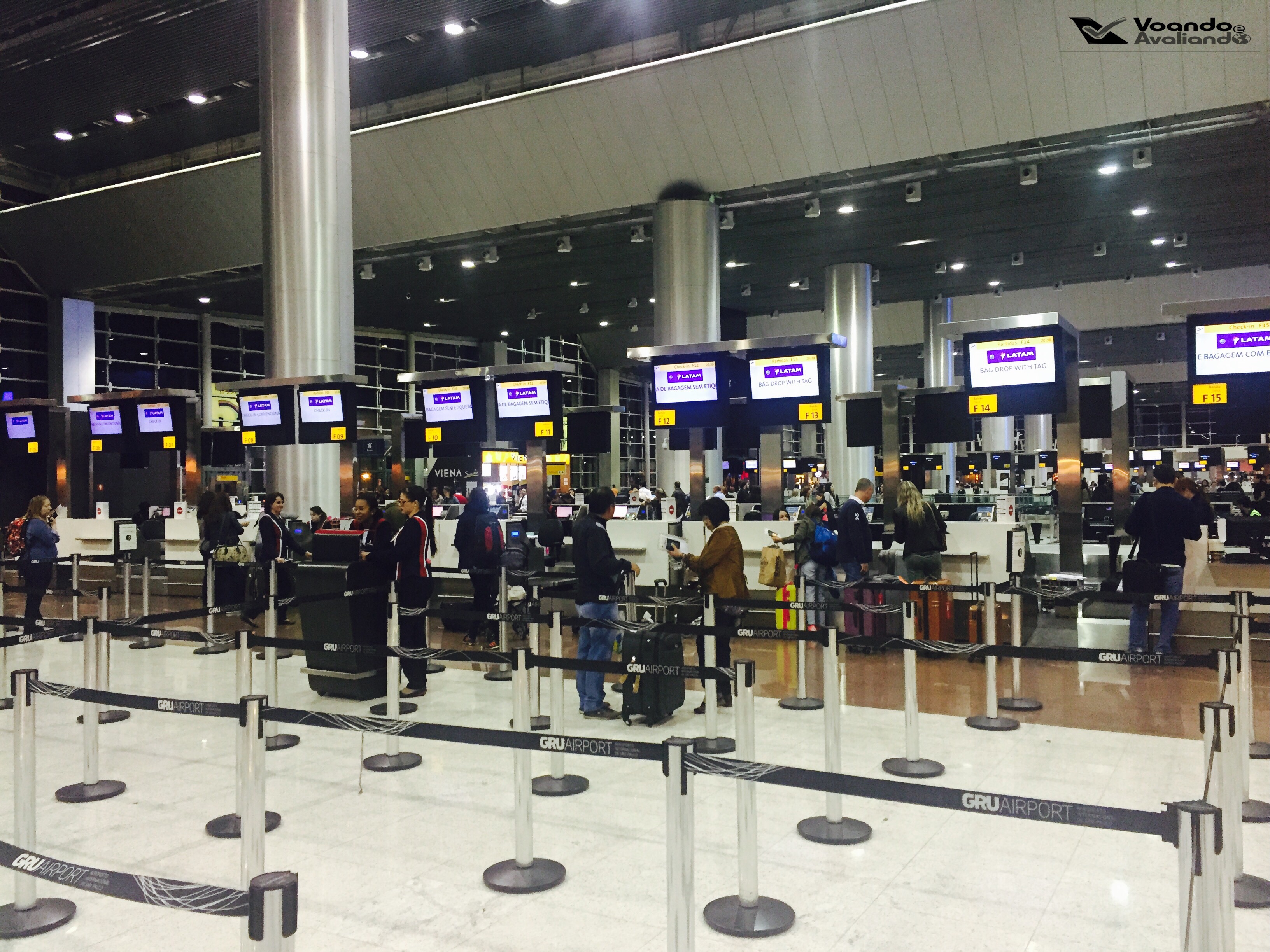 – o Portão 325 é um velho conhecido, eu já embarquei por ele algumas vezes e sabia que a caminhada até lá seria longa: é o último portão do T3 de GRU; chegamos lá somente às 21:35h e uma grande fila de passageiros estava formada em frente a ele, por isso, fomos direto para a fila dedicada às prioridades para embarcarmos logo no B777-300ER, o maior avião utilizado pela LATAM