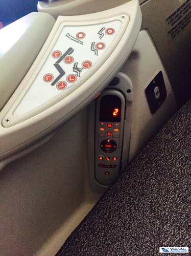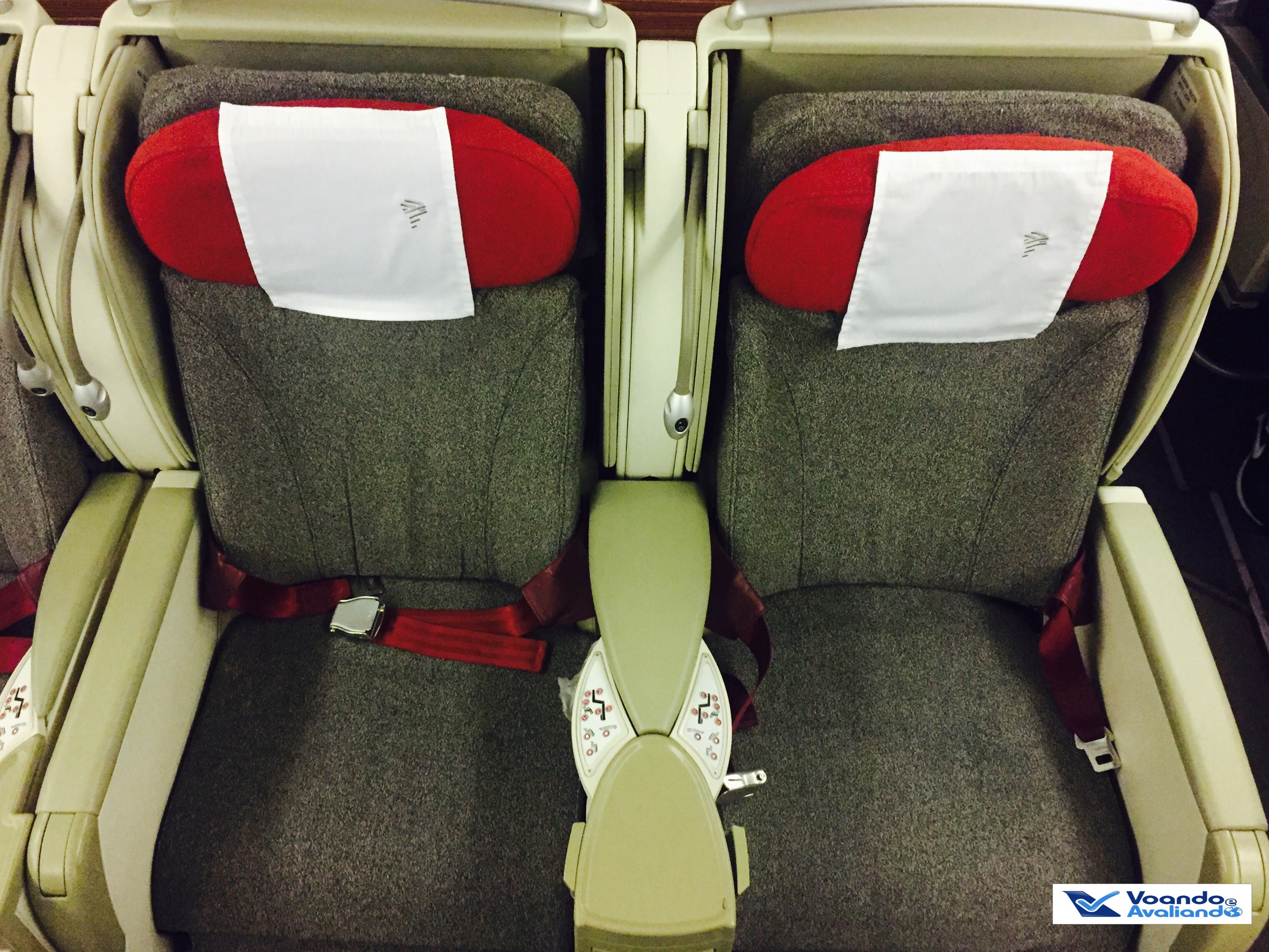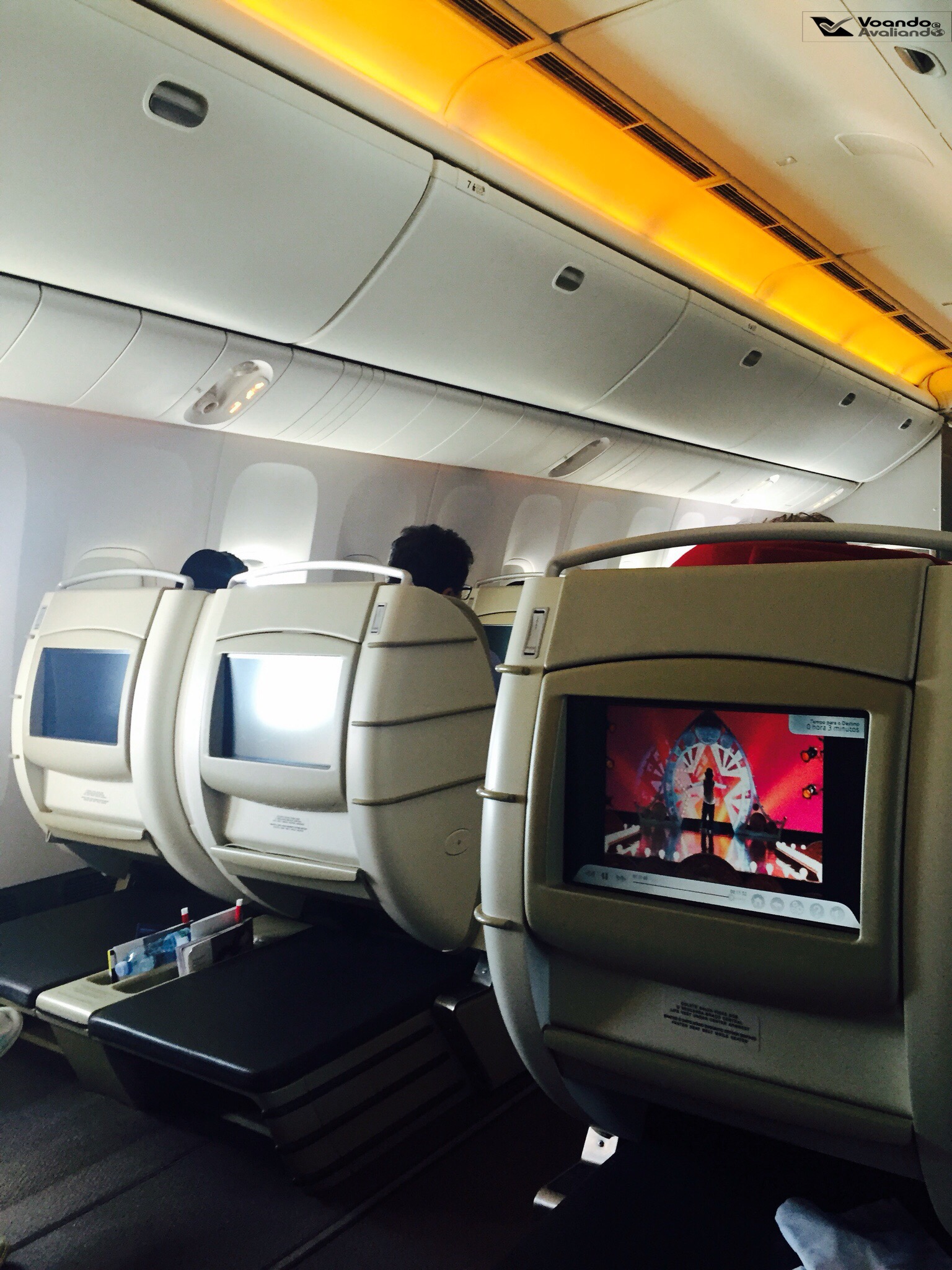– as poltronas confirmadas no processo de upgrade eram na última fileira da classe Executiva, no centro do avião (assentos 8D e 8G), onde estão instaladas 03 poltronas, estávamos nos 02 extremos, tendo um outro passageiro sentado entre nós (no assento 8F); ofereci a ele a troca de assentos e, obviamente, ele aceitou, afinal viajar no corredor é bem melhor que viajar no meio; com isso, nos acomodamos finalmente na 8D (minha esposa, no corredor) e na 8F (eu, no meio)