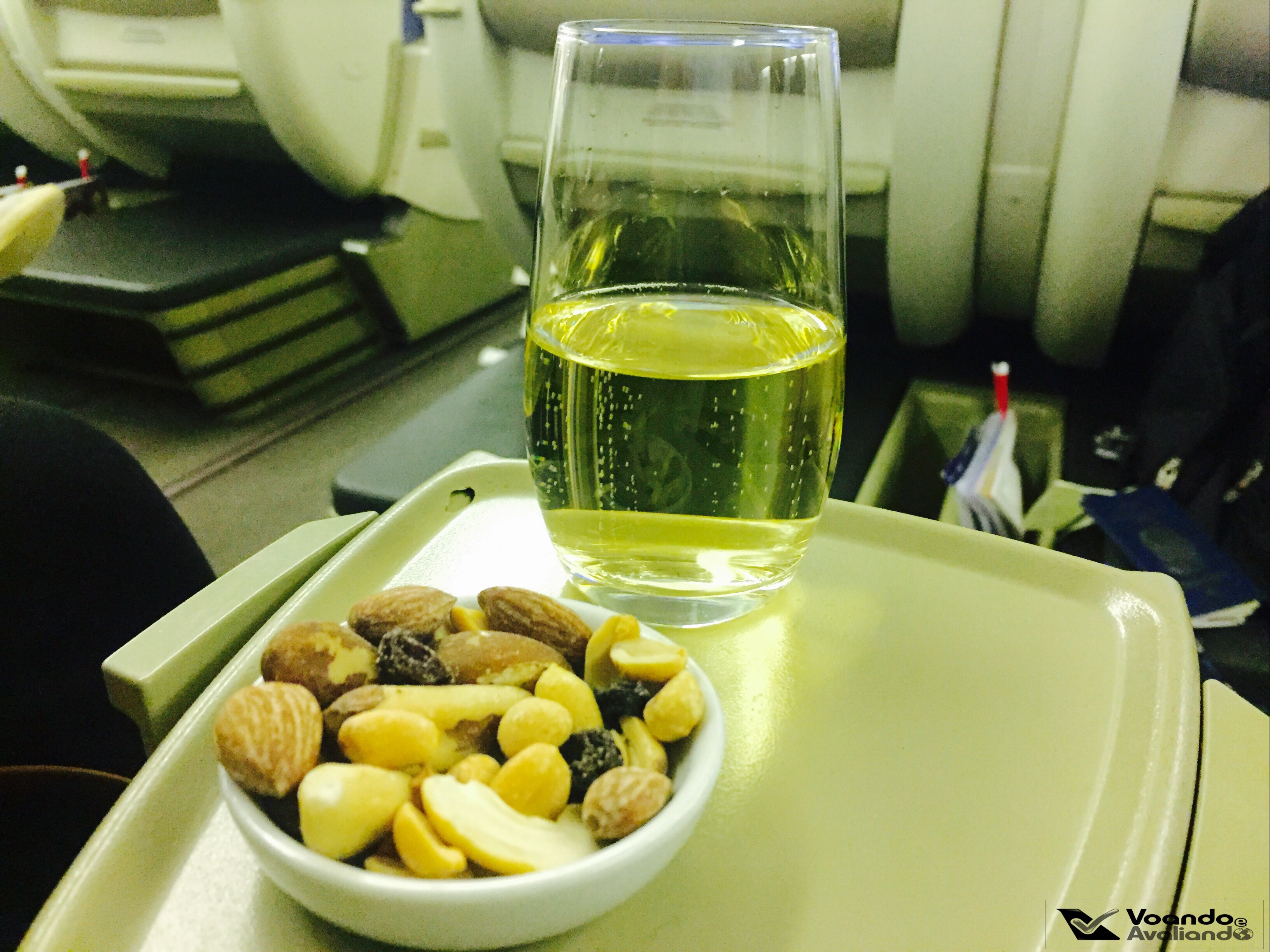 – antes das 22:45h, os pedidos de jantar dos passageiros foram anotados pela tripulação; sentar na parte de trás das cabines é sempre um risco: alguns pratos do menu podem não estar mais disponíveis (isto acontece na Econômica e na Executiva); eu chamo isso de “a maldição da última fileira“, que se fez presente neste voo: minha 1ª escolha (pato assado laminado com arroz salteado com tomates cerejas e cebolinha francesa) tinha acabado; só me restou a opção de cupim na brasa com molho de tomates, aspargos, tomate-cereja e alho-poró assado, já que a 3ª alternativa (ravioli aberto de rúcula, tomate e queijo) não me agradou