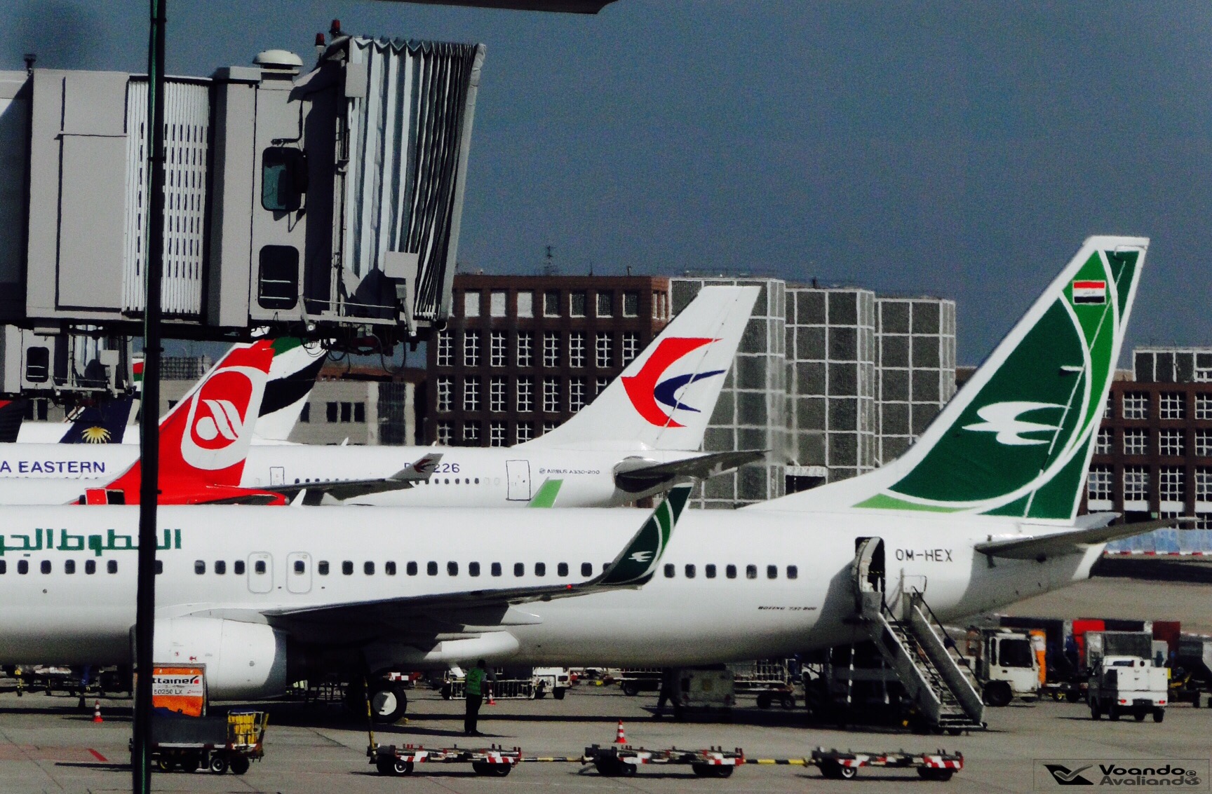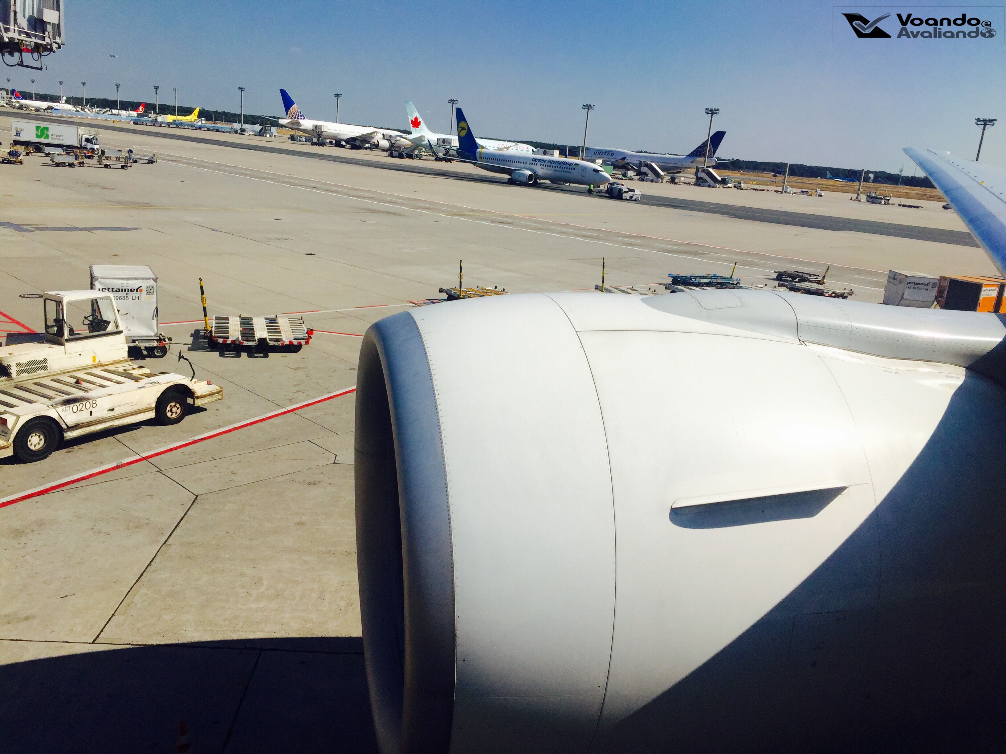 pousamos às 09:28h (horário do Brasil, 14:28h no horário alemão, nesta época do ano, esta parte da Europa tem um fuso de +5 horas com relação a Brasília); foram quase 20 minutos de taxiamento até que o B777-300 da LATAM encostasse no finger de Frankfurt; neste momento, consegui tirar algumas fotos da movimentação de aeronaves no pátio do aeroporto alemão