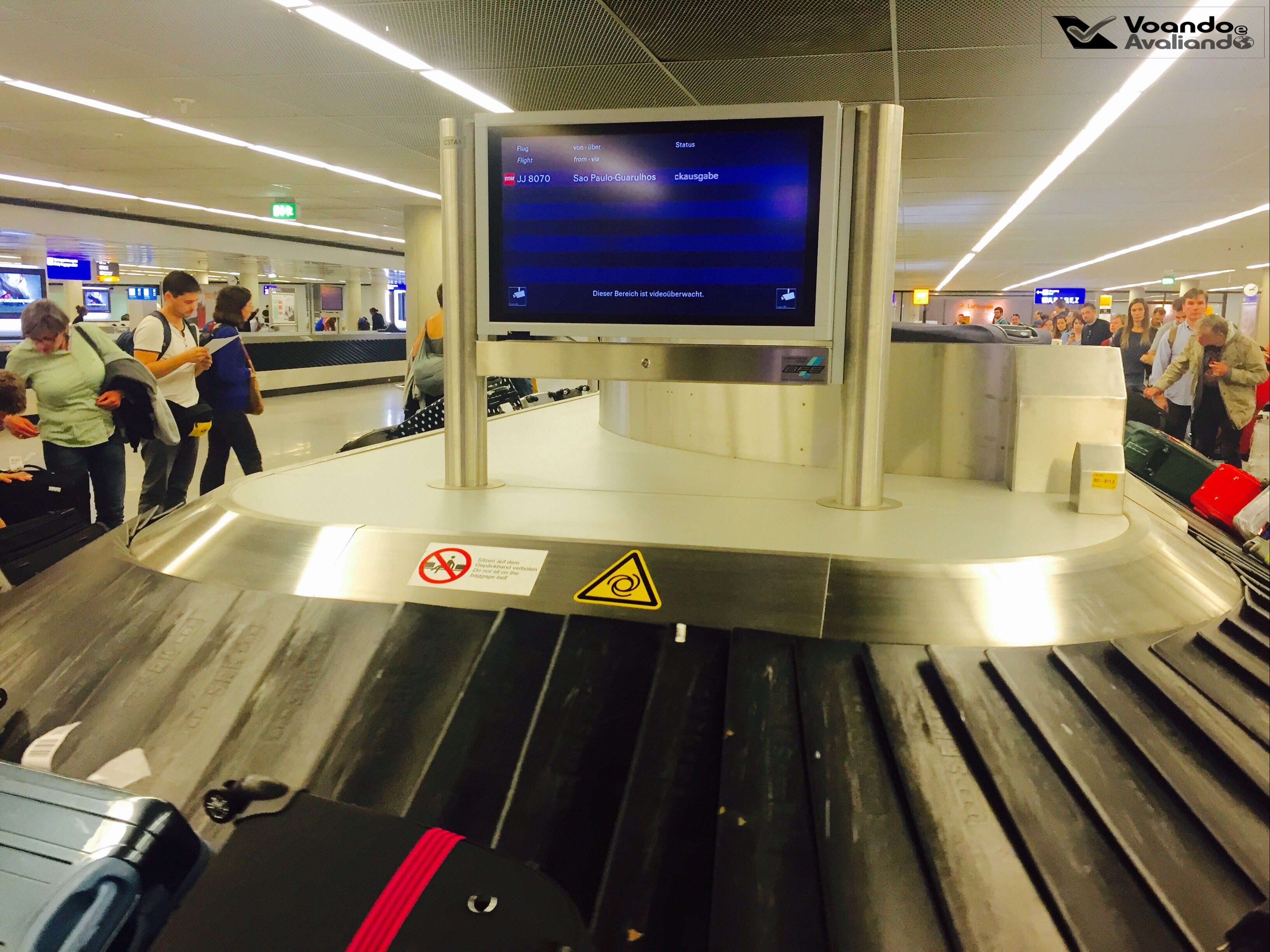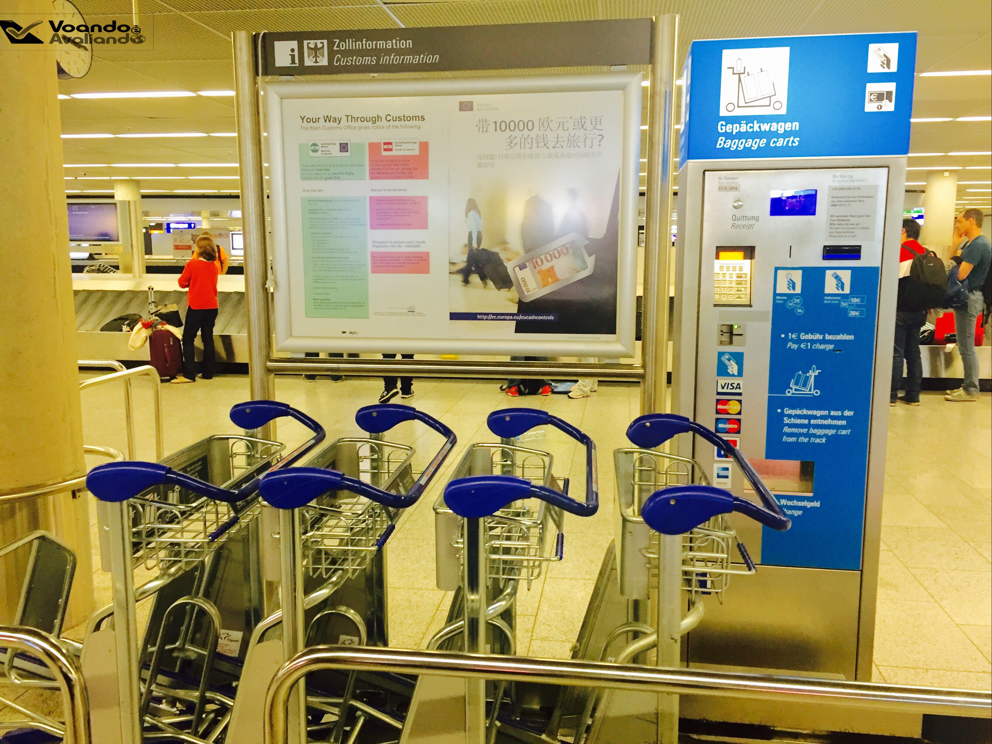 – o Aeroporto de Frankfurt é enorme, tivemos que caminhar bastante para alcançar a área de controle de entrada de passageiros estrangeiros e depois um pouco mais até a área de restituição de bagagens, onde nossas malas já estavam rodando nas esteiras; neste aeroporto, o uso de carrinhos não é gratuito, é necessário pagar 01 euro por cada um deles