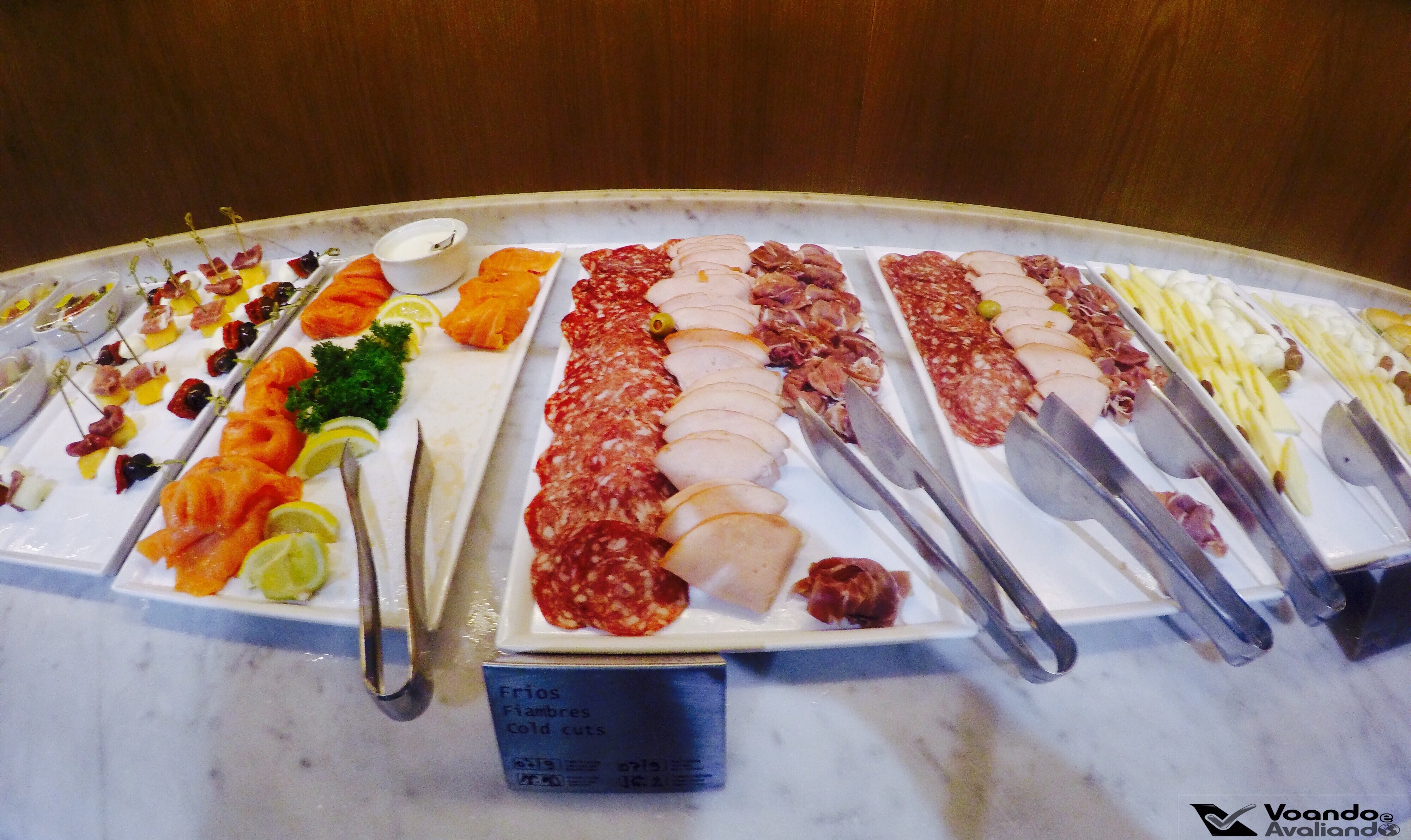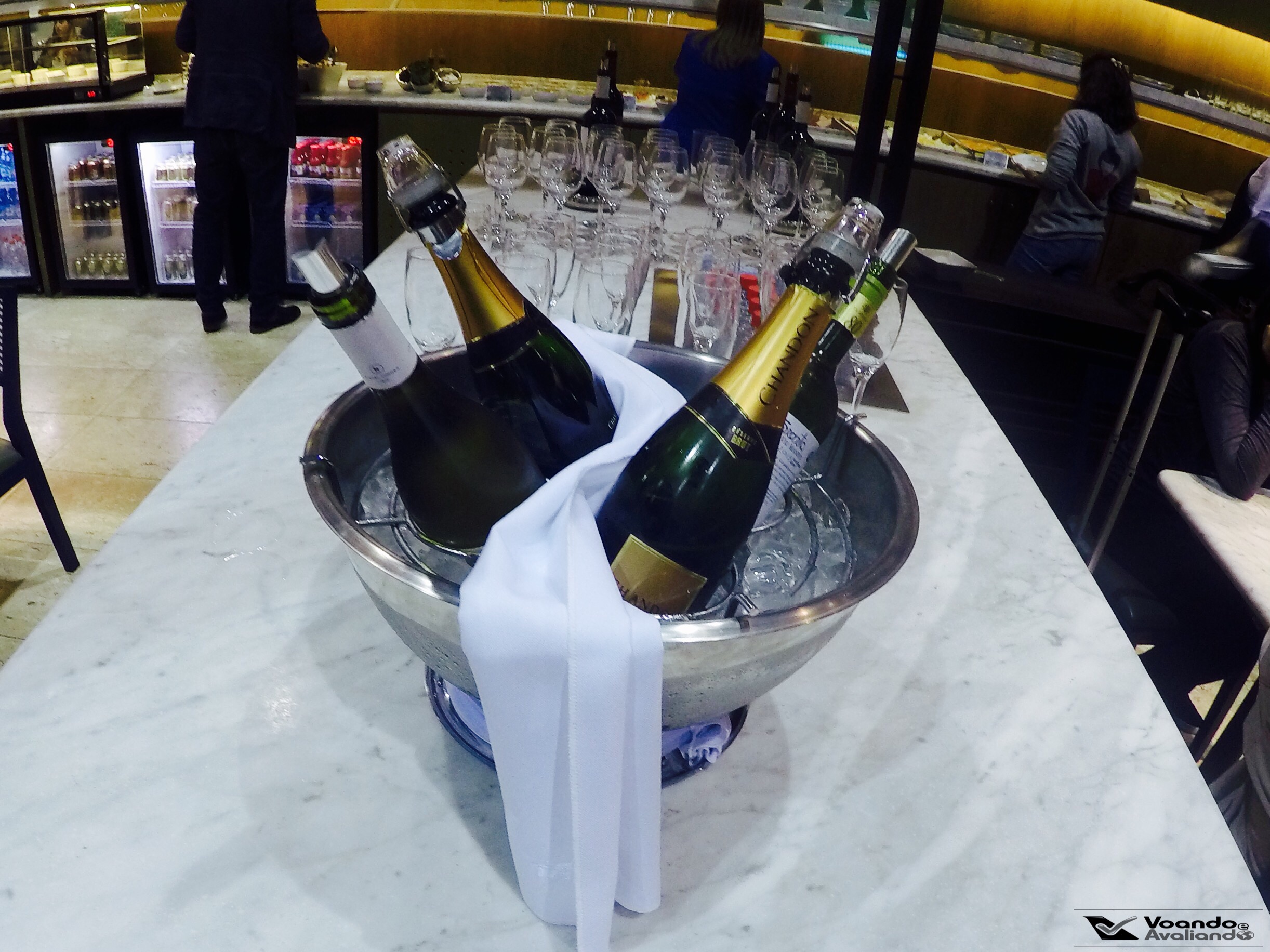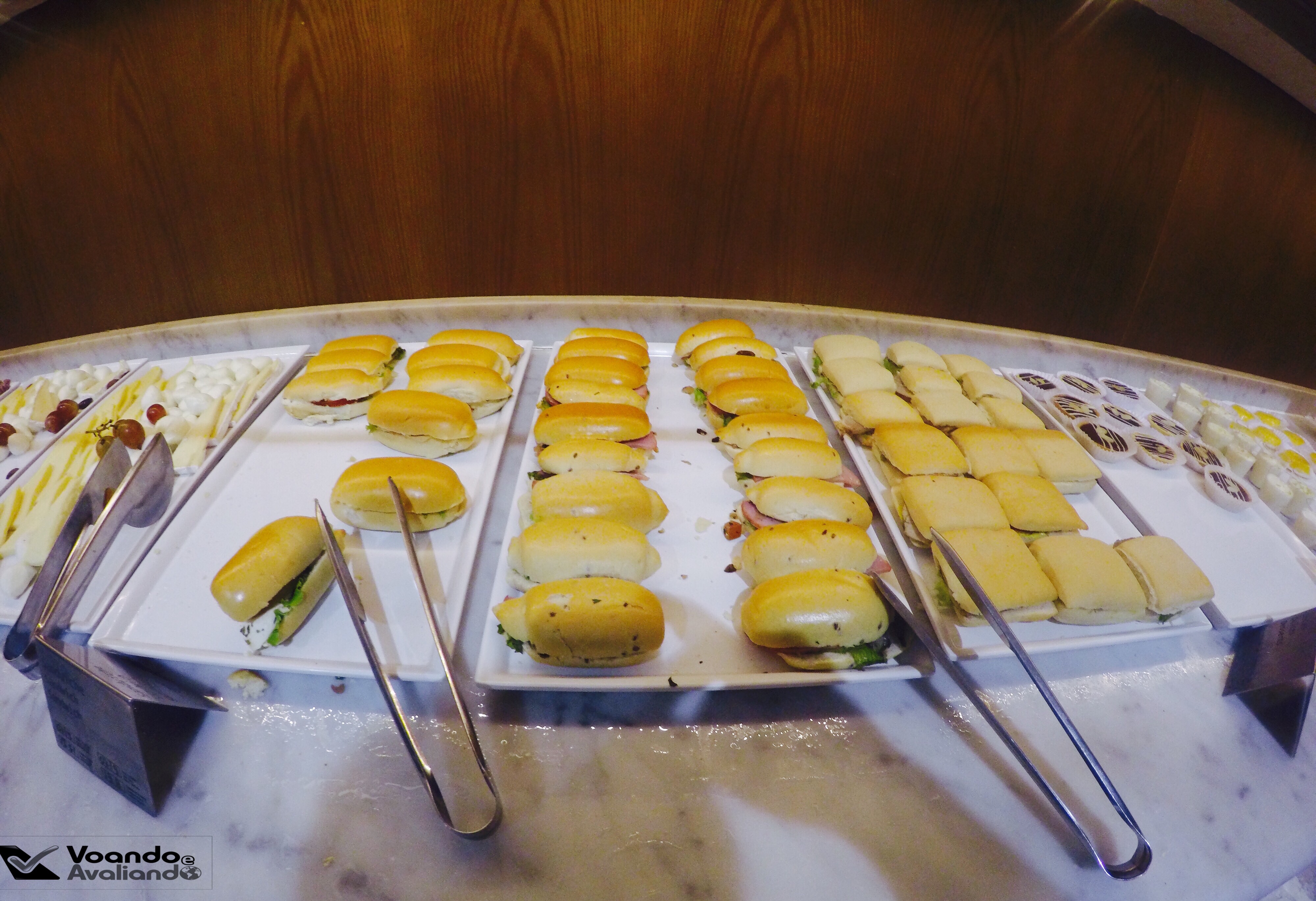 – nesta Sala VIP, a LATAM não oferece refeição completa, somente um buffet de snacks (mini-sanduíches, frios, salgadinhos, frutas e carpaccio de salmão); as opções de bebidas (alcoólicas e não alcoólicas) são muitas: champagne, vinhos, destilados, refrigerantes, sucos, água e café