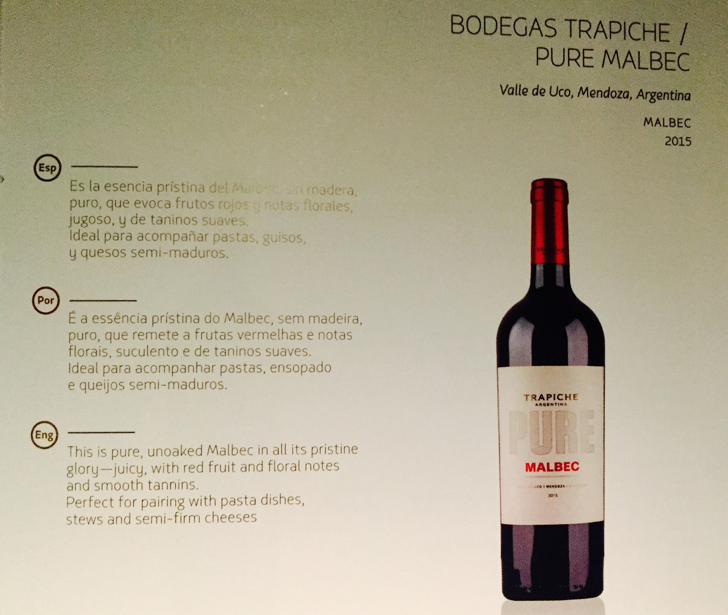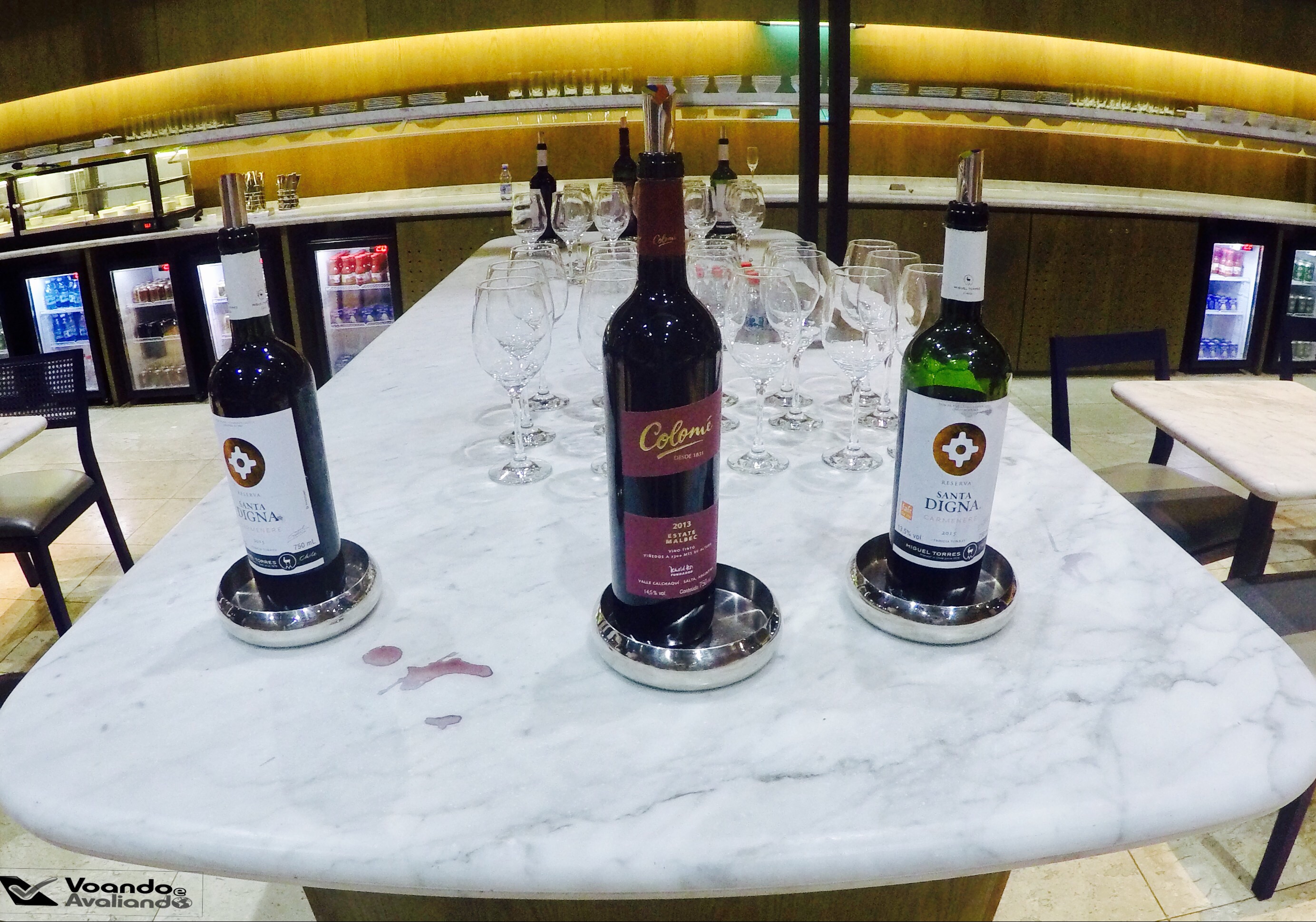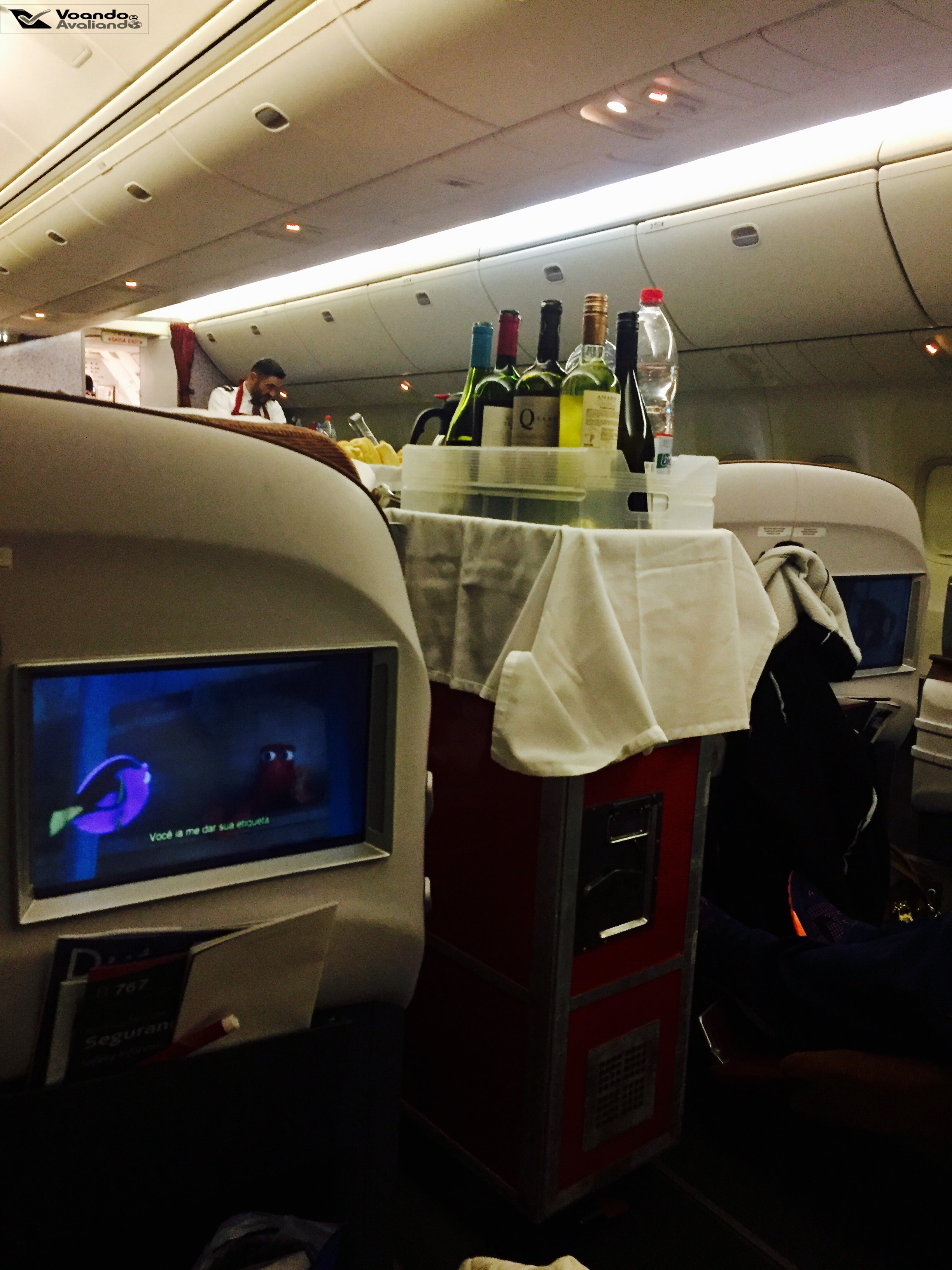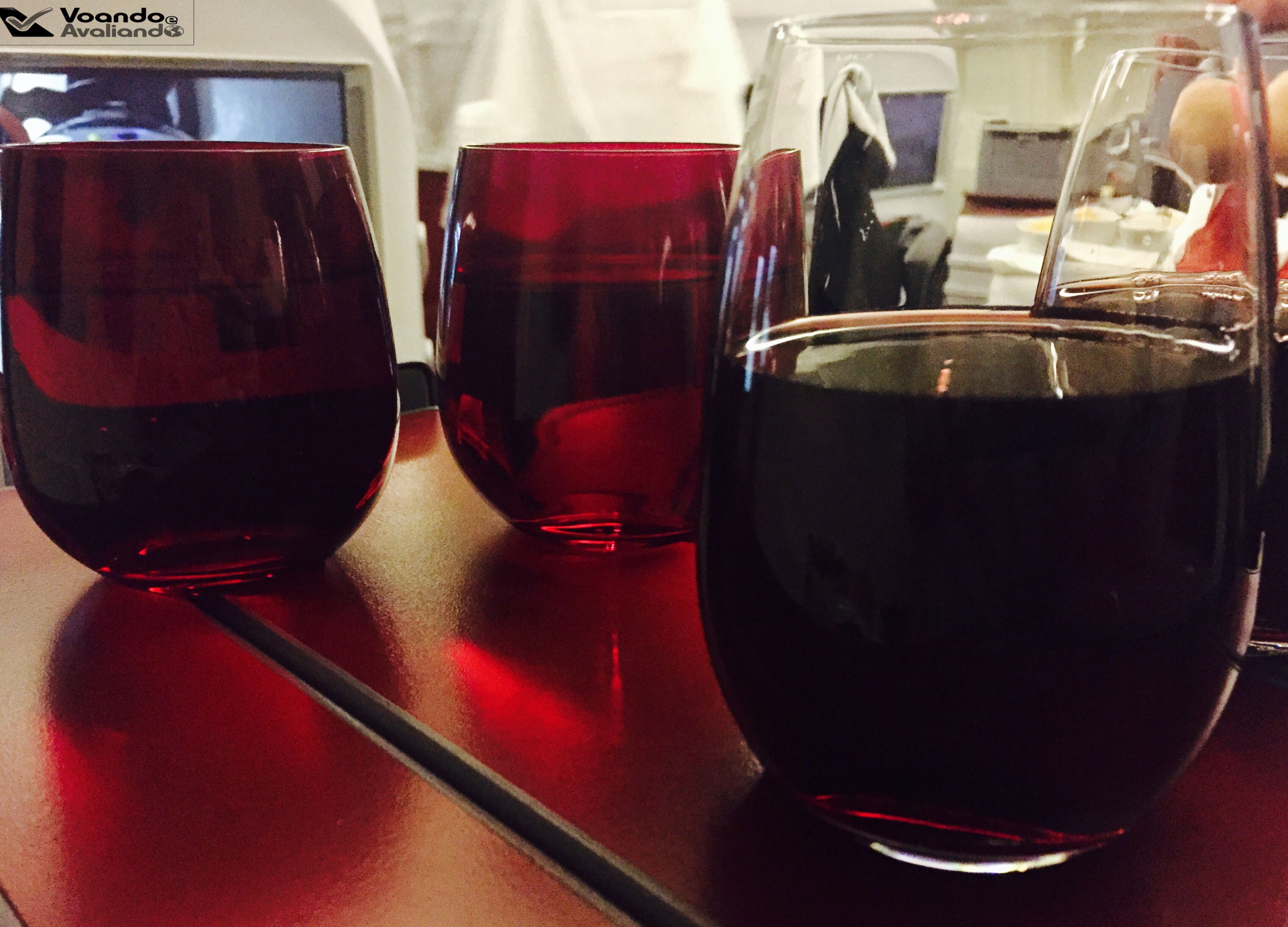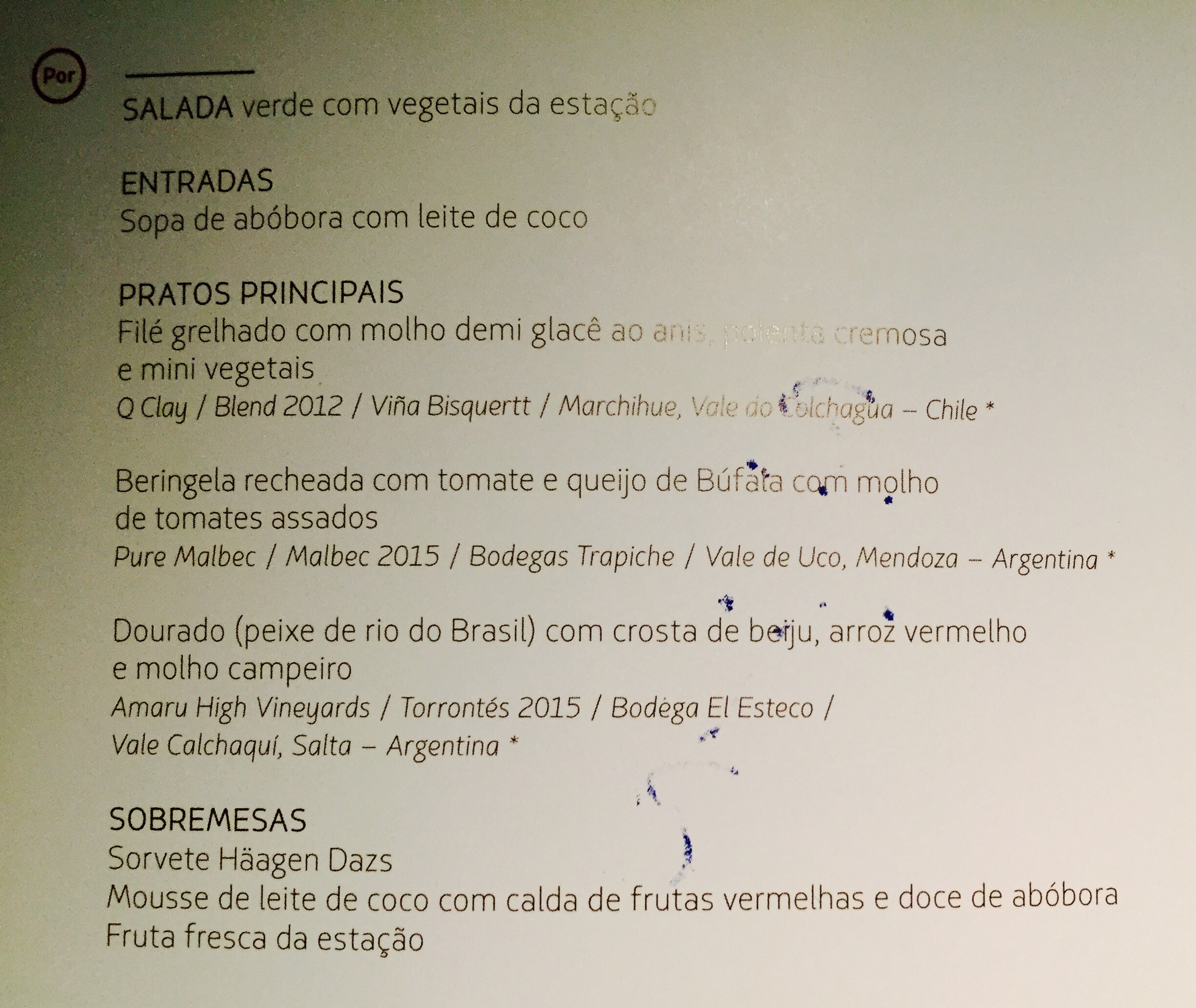 – eu gosto muito das opções de bebida alcoólica que a LATAM oferece em seus voos, é sempre bem variada e com vinhos argentinos e chilenos, que eu aprecio; fiquei na dúvida se repetia o champagne servido quando ainda estávamos em Guarulhos, que estava uma delícia, mas acabei escolhendo um vinho tinto chileno Pinot Noir (Viña Maycas del Limarí – 2014), muito bom, com ótimo sabor