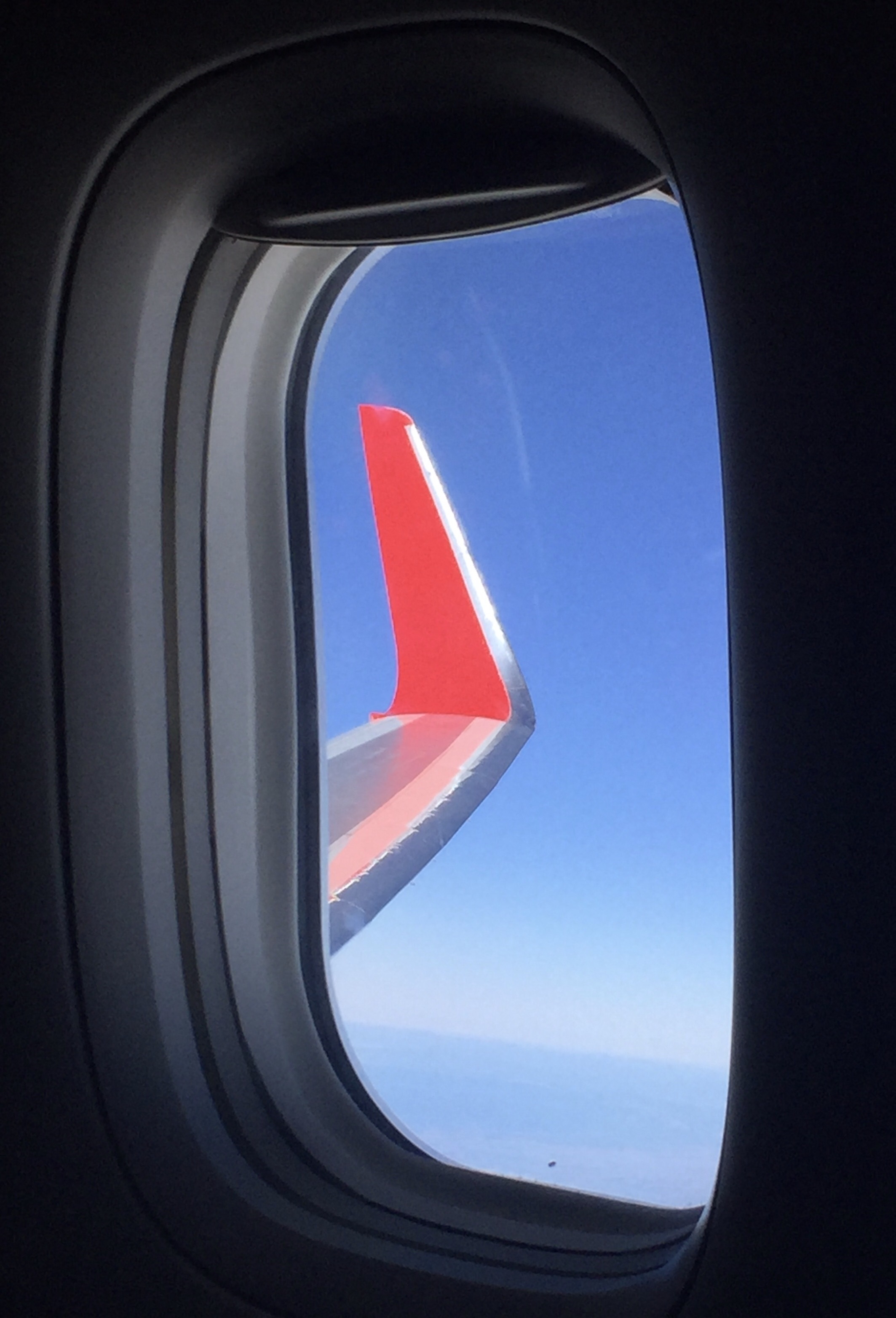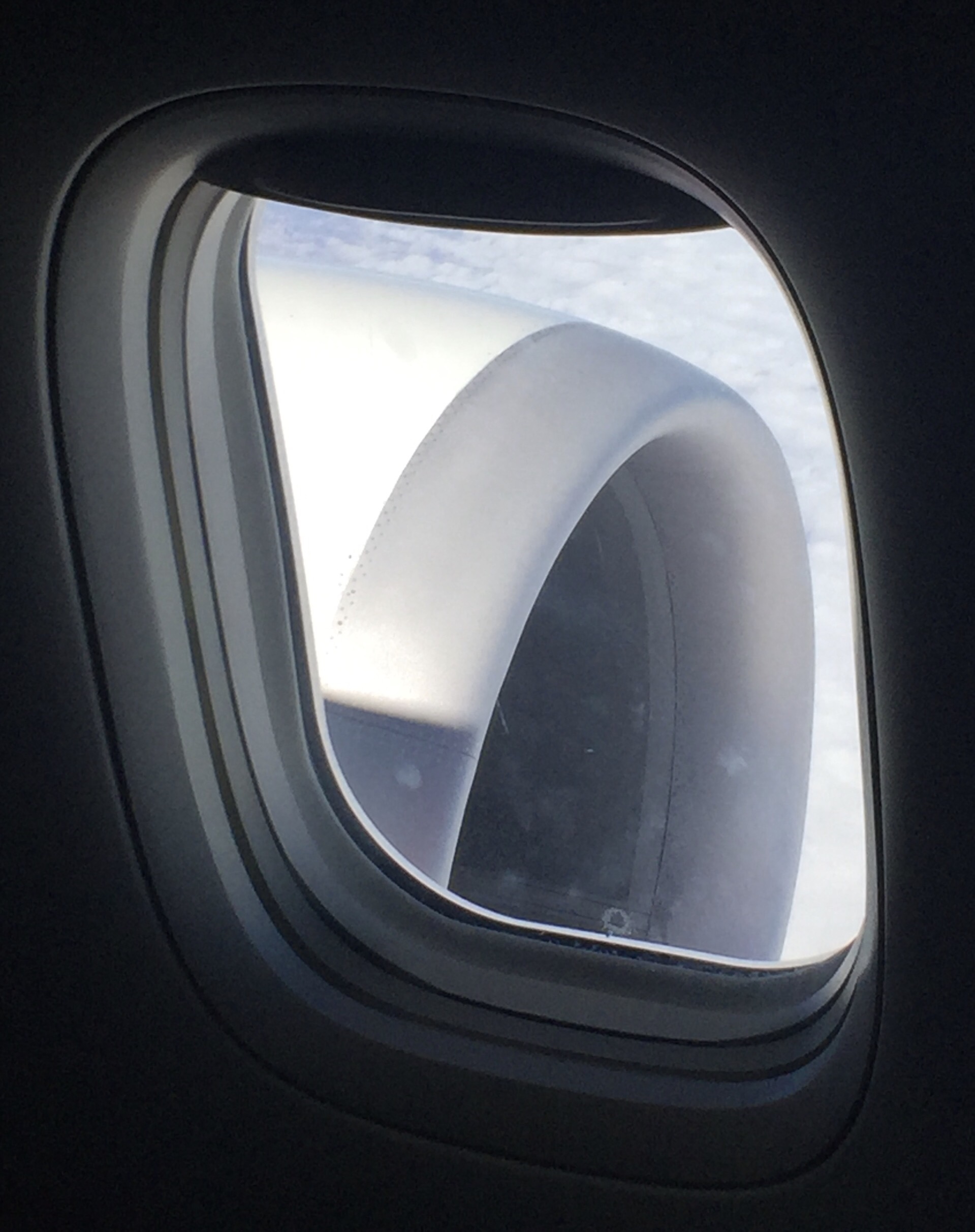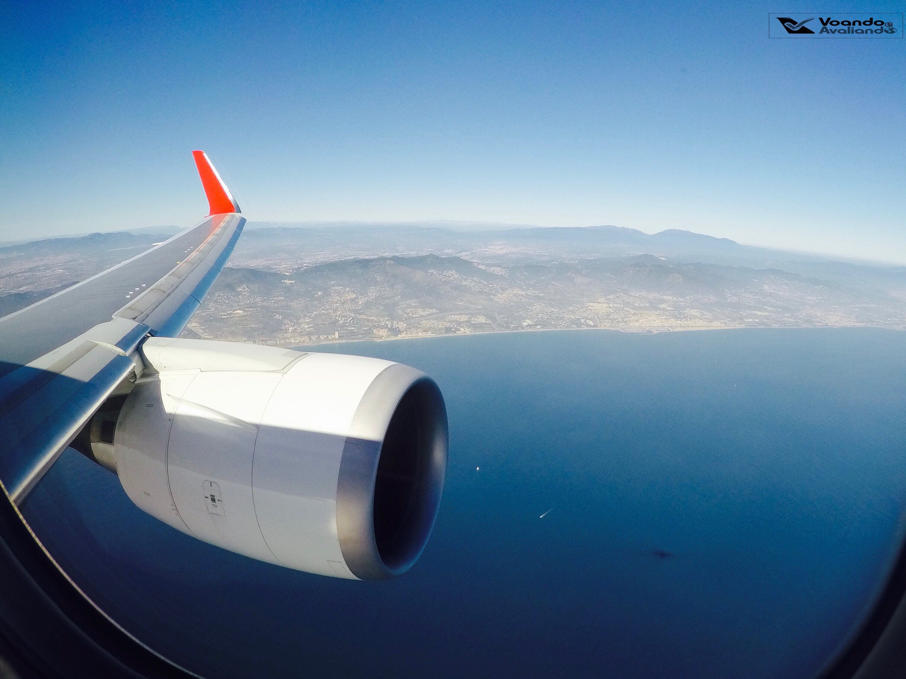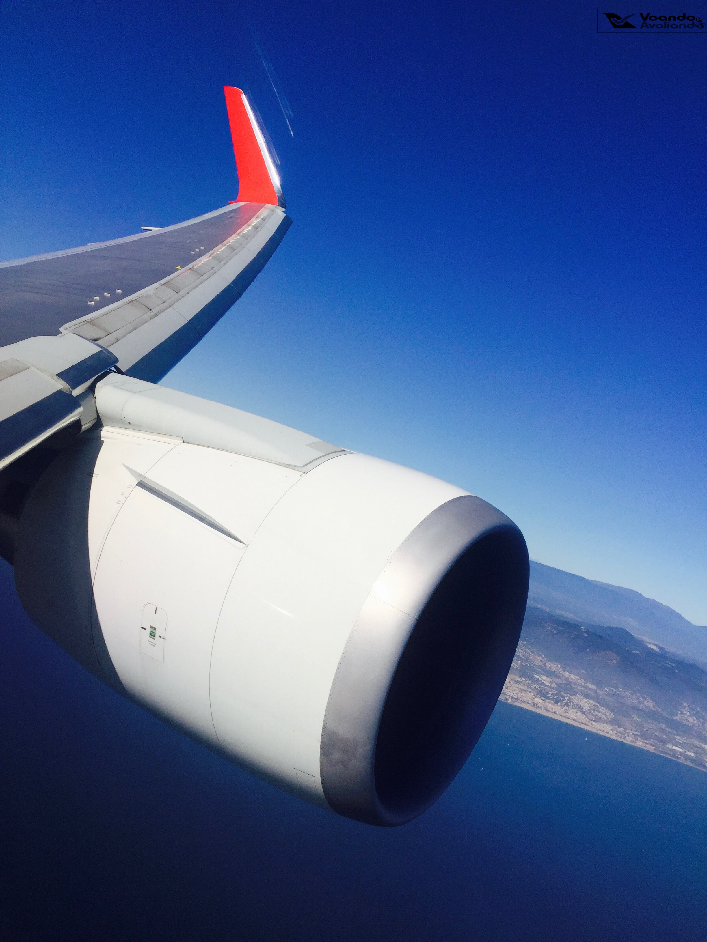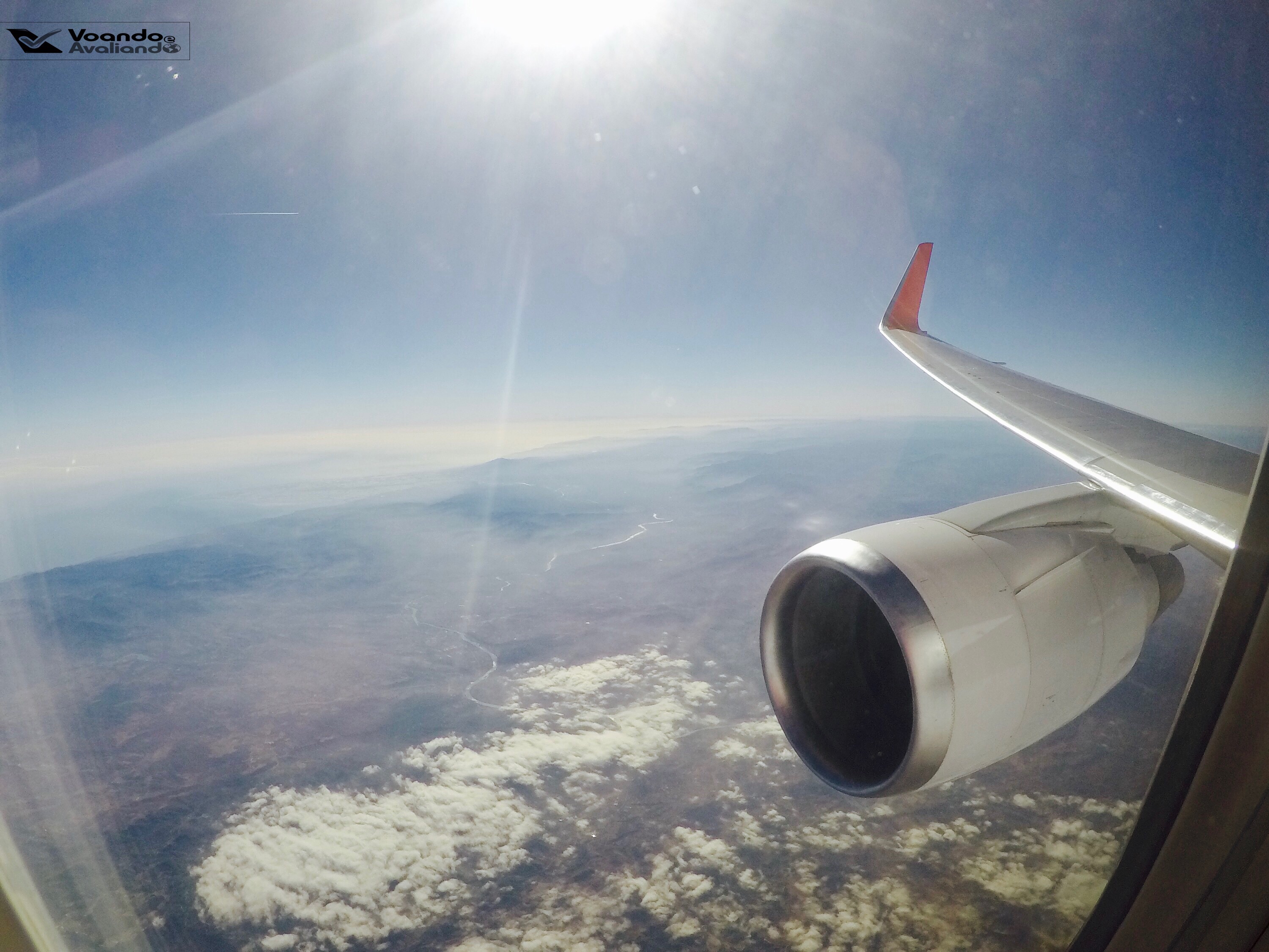 – eram 10:18h (hora do Brasil) quando o Comandante se dirigiu a todos informando que restavam apenas 30 minutos para o pouso em Barcelona; era hora de aproveitar o tempo claro lá fora e tirar muitas fotos, com foco nas turbinas e nos winglets do B767 da LATAM: do lado esquerdo um pouco de sombra, do lado direito, muito sol; a paisagem da terra espanhola, em constraste com o azul escuro do céu, era um show a parte