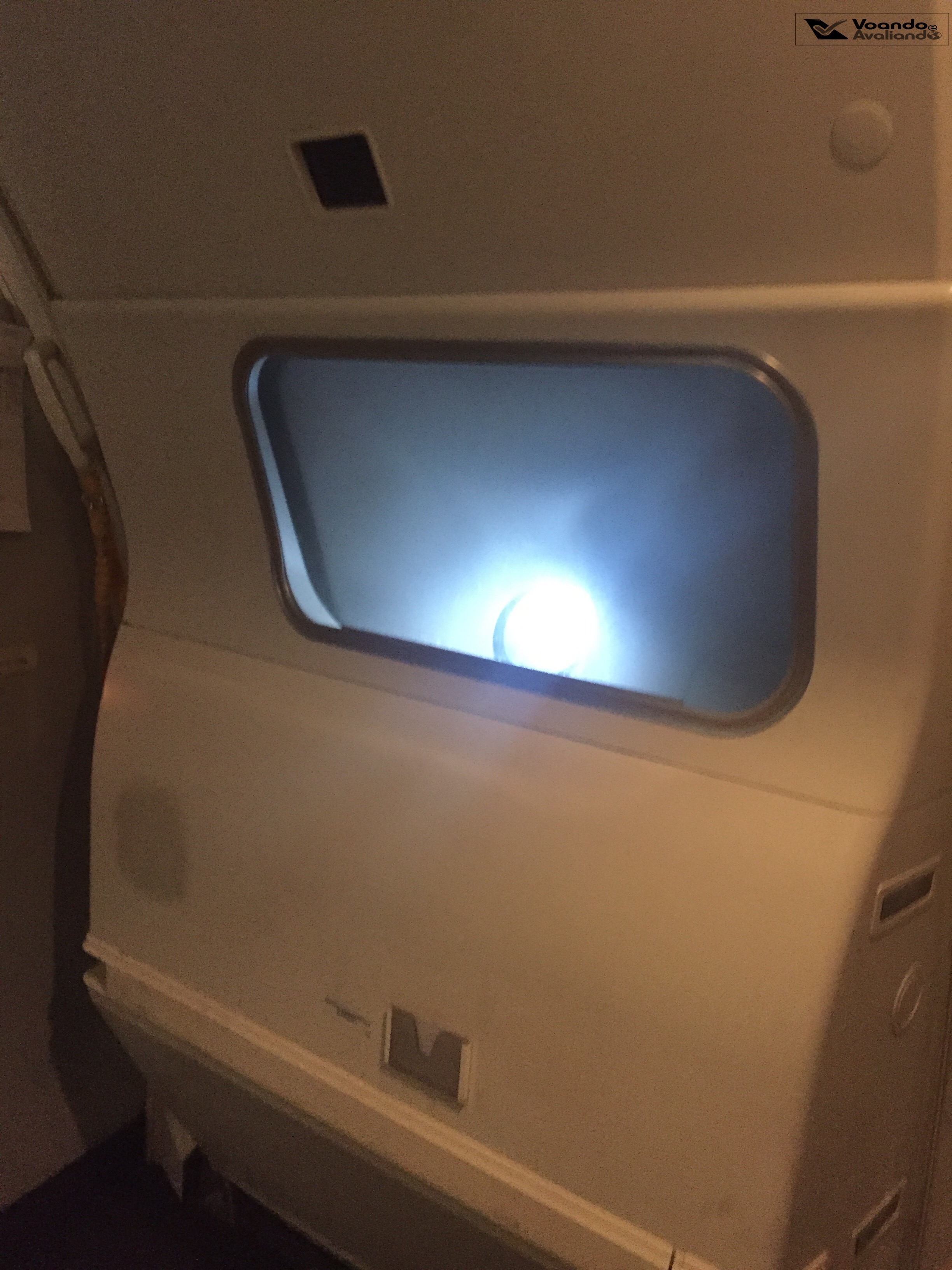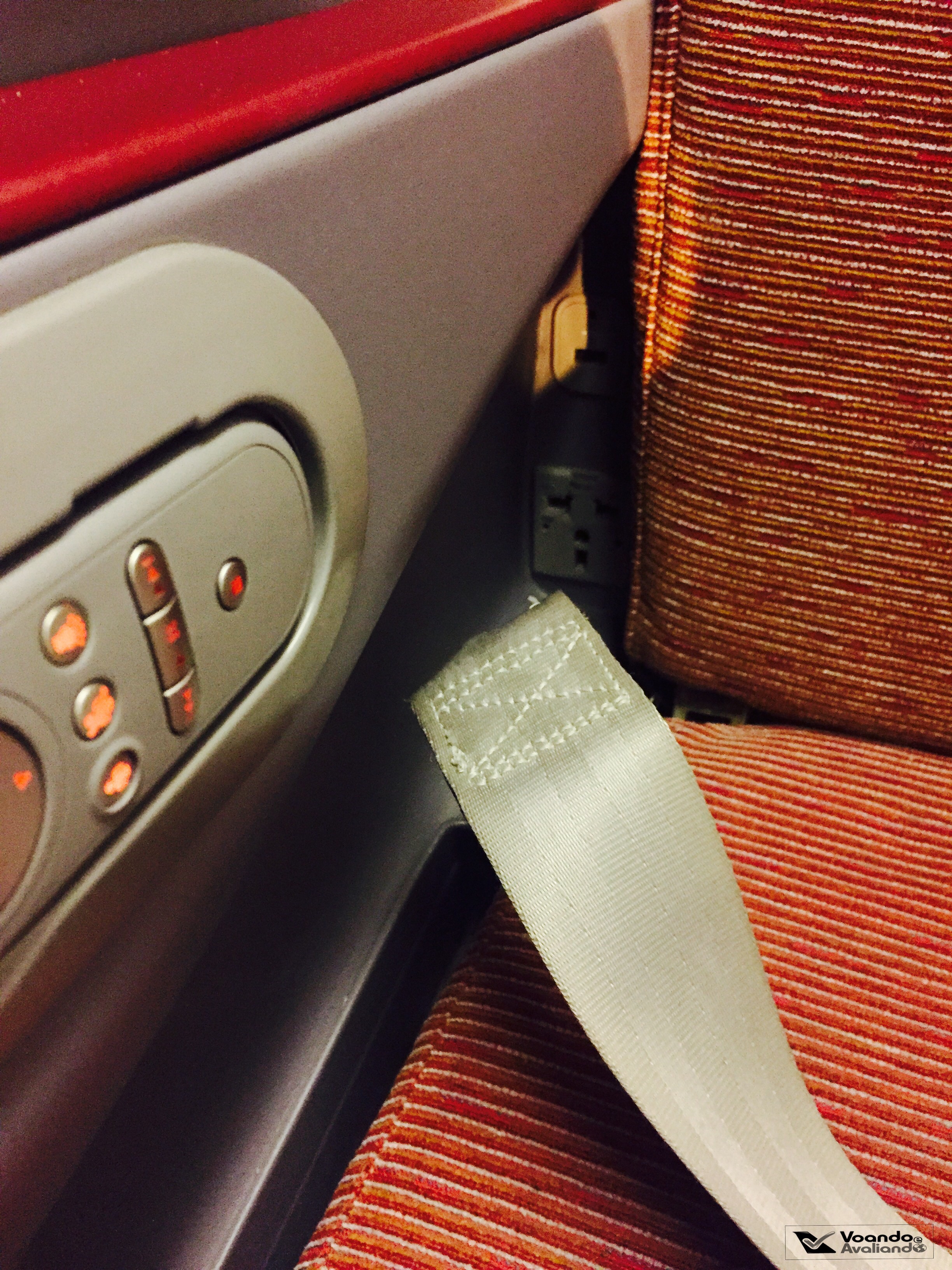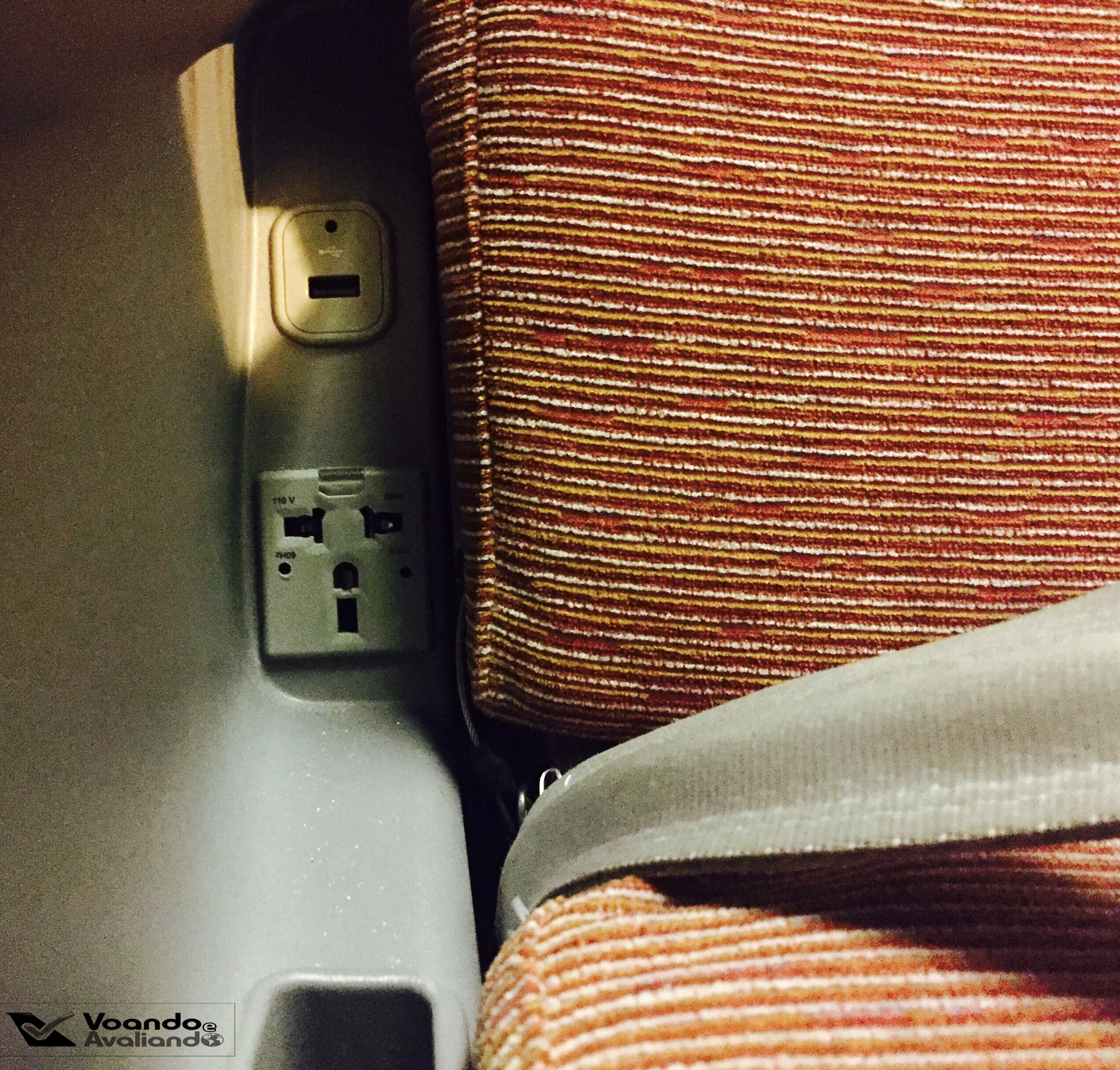 – antes de dormir, lembrei de carregar o celular: a posição da tomada e da porta USB na poltrona do B767 da LATAM é um ponto muito negativo, fica difícil de entender como o projetista do assento pensou em algo tão fora de mão, é um exercício de adivinhação conseguir colocar o cabo no lugar, porque quando o passageiro está sentado, não é possível enxergar onde estão os buracos de encaixe