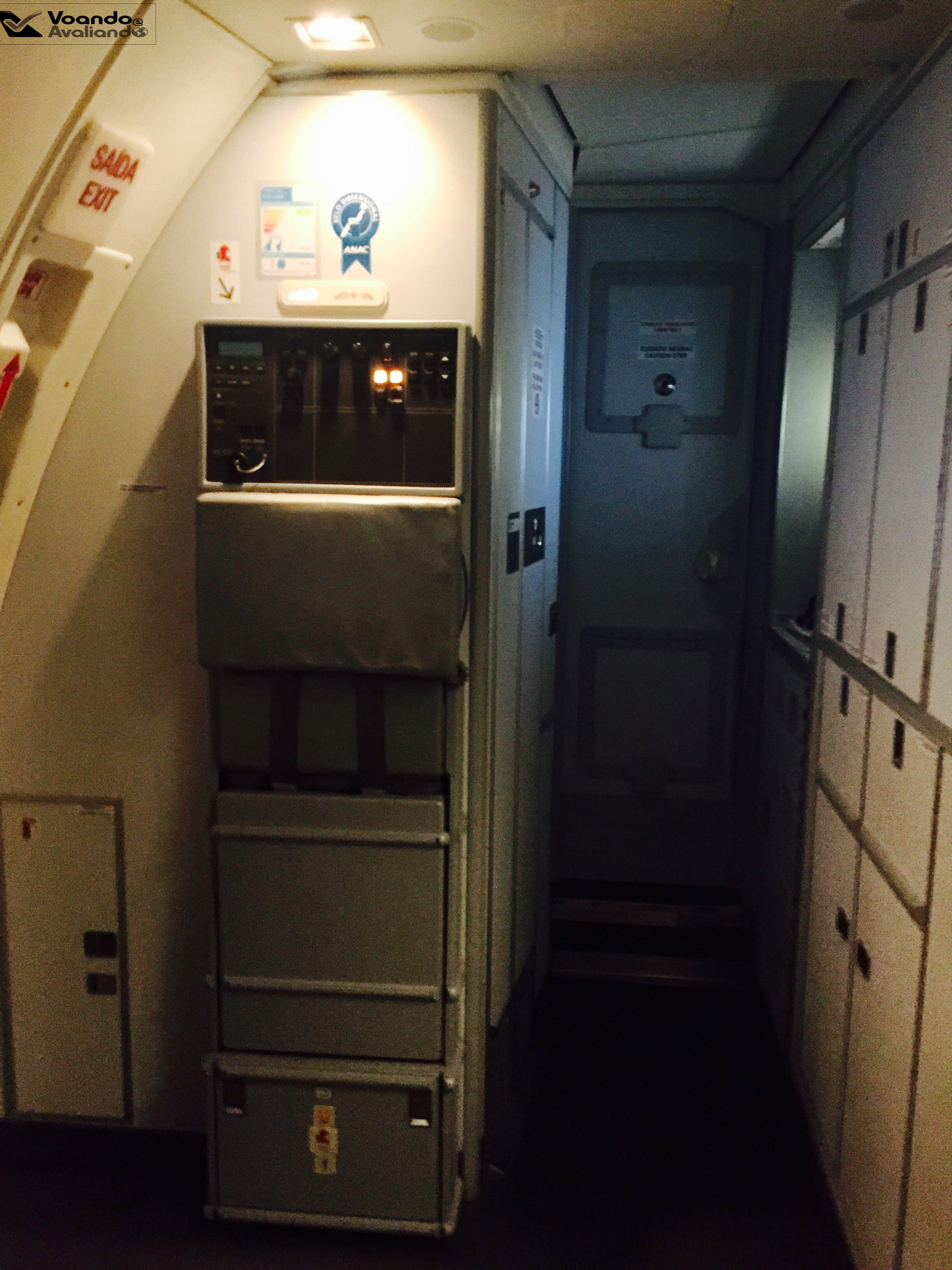 – antes de voltar para o o meu lugar, aproveitei para tirar fotos da galley deste Boeing; já tive a chance de conversar com muitos comissários de voo e existe uma certa unanimidade: para os pilotos, os aviões da BOEING são os preferidos, para o resto da tripulação as máquinas da AIRBUS são as preferidas, pois o fabricante europeu tem maior preocupação em facilitar a vida dos Comissários destinando um maior espaço às “cozinhas”