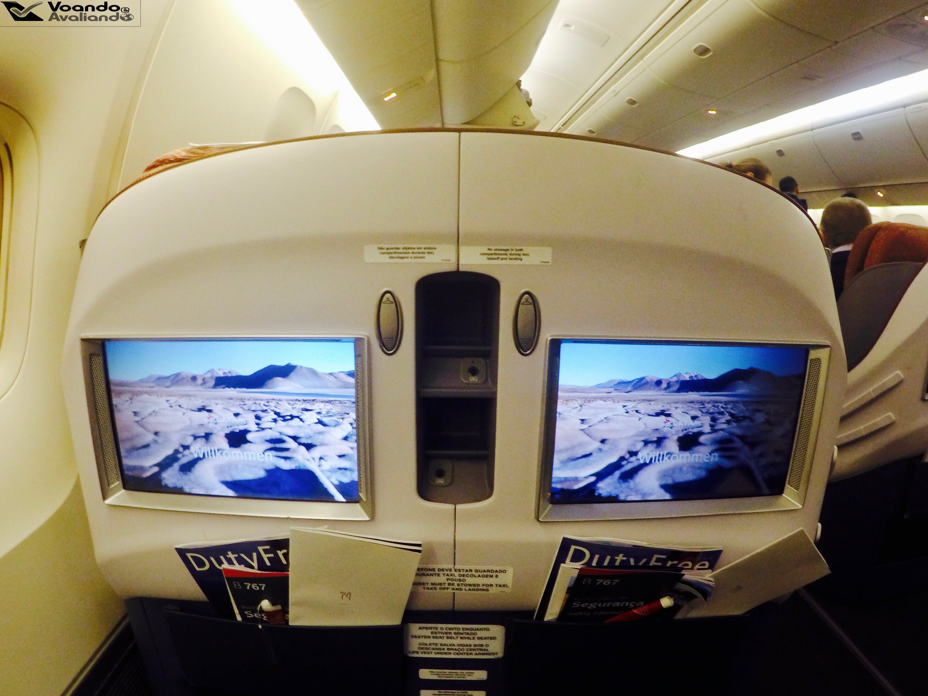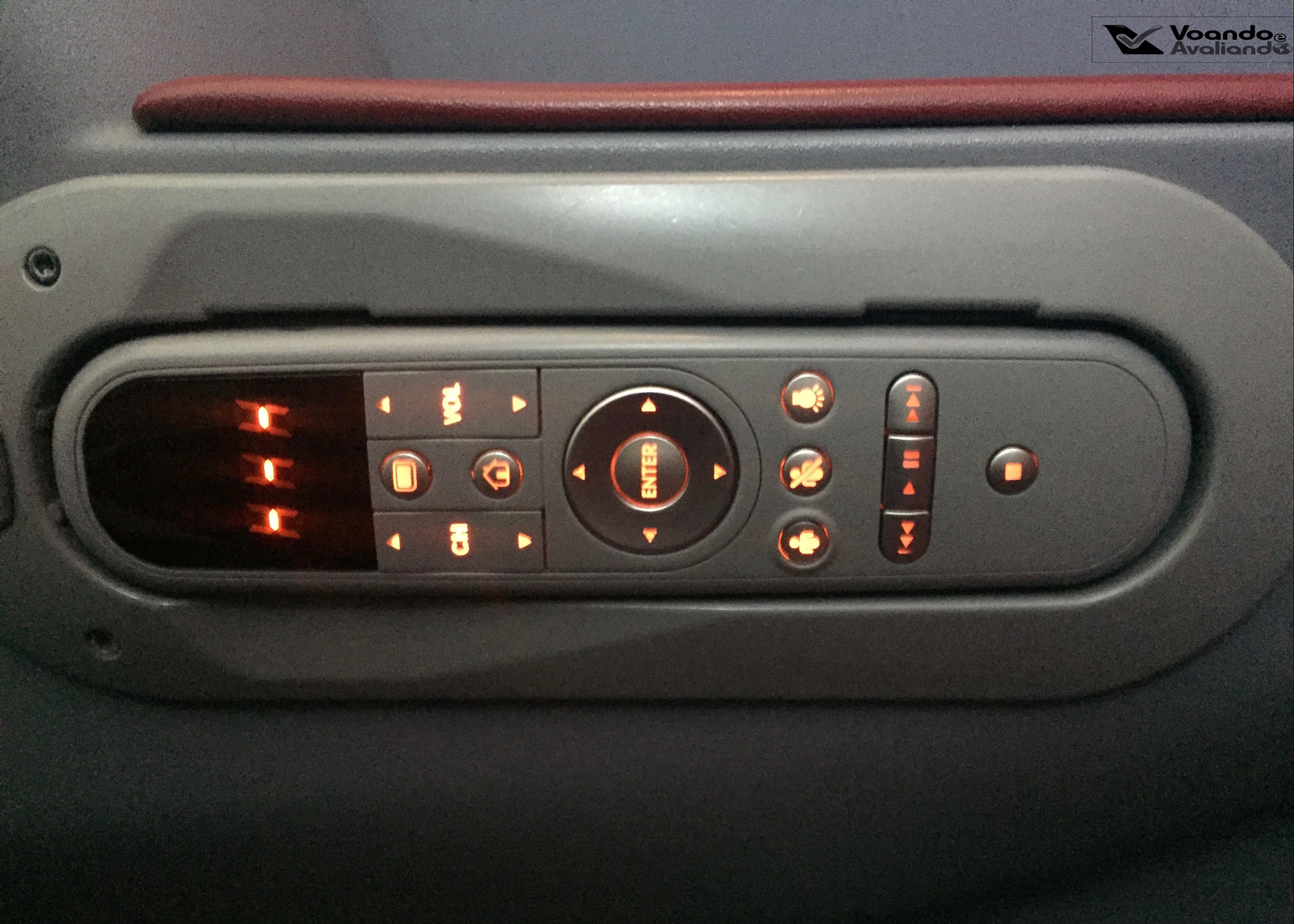 – o sistema de vídeo/entretenimento do B767 tem boa resolução e a navegação com o controle remoto, instalado na coluna da poltrona, é simples; a LATAM oferece muitas opções de filmes dublados para o português, mas a lista mudou pouco desde setembro, quando voei para Frankfurt com a LATAM NO Boeing 777-300ER (veja a avaliação completa deste voo aqui); o fone de ouvido cumpre o seu papel, apesar de não ser dos mais modernos, tem a logomarca da TAM e estava embalado em um plástico simples; escolhi o filme “Um Homem Misterioso“, com George Clooney, que conta a história de um assassino profissional que se refugia no interior da Itália e se complica ficando amigo de um padre e se apaixonando por uma prostituta