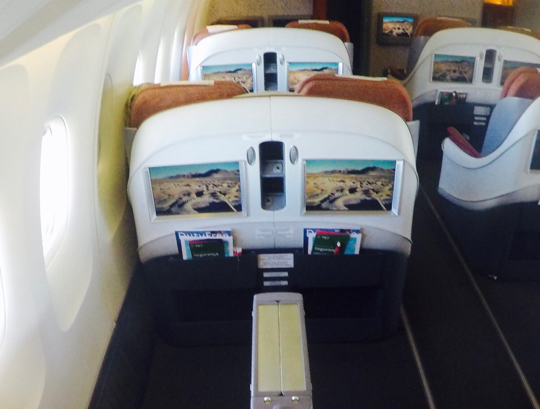 – para voltar da Europa no dia 04 de novembro de 2016, voei novamente com a LATAM, usei pontos do Programa Fidelidade para um bilhete de classe Econômica no Boeing 777-300ER (26.000 pontos – Frankfurt-Guarulhos-Rio); nesta jornada, que não foi avaliada por V&A, conseguimos o upgrade para a Executiva