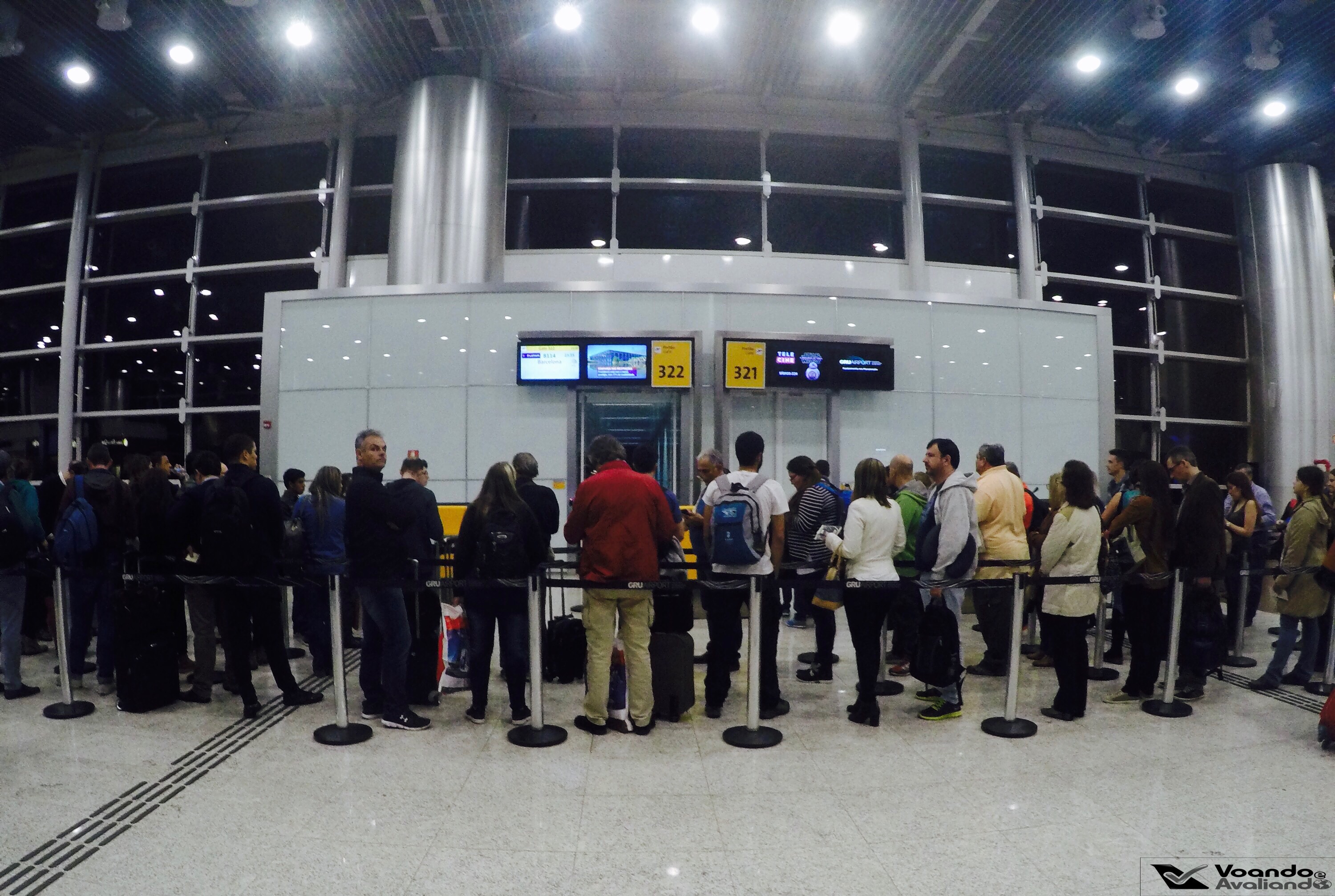 – nesta noite, dos 15 aparelhos de raio-x apenas 06 estavam funcionando, mas a fila estava pequena, portanto, foi muito rápido vencer o controle de segurança; já no controle da Polícia Federal, havia mais gente na fila, 03 catracas eletrônicas de controle de passaporte estavam funcionando e cerca de 20 pessoas estavam a nossa frente; perdemos um pouco mais de 10 minutos