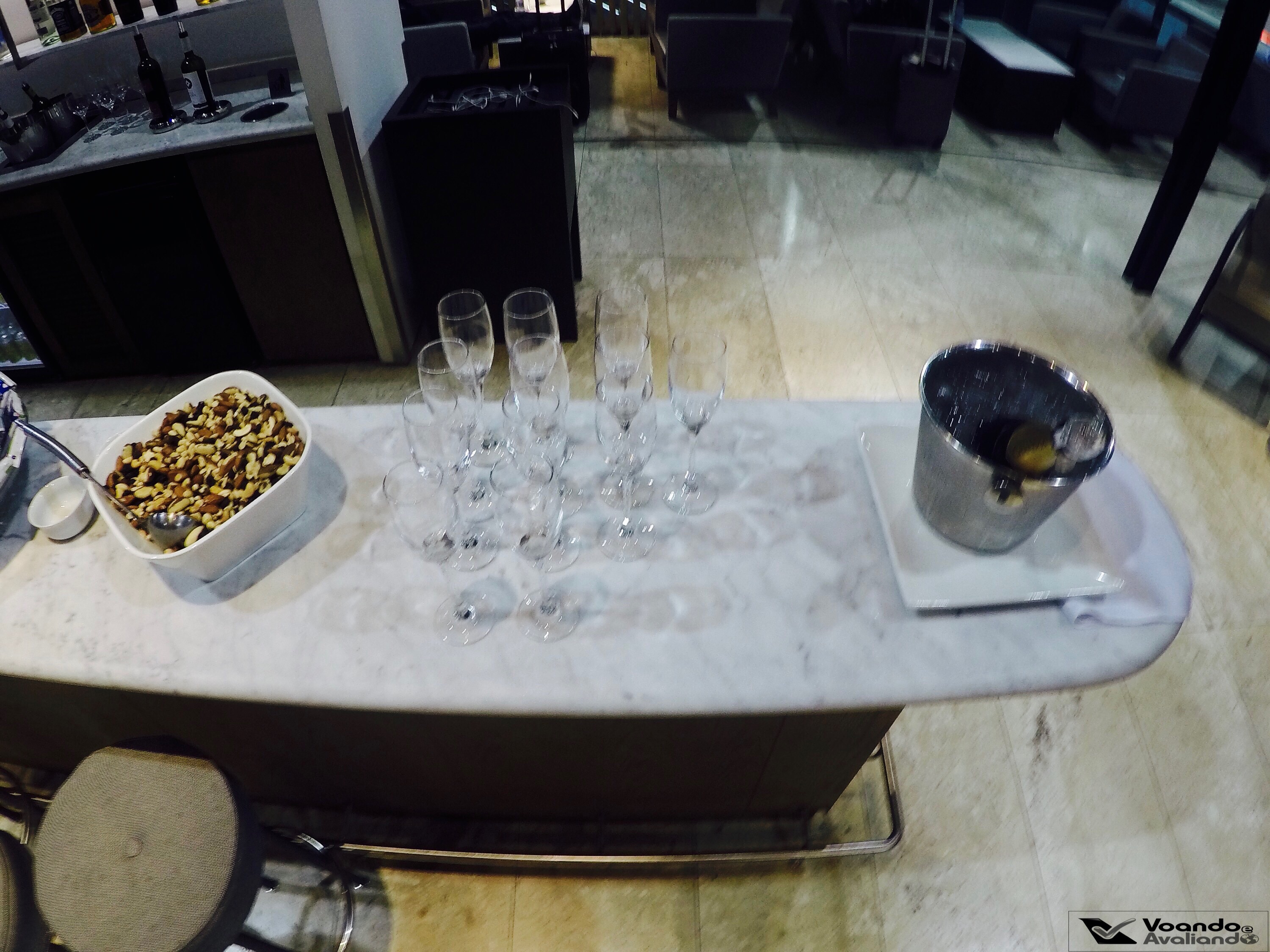 – já estive lá muitas vezes e geralmente está lotada, mas neste dia, sem dúvida foi a vez que passei neste Lounge e encontrei o menor número de pessoas; o buffet é apenas razoável, com prevalência de snacks para uma refeição rápida; esta Sala VIP é grande, com diferentes ambientes, com vários tipos de poltronas e sofás, além de um bar