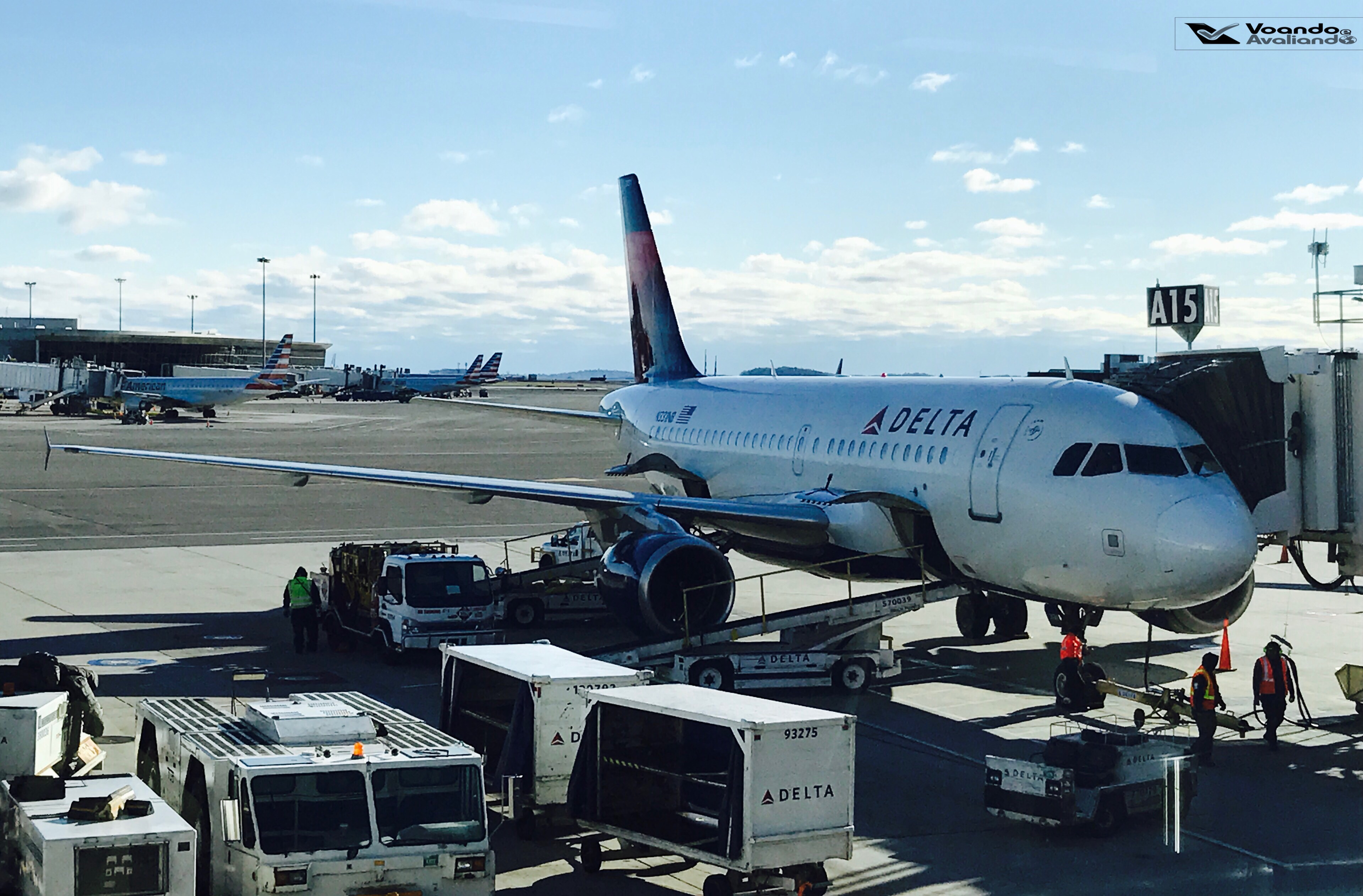 – assim como no voo anterior que partiu de Boston, aqui o embarque para o voo DL 1343 também seria feito por meio do Portão A15; muitos passageiros já estavam aguardando nos arredores, são muitas cadeiras espalhadas pelo saguão