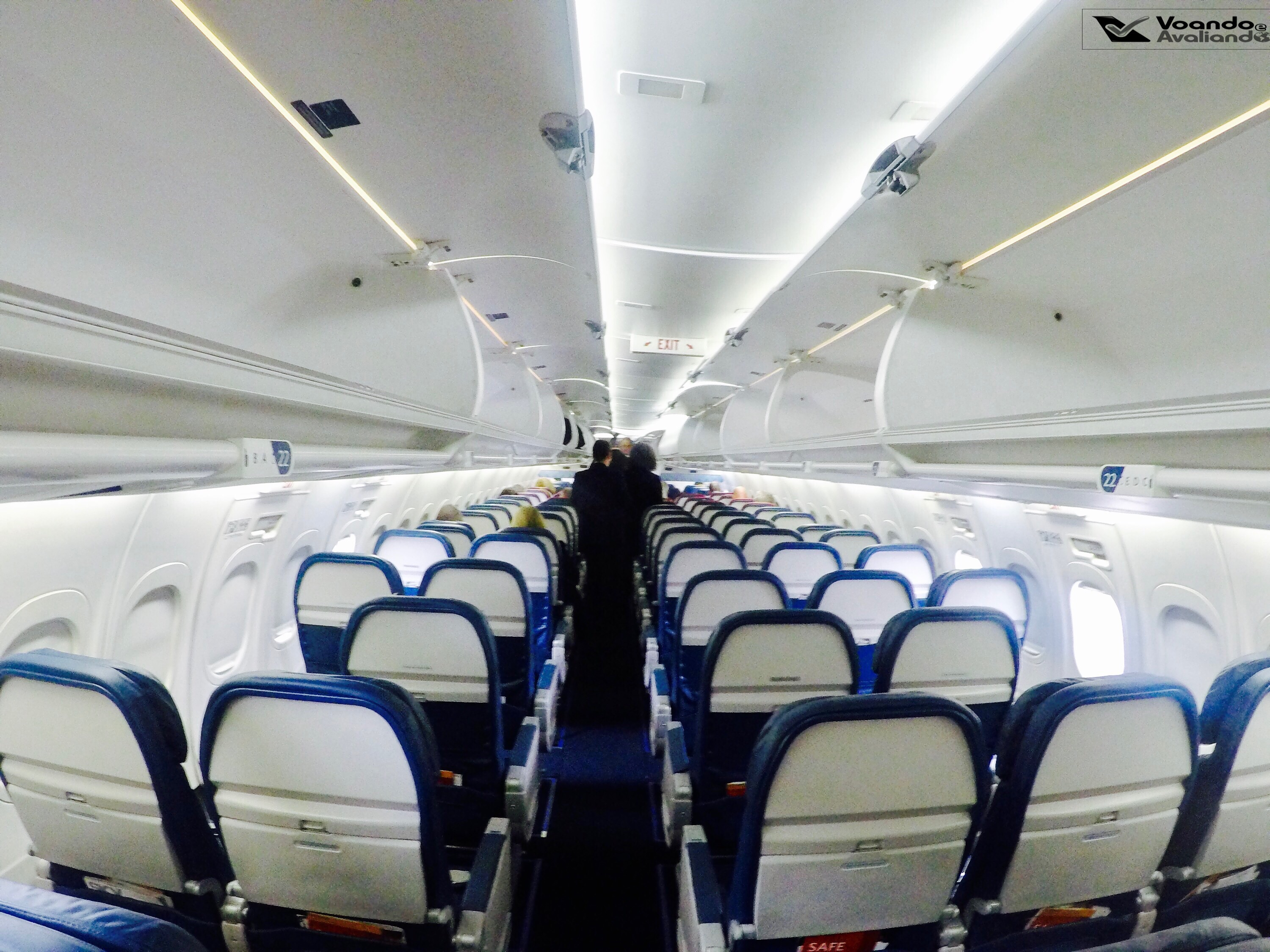 – acabei sendo o primeiro a entrar para ocupar a classe Econômica do A319 de prefixo N331NB, uma máquina fabricada em agosto de 2001 que operou primeiro com a Northwest e, em novembro de 2009, passou a fazer parte da frota da DELTA; logo percebi que o interior deste Airbus já tinha passado por modernização e era bem diferente daqueles que voam no Brasil com a LATAM e AVIANCA; o desenho e estrutura dos bagageiros são diferentes, eles parecem ser bem maiores; o suporte das luzes de leitura e chamada de comissários têm linhas futurísticas