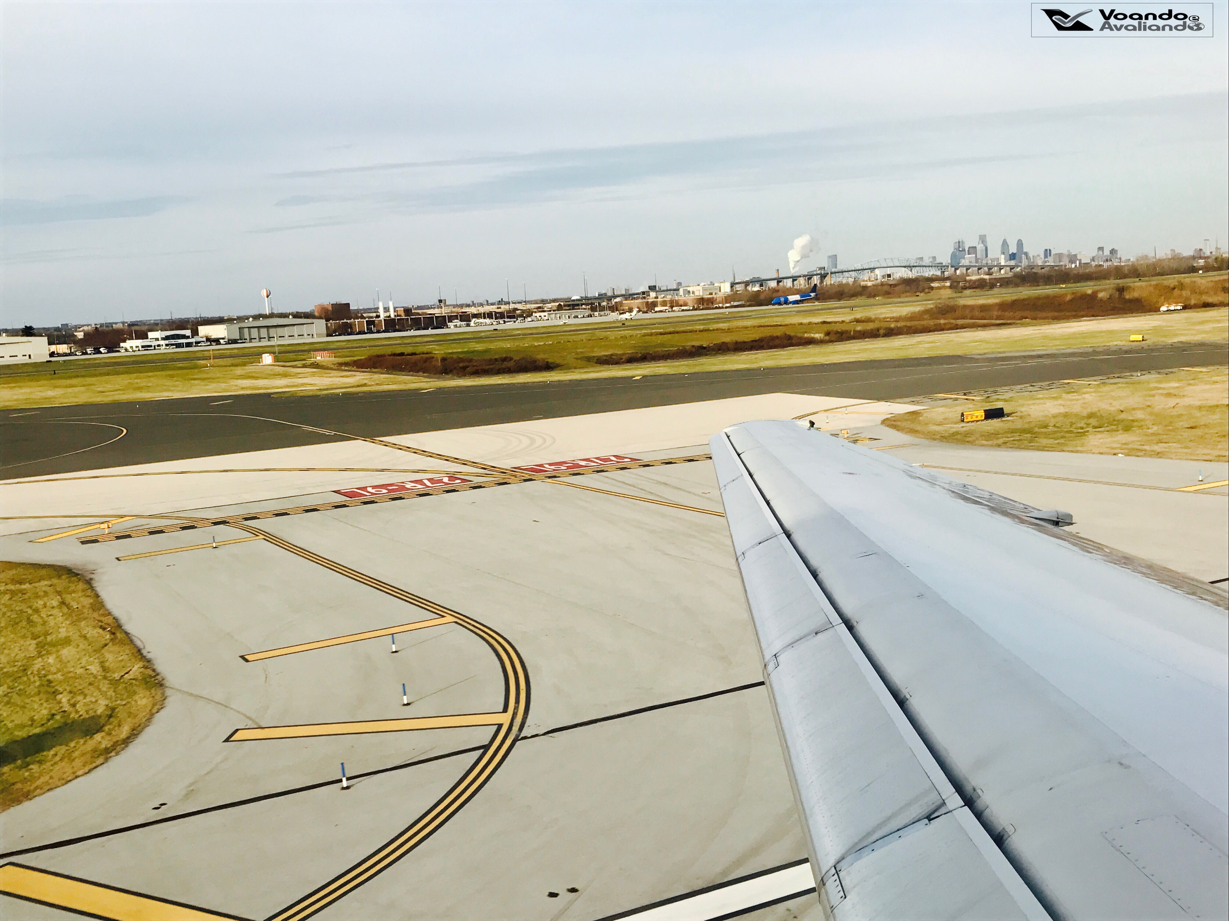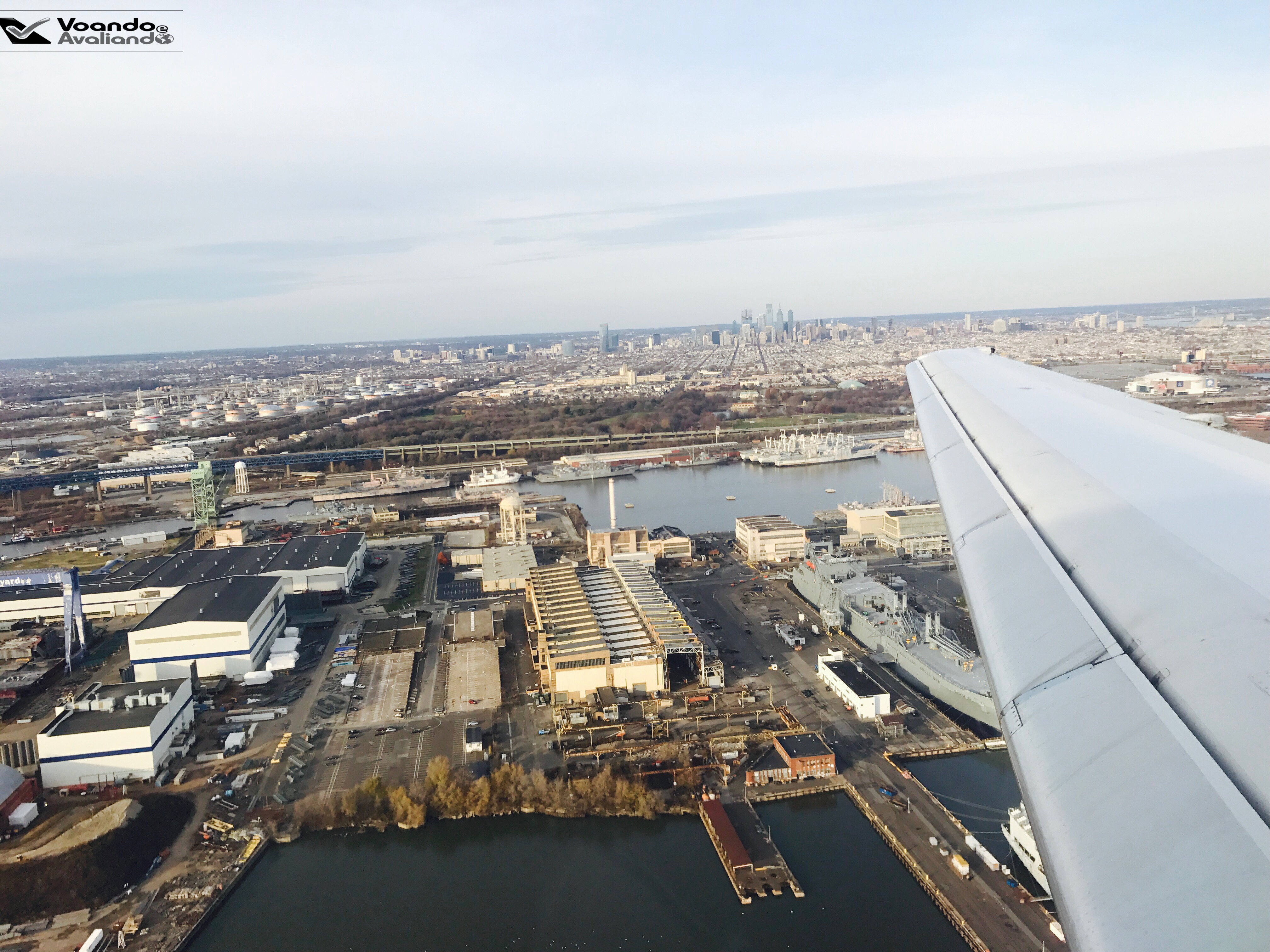 – o trem de pouso foi armado às 15:15h e pousamos às 15:22h, dentro do horário previsto; os minutos finais de voo foram prazerosos, o alinhamento final é feito com uma bela vista do porto e do centro da cidade de Philadelphia