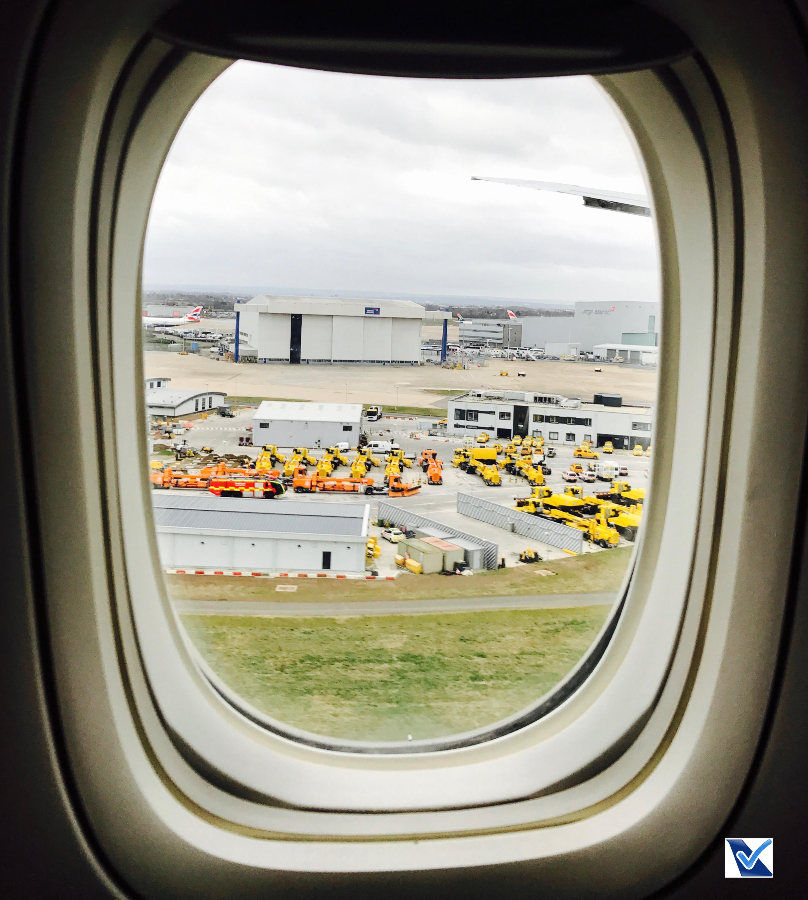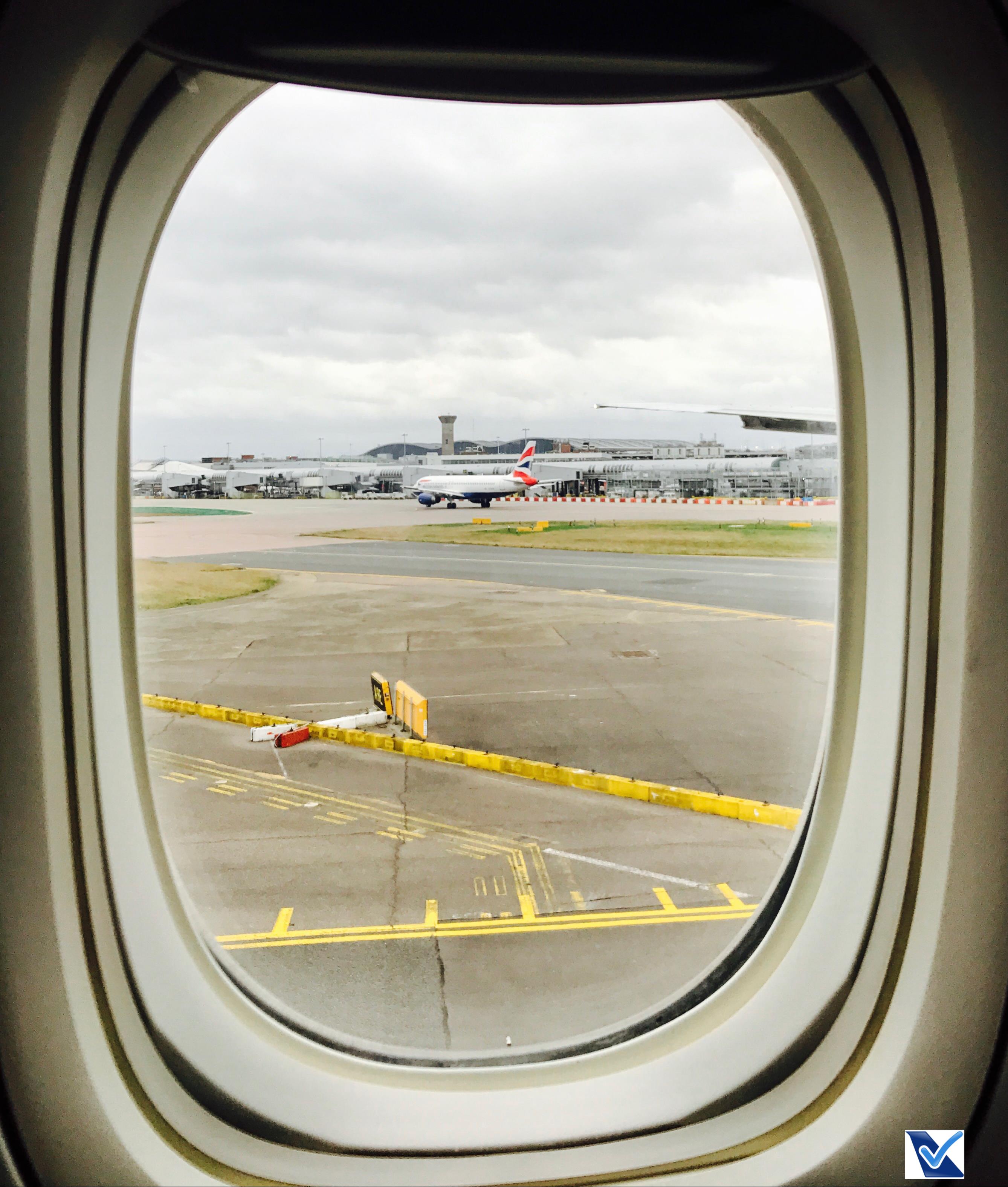 – o fuso horário nesta época do ano entre Brasil e Inglaterra é de +3 horas; a aproximação para pouso em Londres/Heathrow começou por volta de 13:00h (horário local); apesar das nuvens e da falta de sol, a paisagem inglesa proporciona bela visão da janela do B777 da LATAM; o pouso feito pelo Comandante Cruz foi tranquilo e seguro às 13:25h, um atraso de 10 minutos com relação ao horário programado