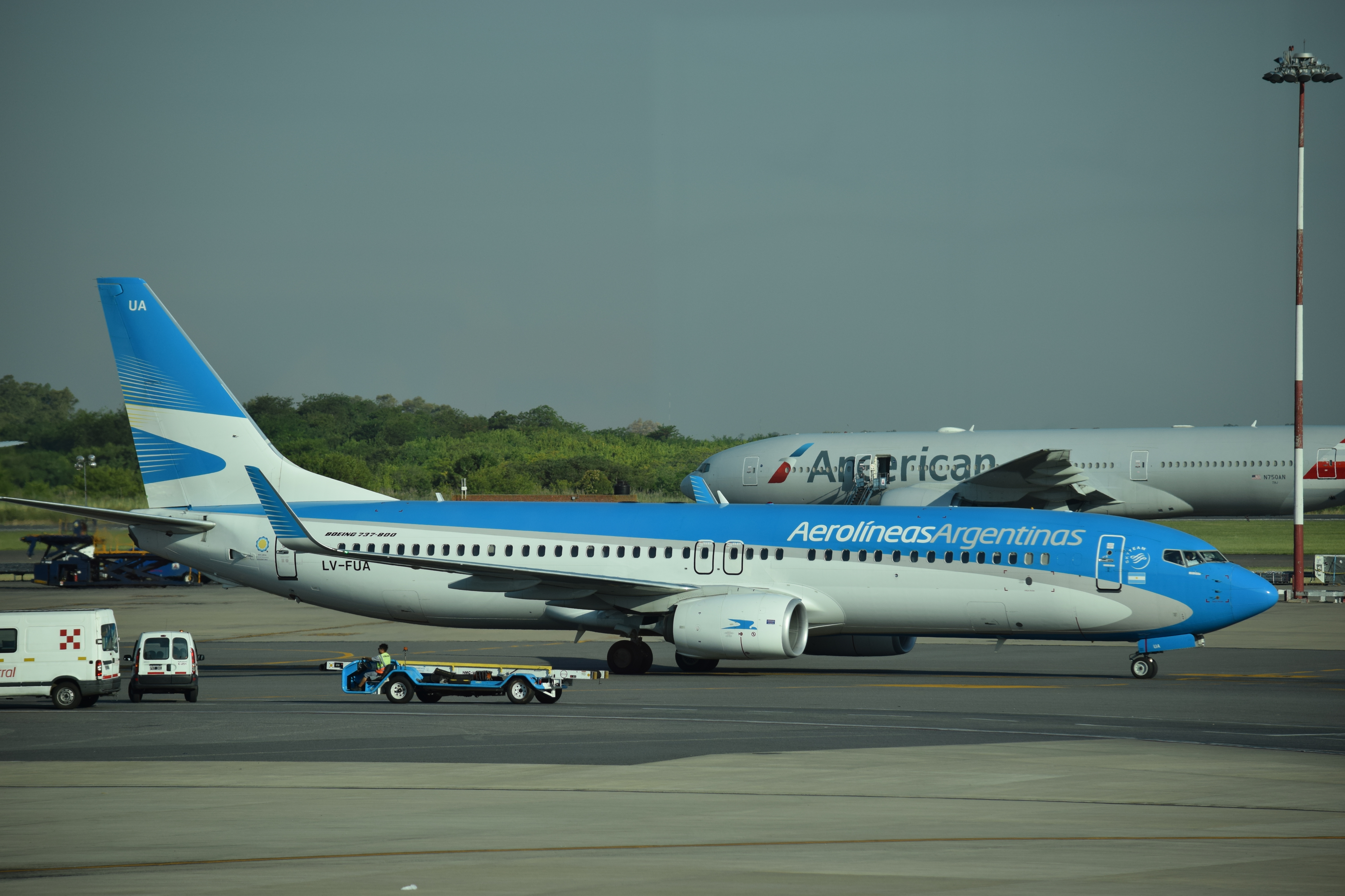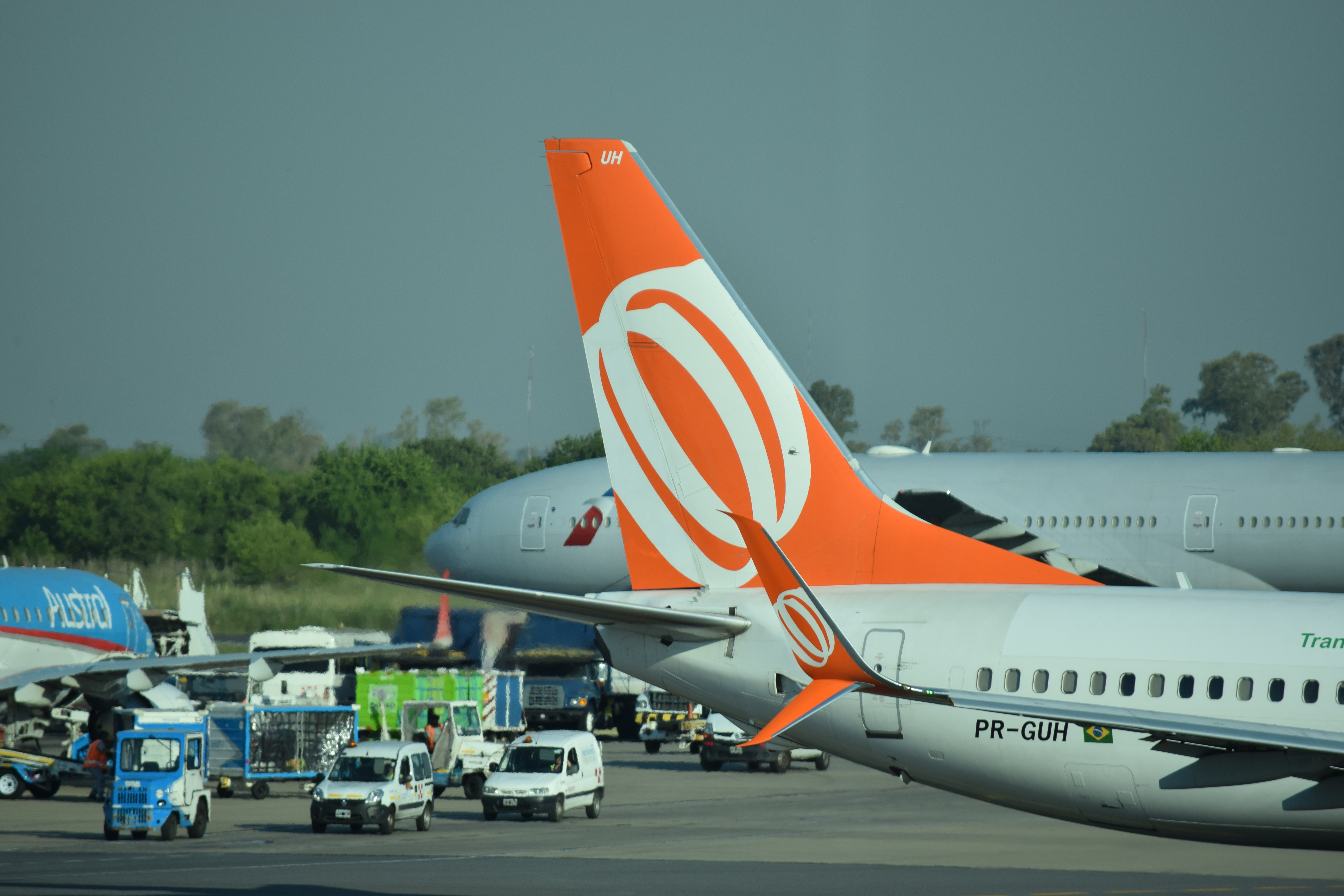 A predominância de aviões da Boeing transitando nesta tarde de sábado neste terminal é flagrante: aviões da fabricante americana desfilavam nas cores da LATAM, GOL, LUFTHANSA, AEROLINEAS ARGENTINA, AMERICAN AIRLINES, AIR CANADA e KLM.  A Airbus apareceu com a AEROLINEAS ARGENTINA e AVIANCA. E a nossa Embraer marcou presença com a argentina AUSTRAL.