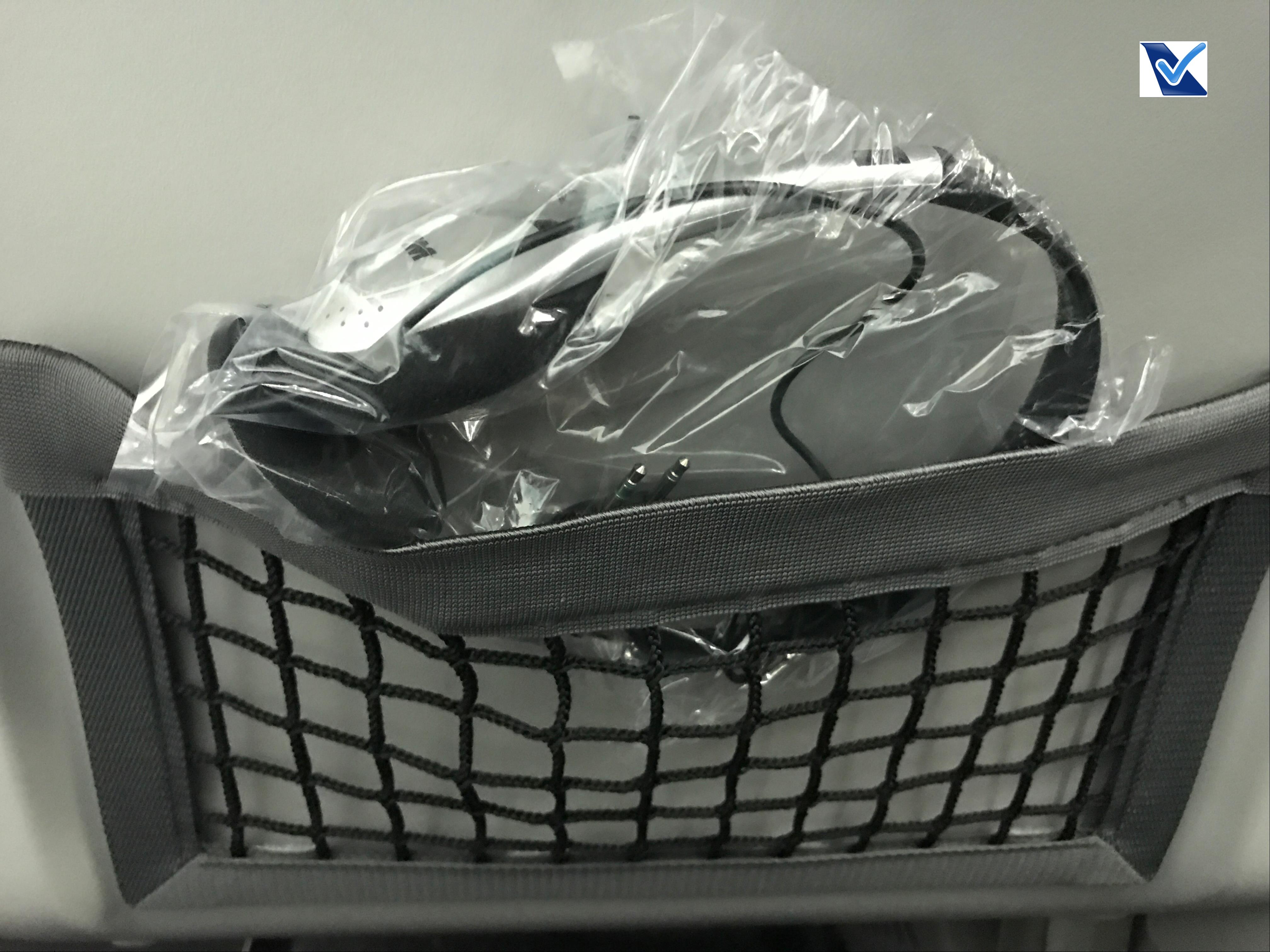 – como fui o último a entrar no avião, tive um pouco de dificuldade para colocar minha mochila, não havia espaço nos bagageiros, mas a Comissária ajudou, fez um arranjo e conseguiu encaixar; não há um sistema de vídeo (individual ou coletivo) nesta aeronave, apesar de um fone de ouvido estar disponível na “redinha” da poltrona da frente; não houve distribuição de necessaire aos passageiros da classe Premium, nem mesmo aquela mais básica; uma tomada universal está instalada na estrutura inferior da poltrona da frente, sendo possível carregar equipamentos eletrônicos durante o voo
