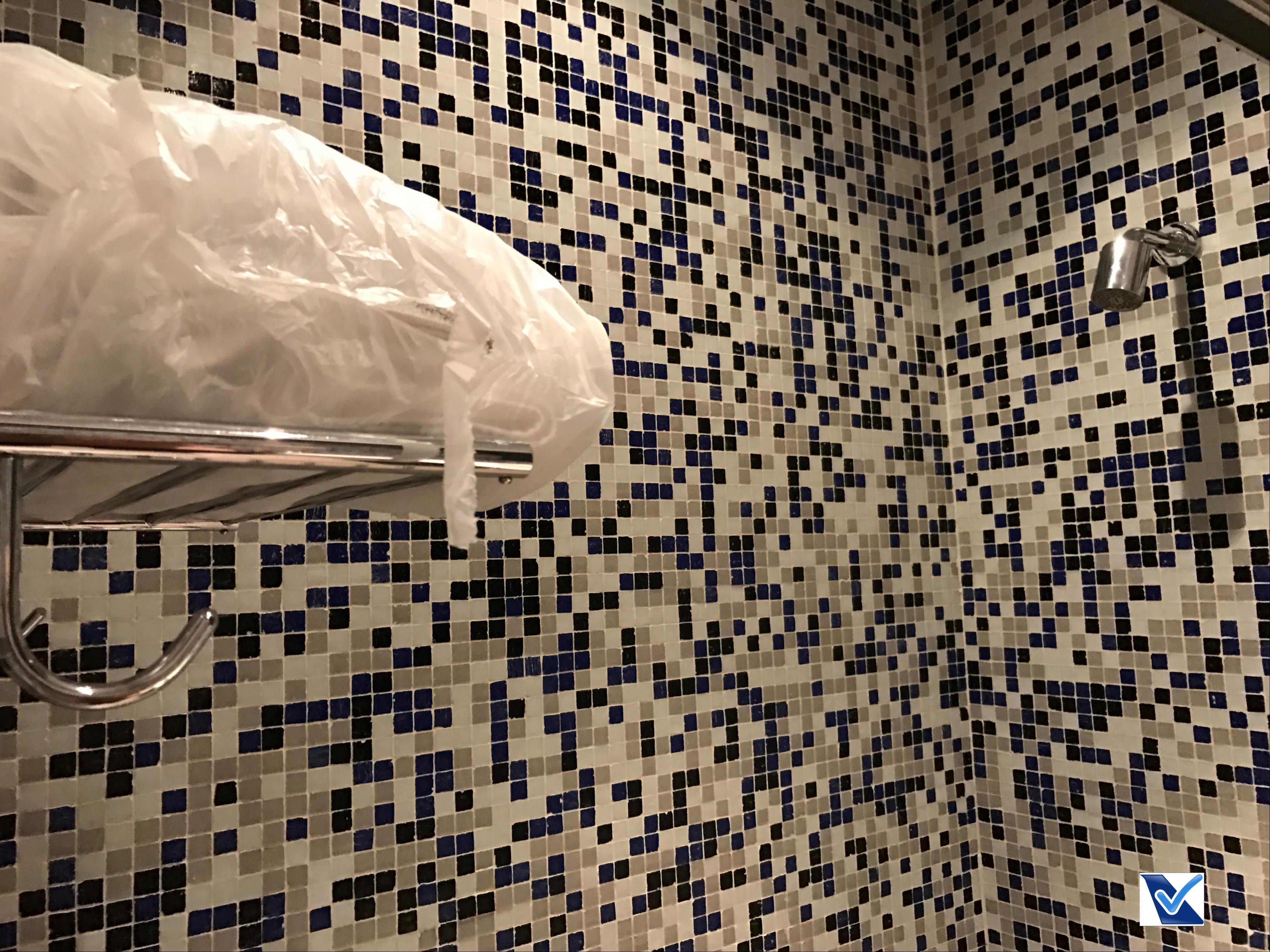 – o banheiro que tem chuveiro não é grande, mas tem tudo que o passageiro precisa; na pia, um kit de amenidades: kit de escova + pasta de dente, kit de barbear, lustra sapatos, shampoo e condicionador; o vaso estava higienizado e o conjunto de toalhas estava embalada indicando que estavam limpas; o chuveiro era potente e refrecante; tomei um banho muito bom e revigorante