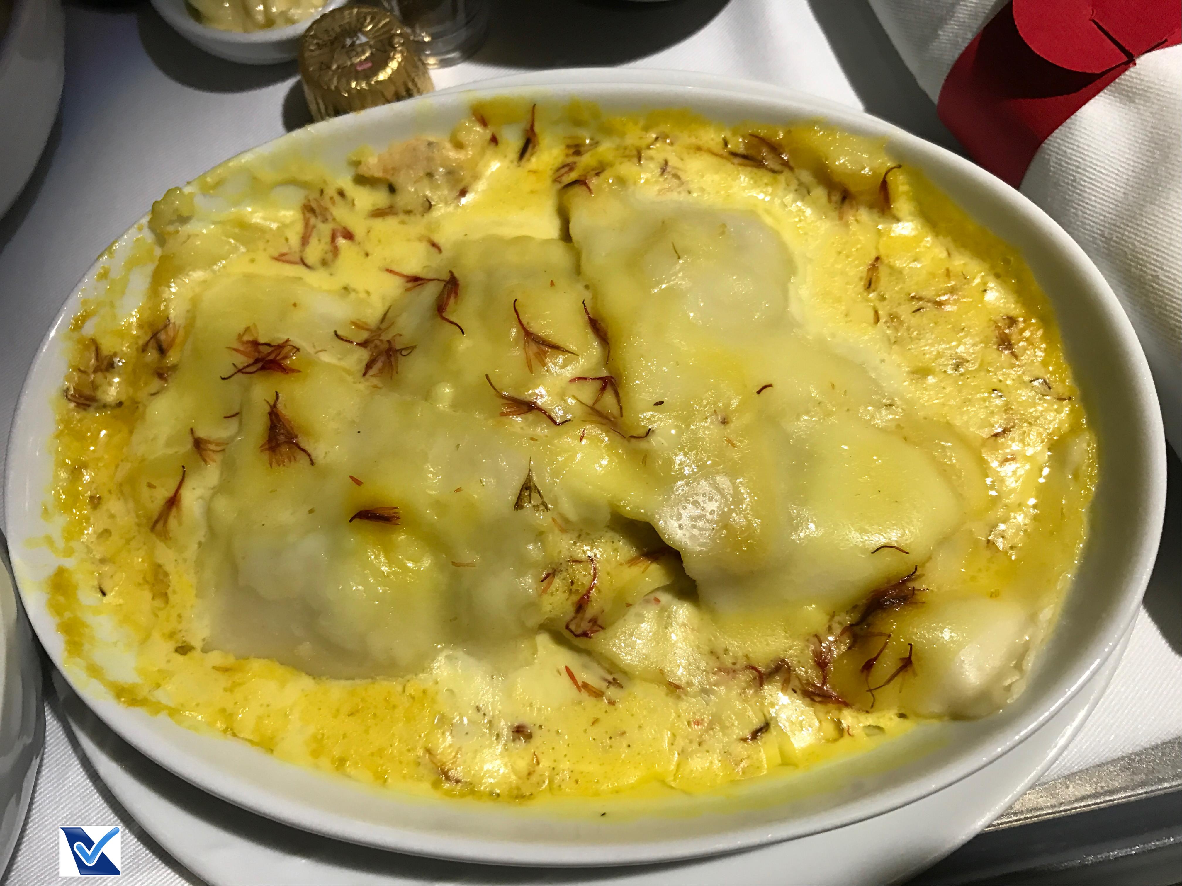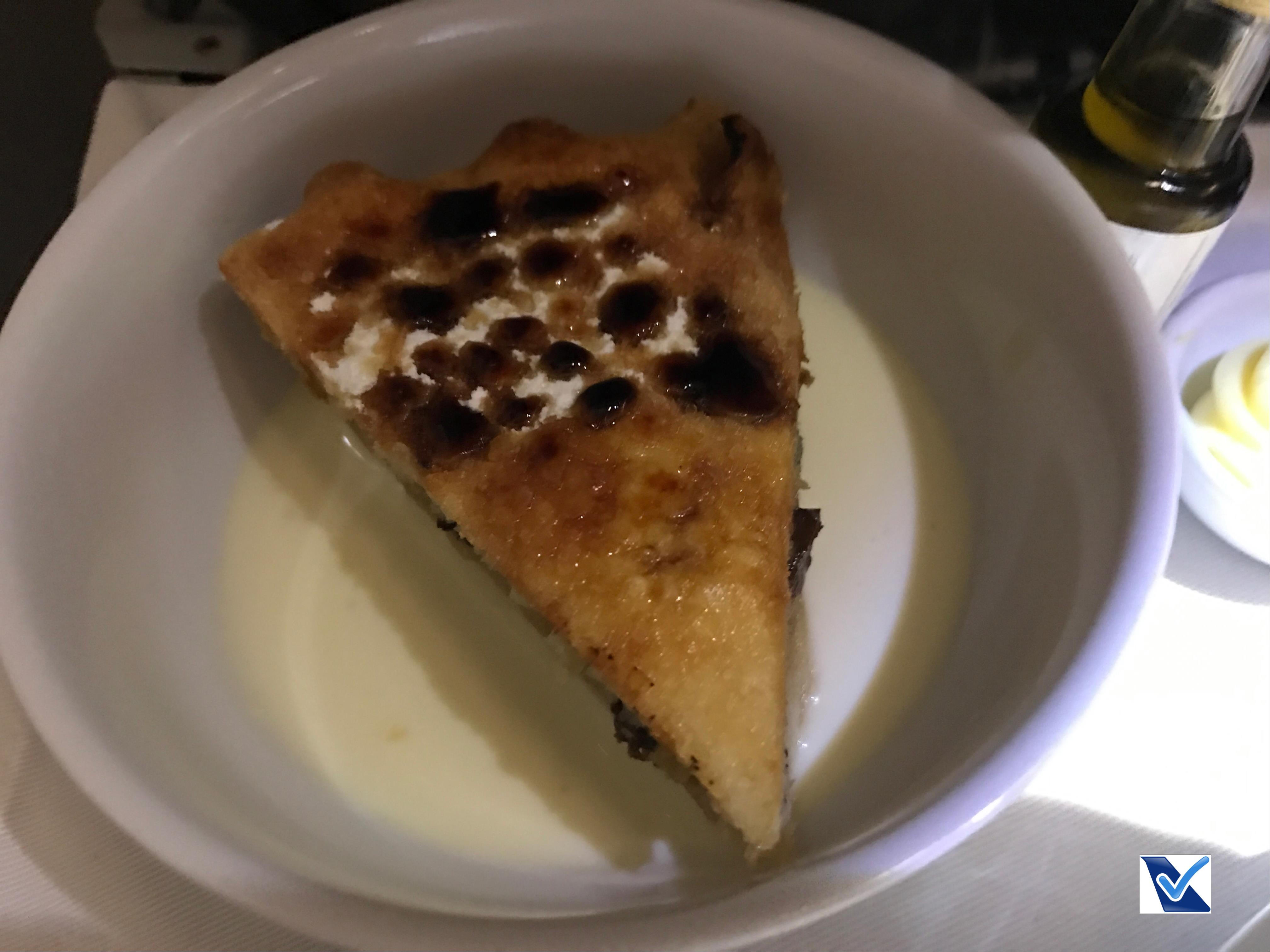 – o serviço de bordo foi iniciado às 00:15h; as opções eram “carne ou massa“, esta foi a forma de apresentação dos pratos aos passageiros, sem maiores detalhes, a Comissária não se preocupou em “vender” cada uma das alternativas aos passageiros; escolhi a massa, que era um ravioli de peito de peru, com molho branco, que estava saboroso; o jantar foi servido em uma bandeja onde também tinha um pote de salada (fresca e com sabor) e a sobremesa (torta de maçã, que estava apenas razoável), além de um chocolate Alpino ; os talheres eram de aço inox com a logomarca da TAM; não quis beber nada alcoólico, pedi refrigerante, que foi servido em um copo de vidro