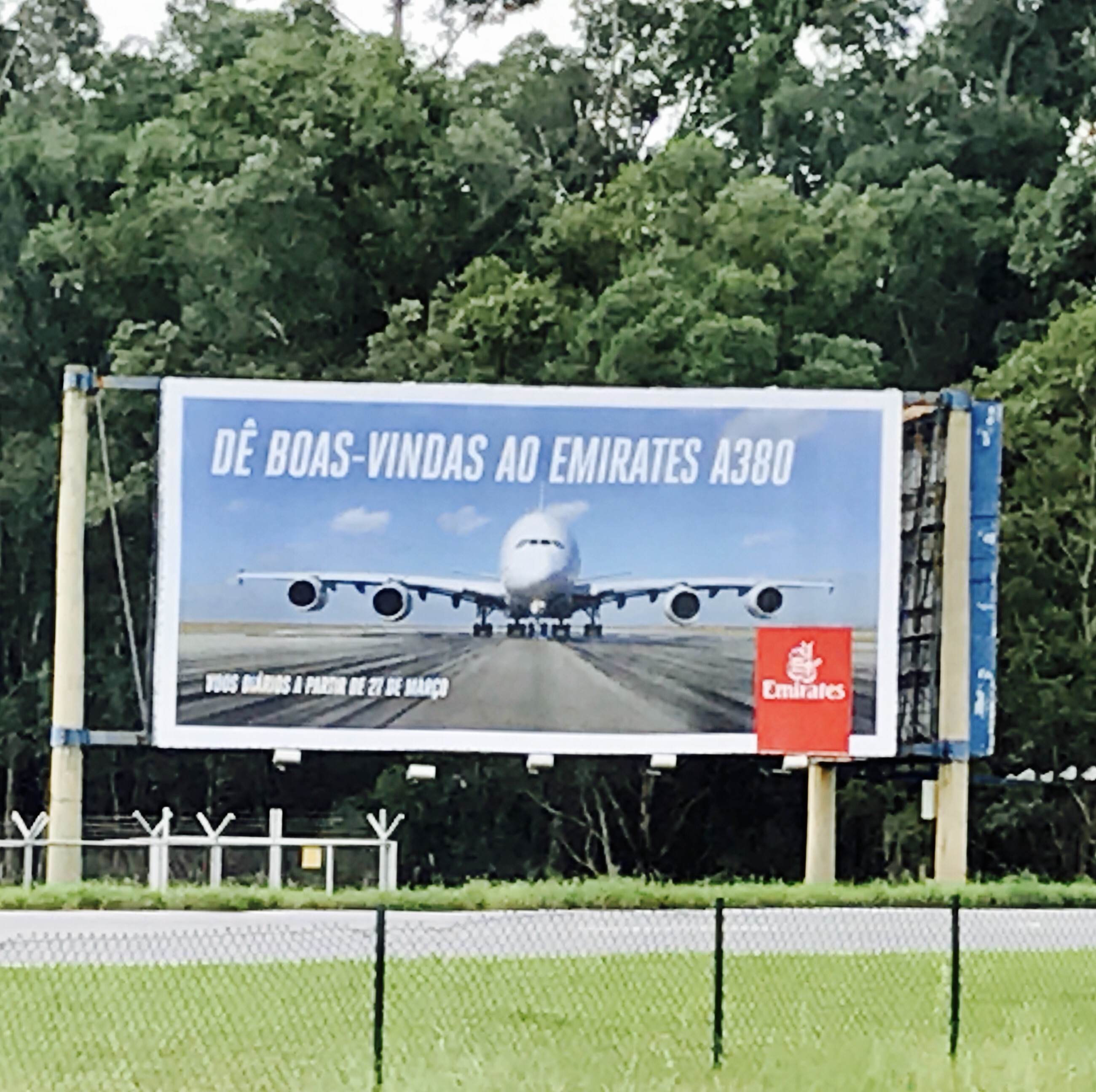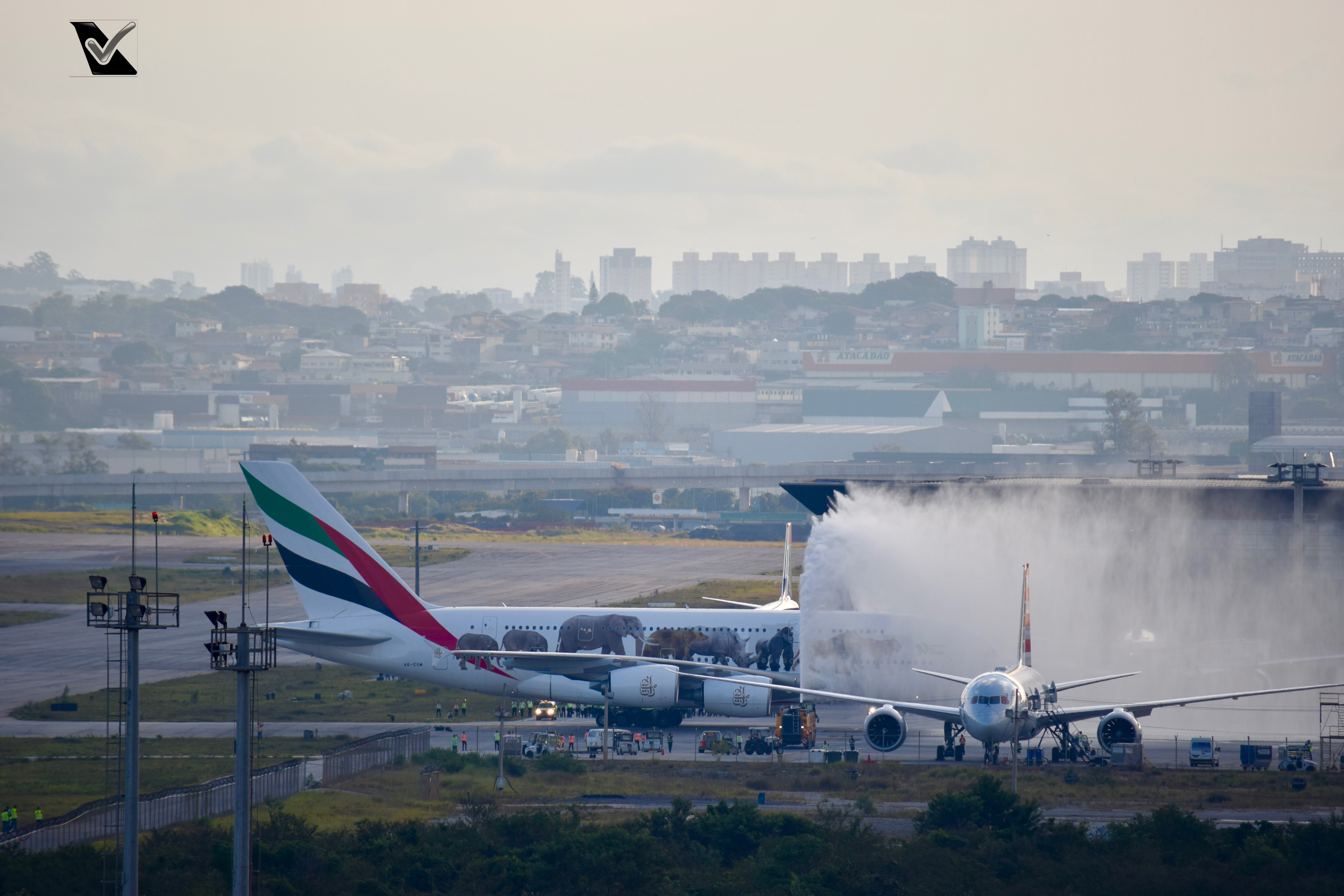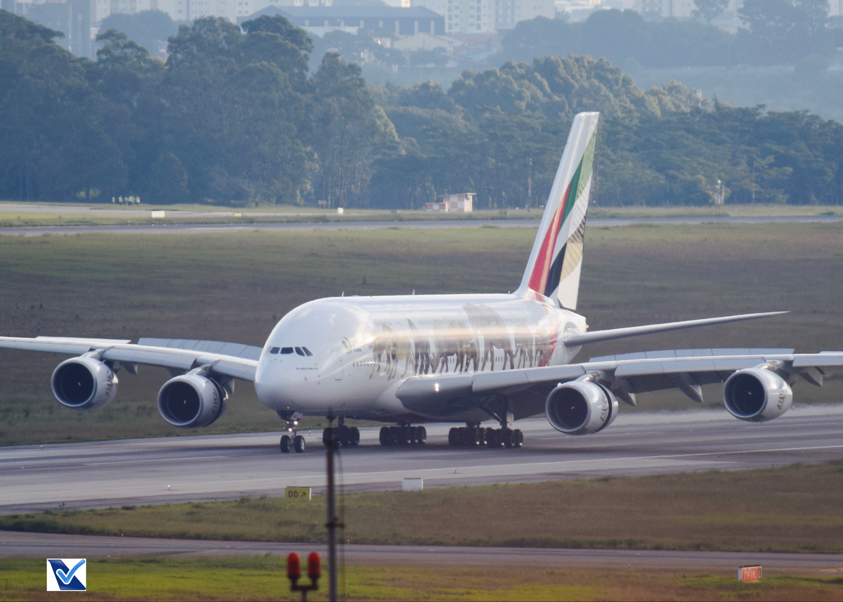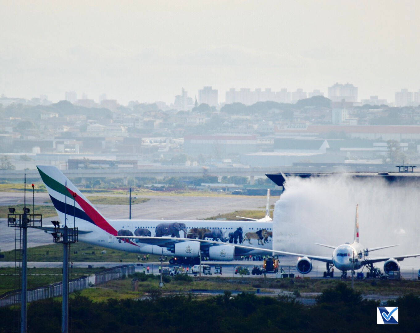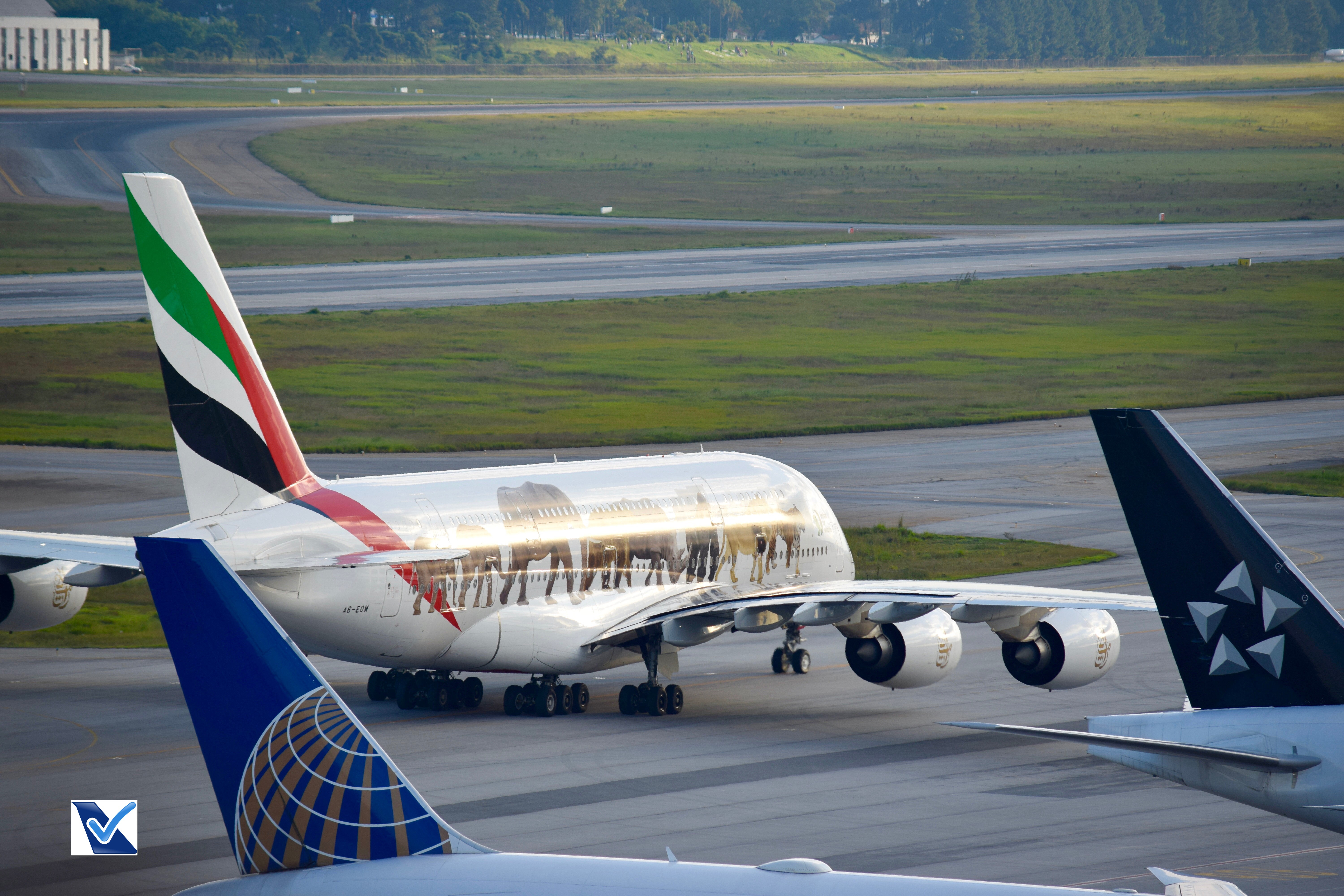 Em 16.01.2017, a EMIRATES, companhia aérea eleita a melhor do mundo pelo prêmio Skytrax 2016, confirmou que iria mudar a aeronave que opera o voo diário entre DUBAI (DXB – Emirados Árabes) e GUARULHOS/GRU: sai o Boeing 777-300 e entra o gigante de 500 toneladas Airbus A380.