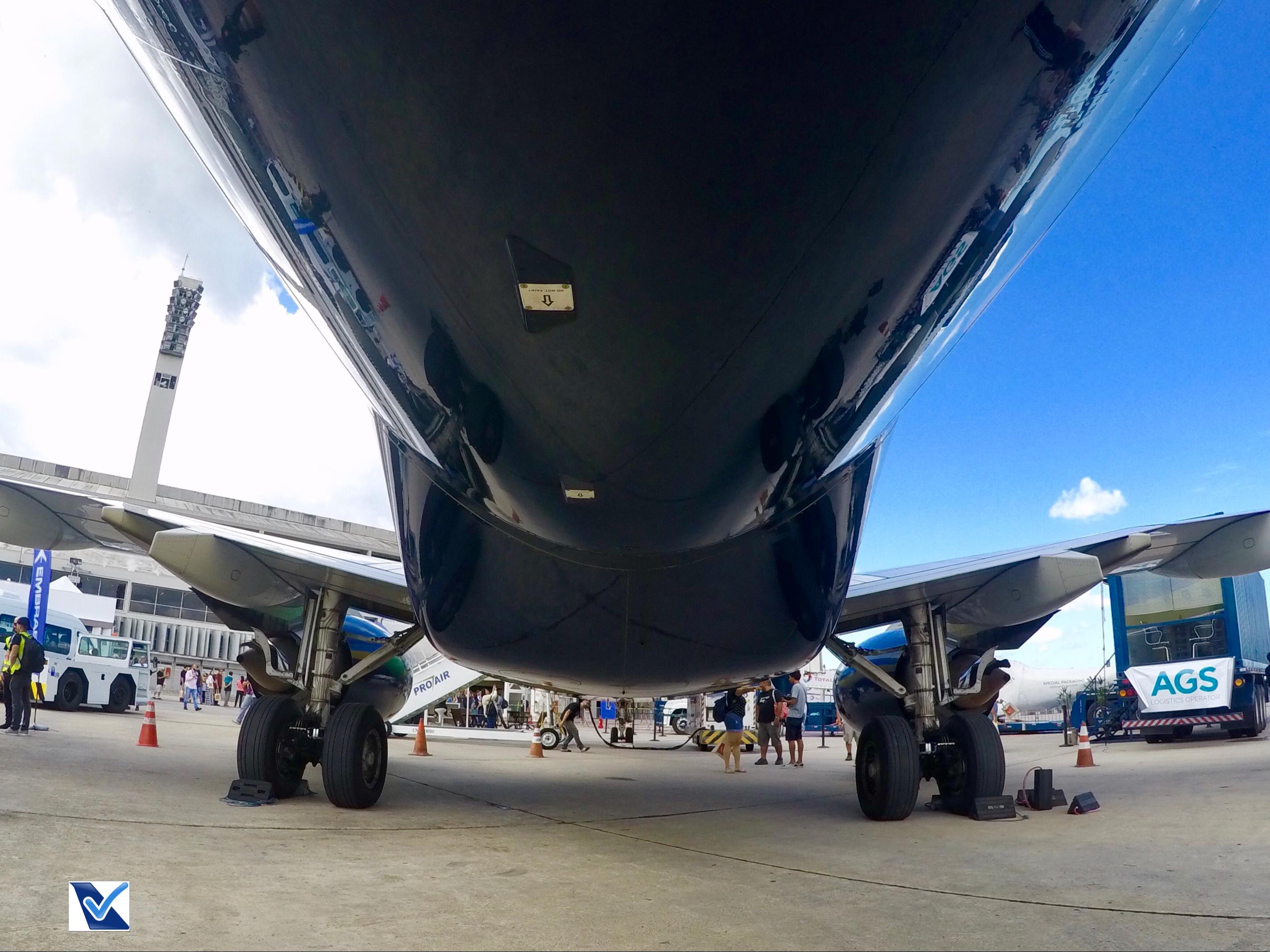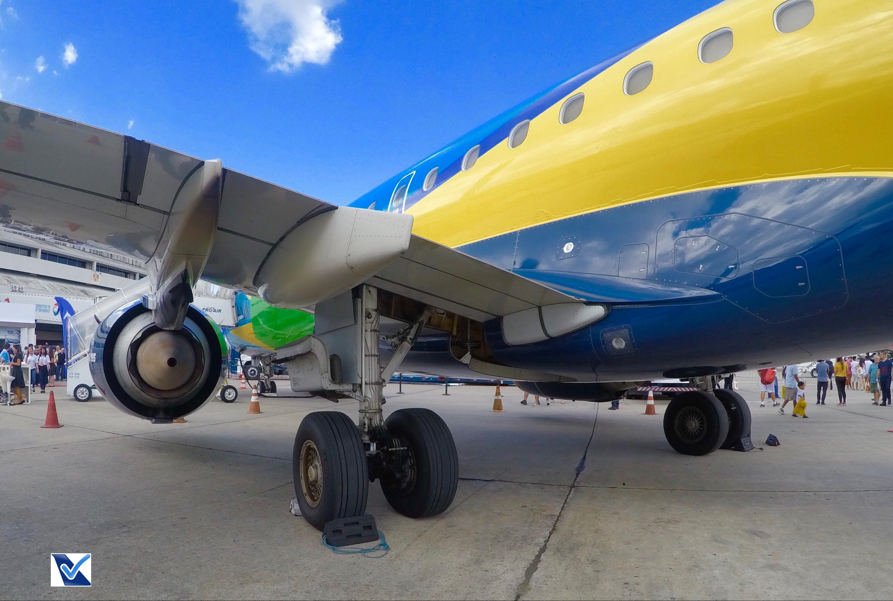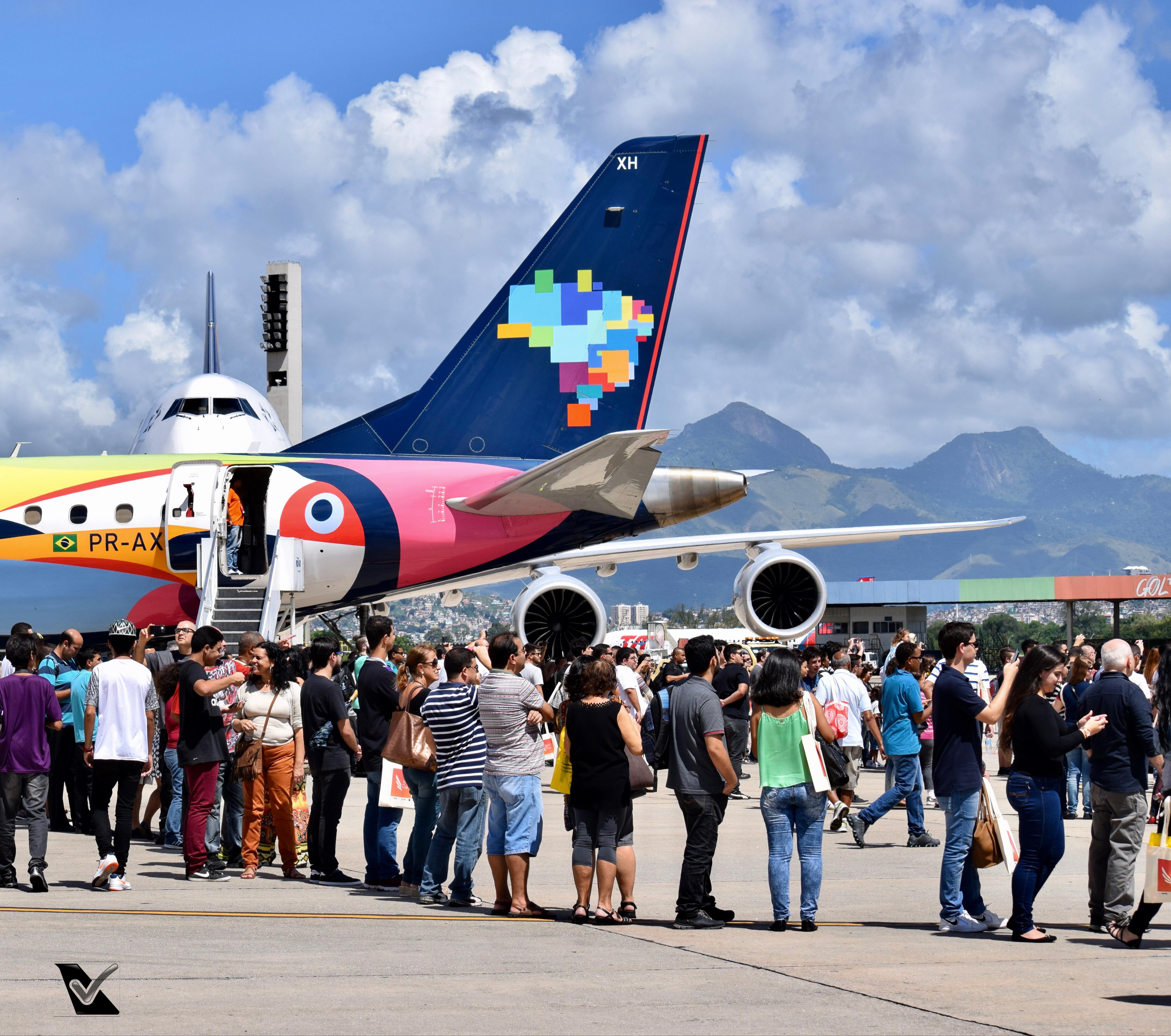 Quando finalmente foi possível entrar, somente o “nosso” E-195 da AZUL estava exposto dentro da exposição (rapidamente, uma enorme fila se formou para a visita ao interior da aeronave). O sempre magnífico B747-8 da LUFTHANSA estava estacionado a esquerda, depois das grades de proteção, sem acesso ao público. Por volta de meio-dia, um A319 da LATAM (com a nova identidade visual depois da fusão entre TAM e LAN) foi rebocado para uma área do lado direito, também sem acesso dos visitantes. Os A29s (Super Tucanos) da Esquadrilha da Fumaça estavam perfilados depois das grades, na parte frontal. Quando eu estava indo embora (por volta de 13:15h, um B737-8 da GOL (com as novas cores da companhia) estava sendo rebocado para ser estacionado na parte interna, ou seja, também seria possível fazer a visita ao interior do Boeing. Além disso, um helicóptero e alguns poucos veículos de operação aeroportuária estavam expostos.