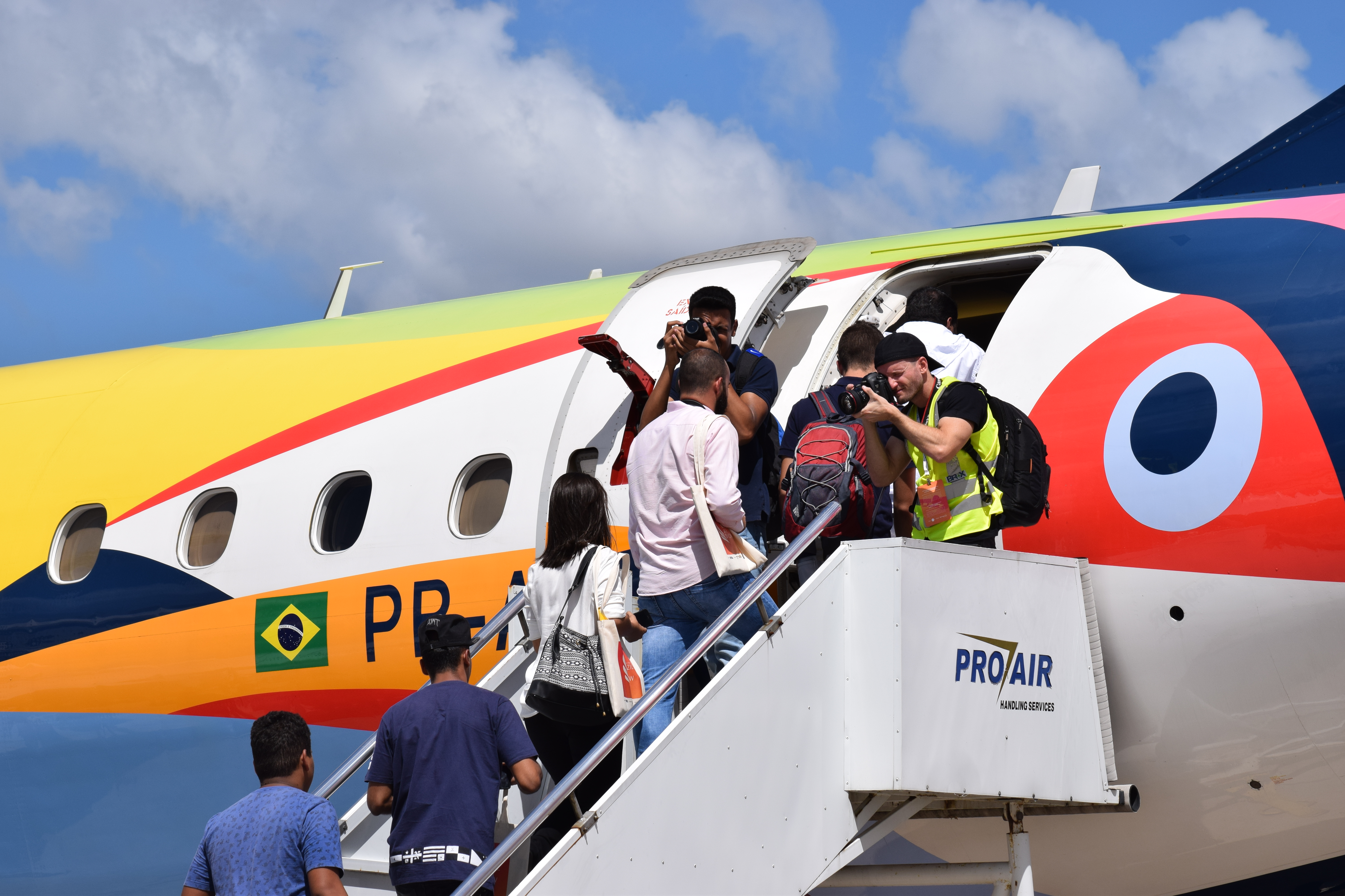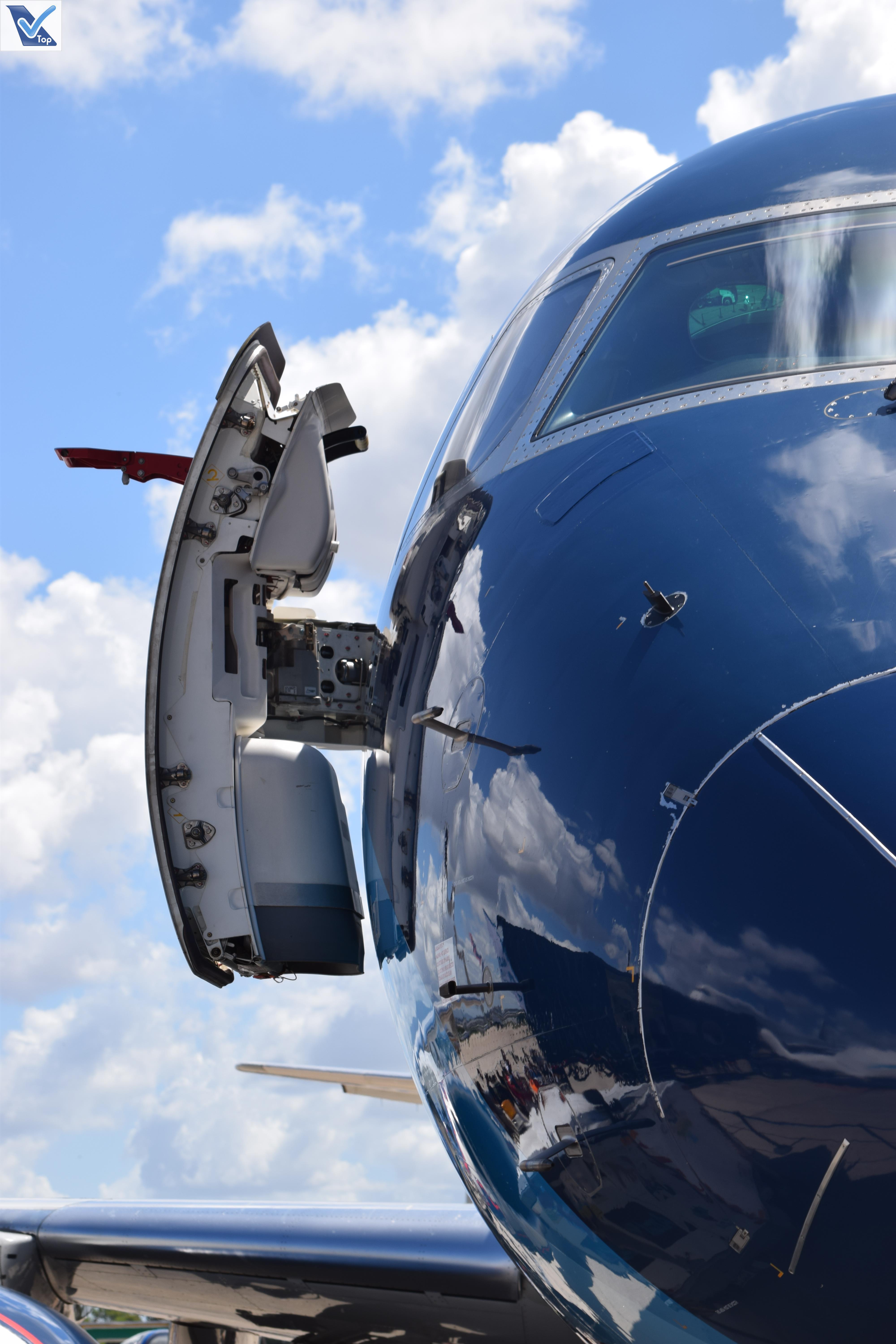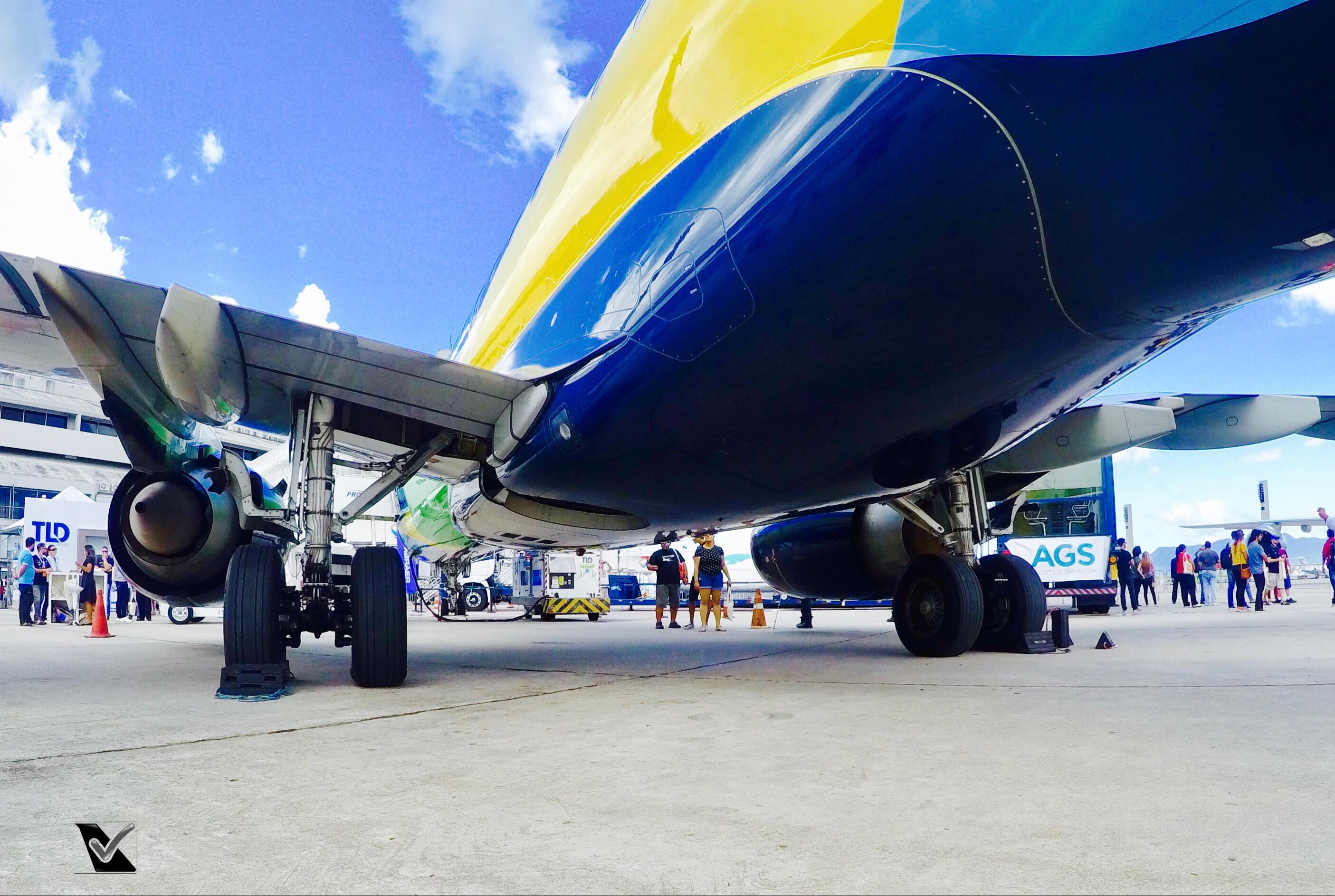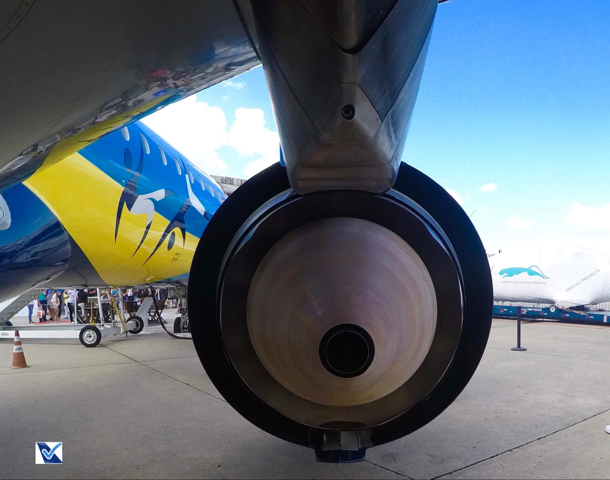 Quando finalmente foi possível entrar, somente o “nosso” E-195 da AZUL estava exposto dentro da exposição (rapidamente, uma enorme fila se formou para a visita ao interior da aeronave). O sempre magnífico B747-8 da LUFTHANSA estava estacionado a esquerda, depois das grades de proteção, sem acesso ao público. Por volta de meio-dia, um A319 da LATAM (com a nova identidade visual depois da fusão entre TAM e LAN) foi rebocado para uma área do lado direito, também sem acesso dos visitantes. Os A29s (Super Tucanos) da Esquadrilha da Fumaça estavam perfilados depois das grades, na parte frontal. Quando eu estava indo embora (por volta de 13:15h, um B737-8 da GOL (com as novas cores da companhia) estava sendo rebocado para ser estacionado na parte interna, ou seja, também seria possível fazer a visita ao interior do Boeing. Além disso, um helicóptero e alguns poucos veículos de operação aeroportuária estavam expostos.