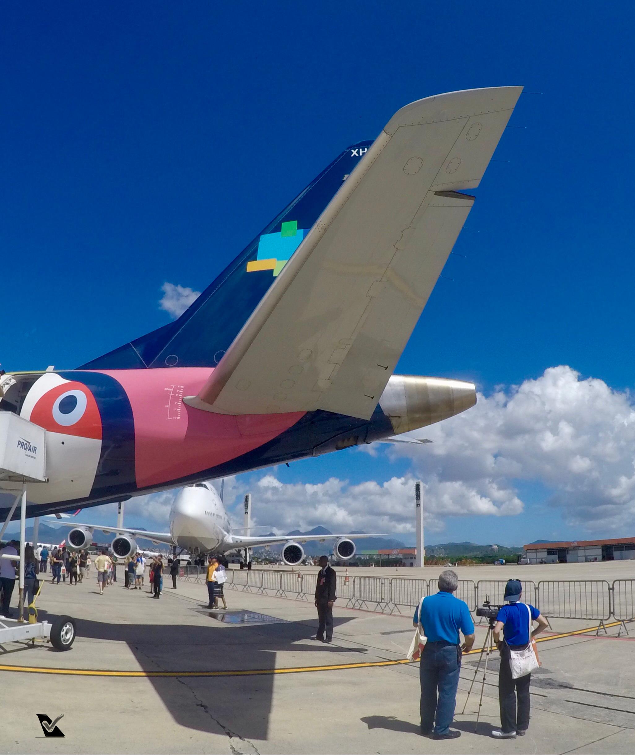 Conseguir tirar fotos dos aviões estacionados depois das grades (B747, Super Tucanos e A319) era um desafio: os seguranças criaram “uma linha imaginária” de 02 metros da grade onde não era possível “invadir”. Não entendi este procedimento de segurança: para que serve a grade?!?!? Surreal e injustificável.