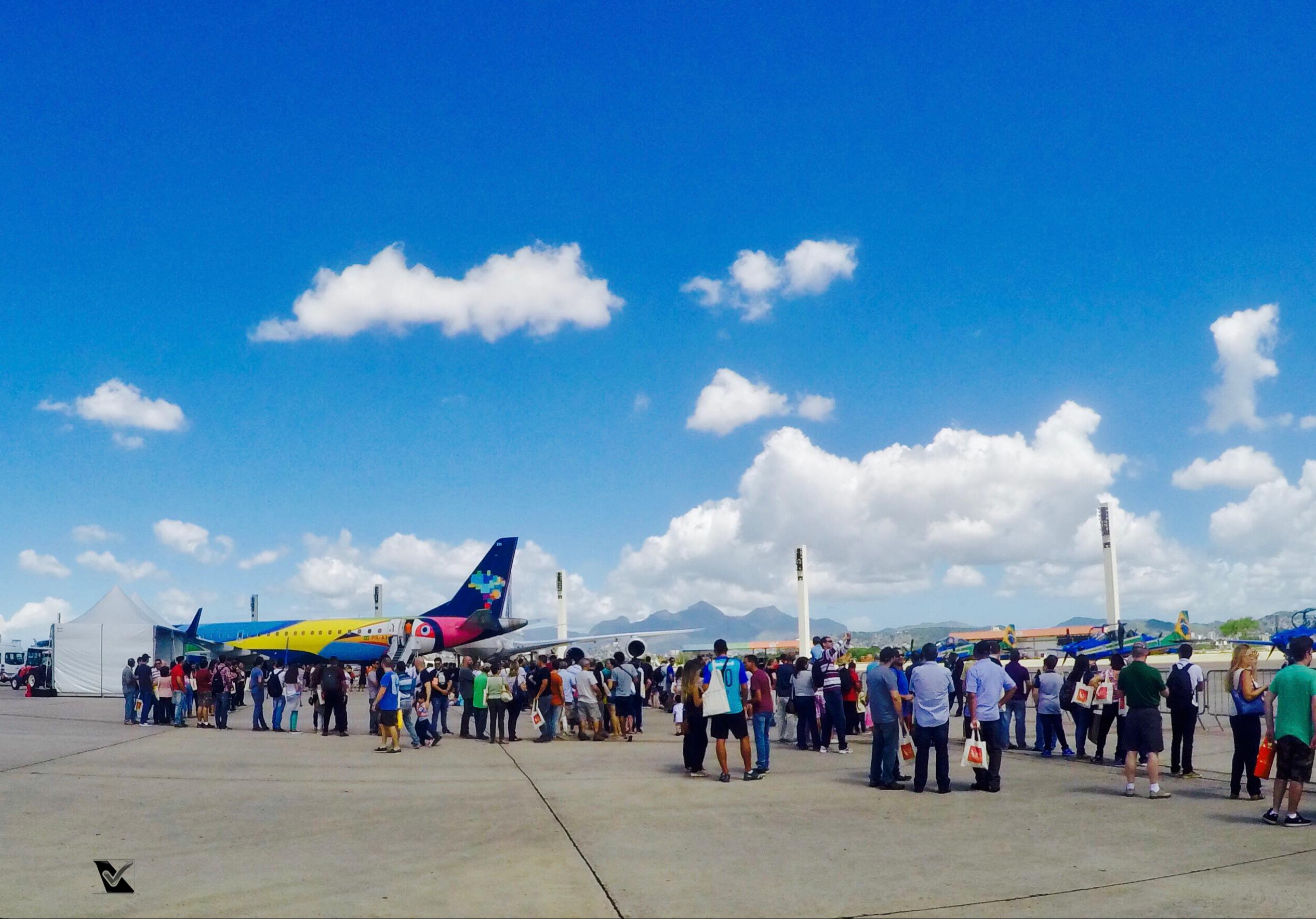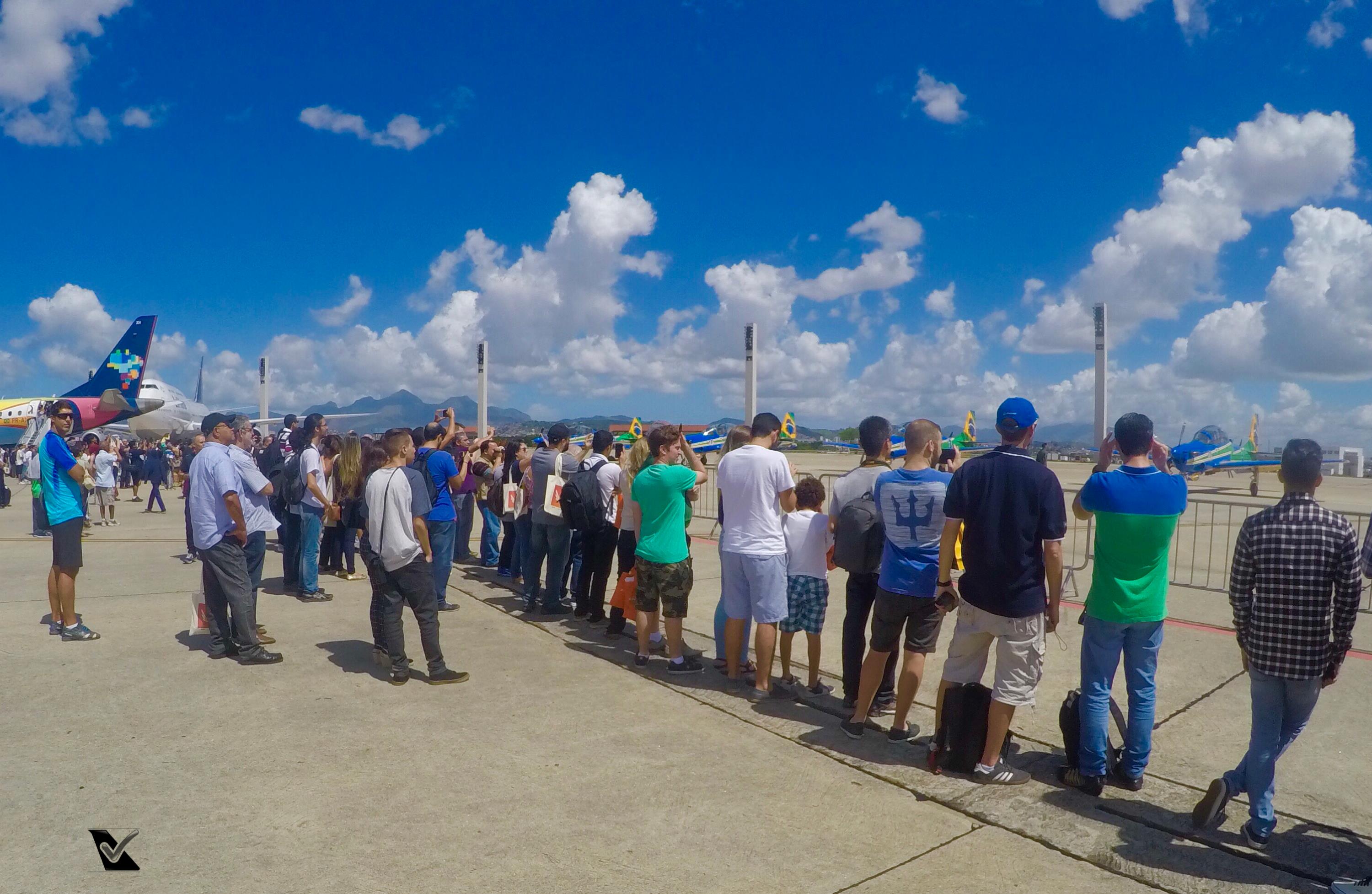 A exposição estática de aeronaves acontecia na área externa do Terminal 1. O acesso só foi permitido por volta de 11:20h, um grande atraso, que provocou uma imensa fila.