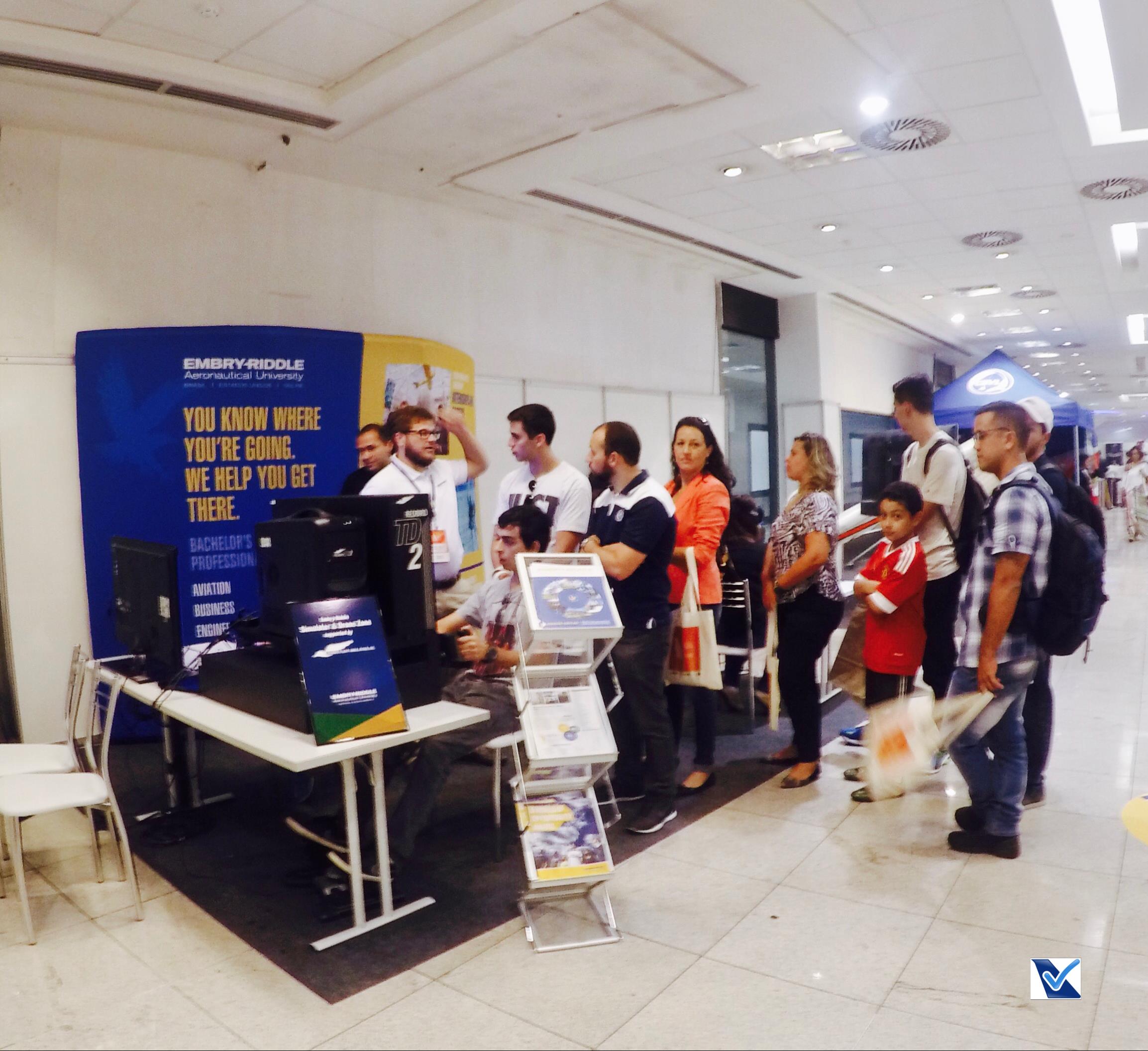 Em 02 andares da área interna do Terminal 1 foram montadas as estruturas com a maioria das atrações anunciadas pela organização do evento. A parte com os estandes das empresas expositoras estava vazia, pouquíssima gente circulava por lá. Em outra área estavam os simuladores (na verdade, uns computadores mais sofisticados, com mais alguns botões e telas), o espaço kids e a exposição de falcões e gaviões que são usados para o controle de fauna nos arredores de aeroportos. No geral, tudo era muito simples, nada que chamasse muito a atenção do público presente.