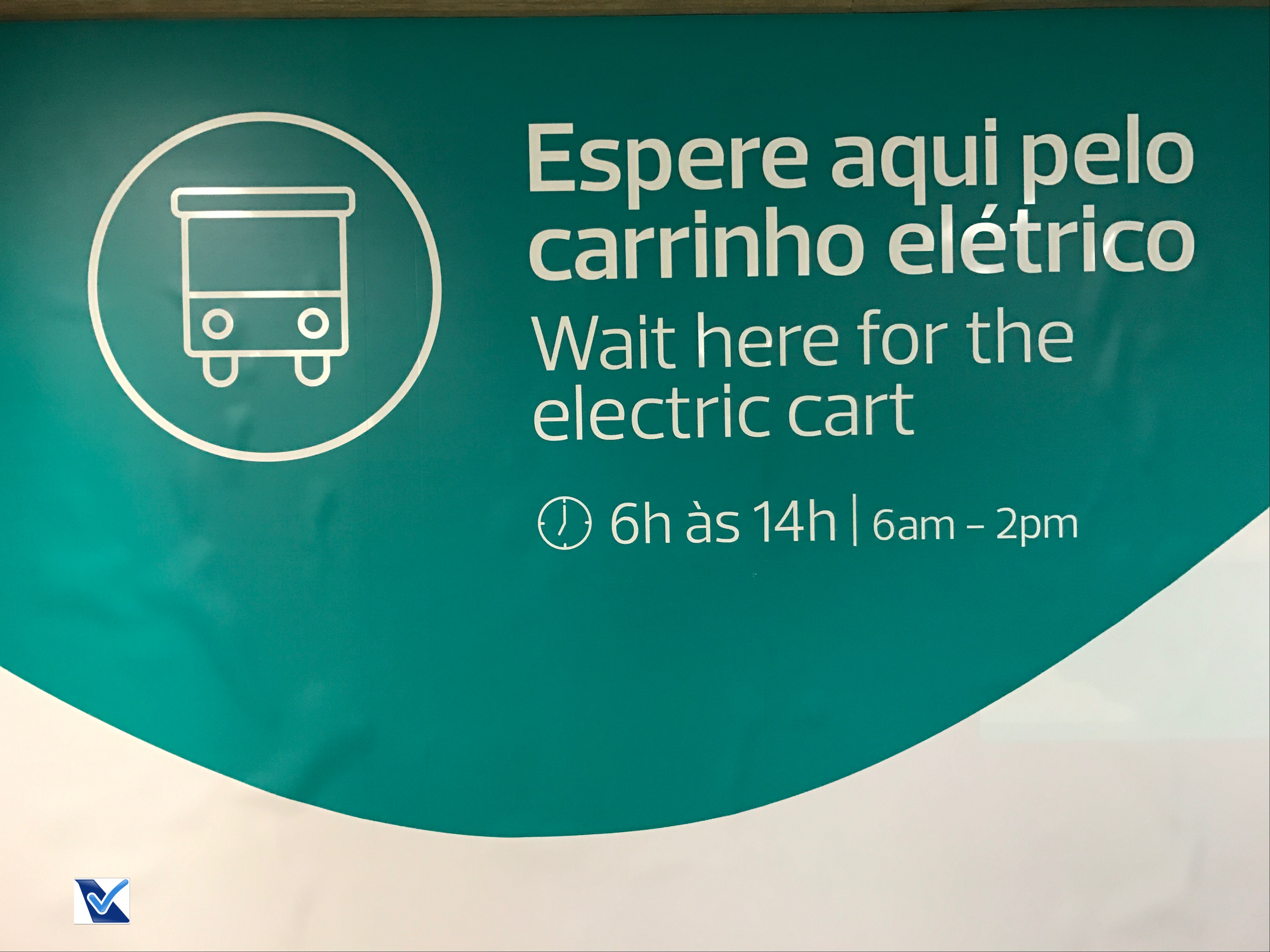 No início deste corredor, um grande painel indica que carrinhos elétricos estão disponíveis para ajudar no transporte de pessoas somente entre 06:00h às 14:00h. Estou tentando entender qual é a lógica deste horário tão reduzido…