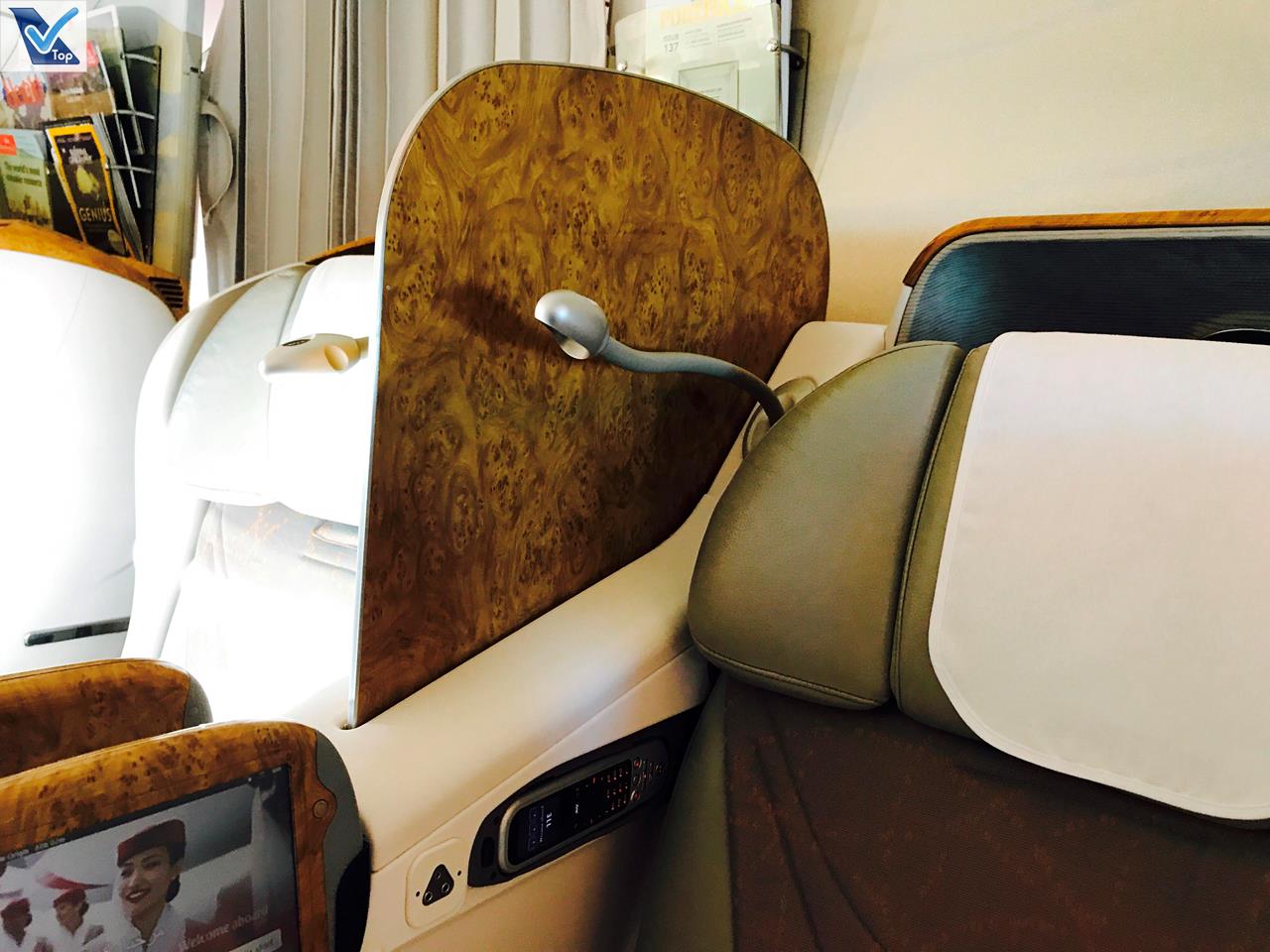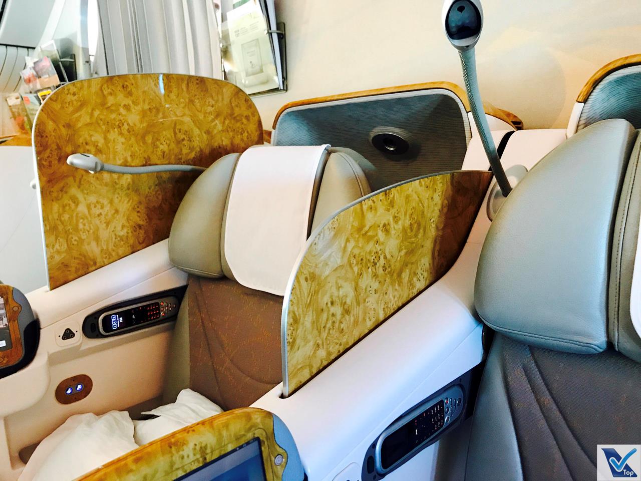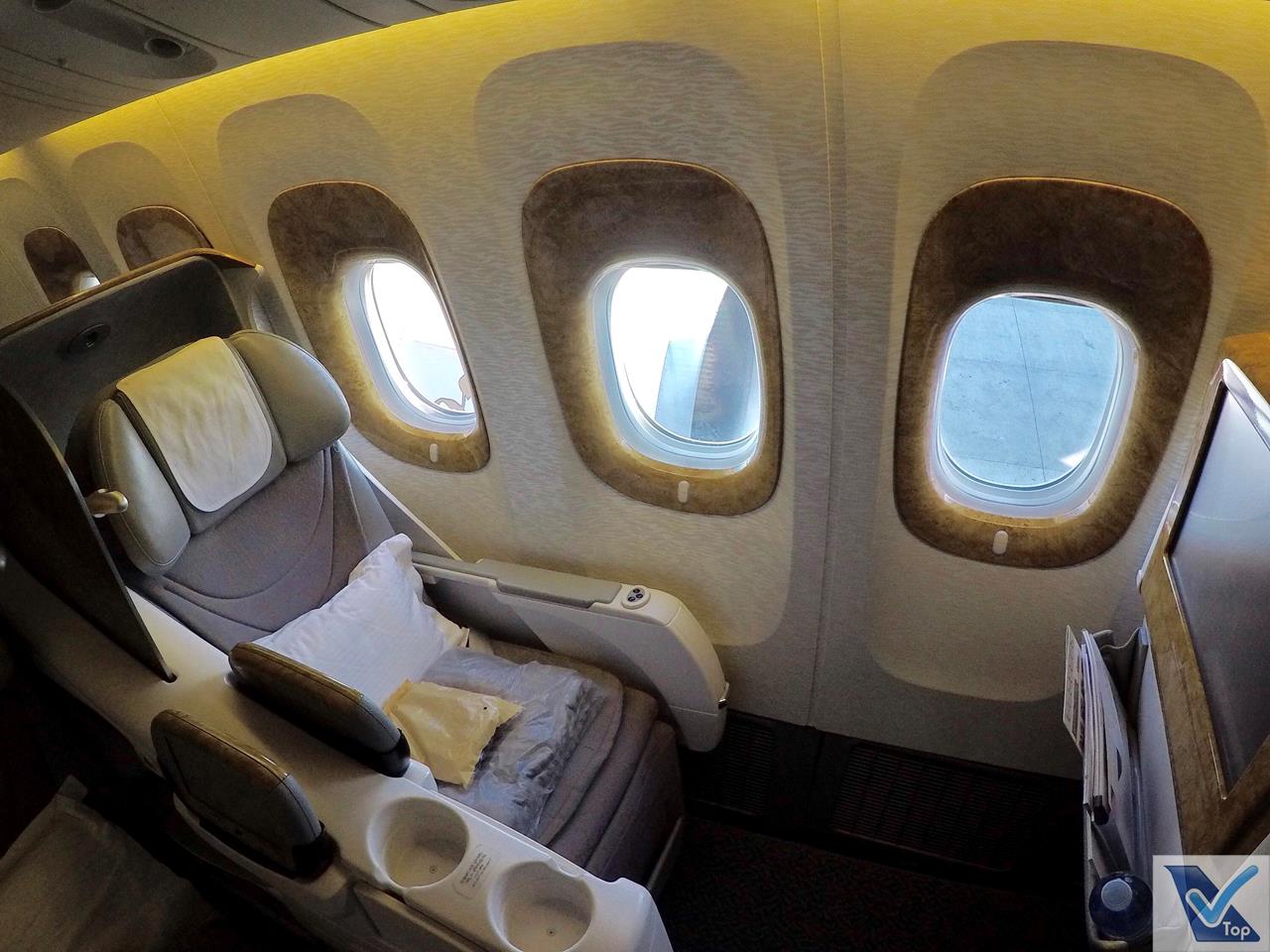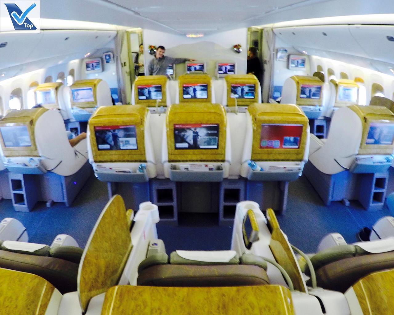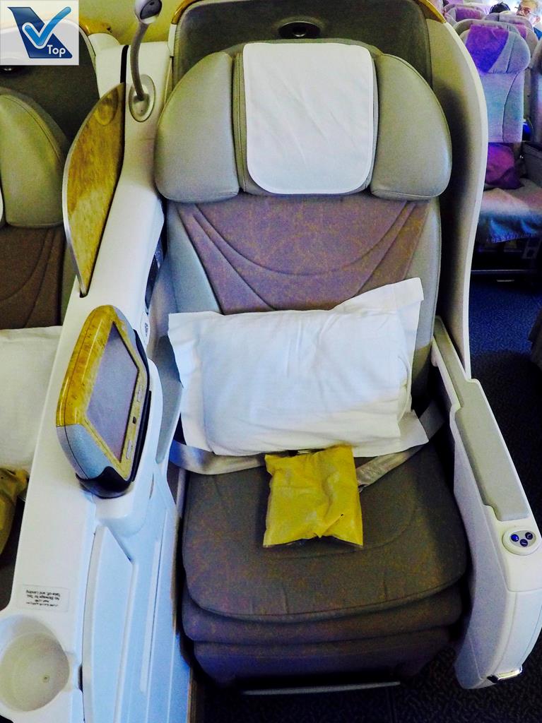 – com o código do bilhete fornecido pelo Smiles, foi possível fazer reserva de assento diretamente no site da EMIRATES, de forma gratuita; a configuração da Executiva do B777 da companhia do Golfo Pérsico é semelhante à utilizada pela LATAM em seus aviões de mesmo modelo: 2 x 3 x 2, ou seja, dos 42 assentos, somente 24 permitem que o passageiro tenha acesso direto ao corredor; além disso, há a tenebrosa poltrona do meio na parte central da aeronave; em resumo, não é uma boa estrutura; escolhi o assento 11D, um corredor, na última fileira da cabine