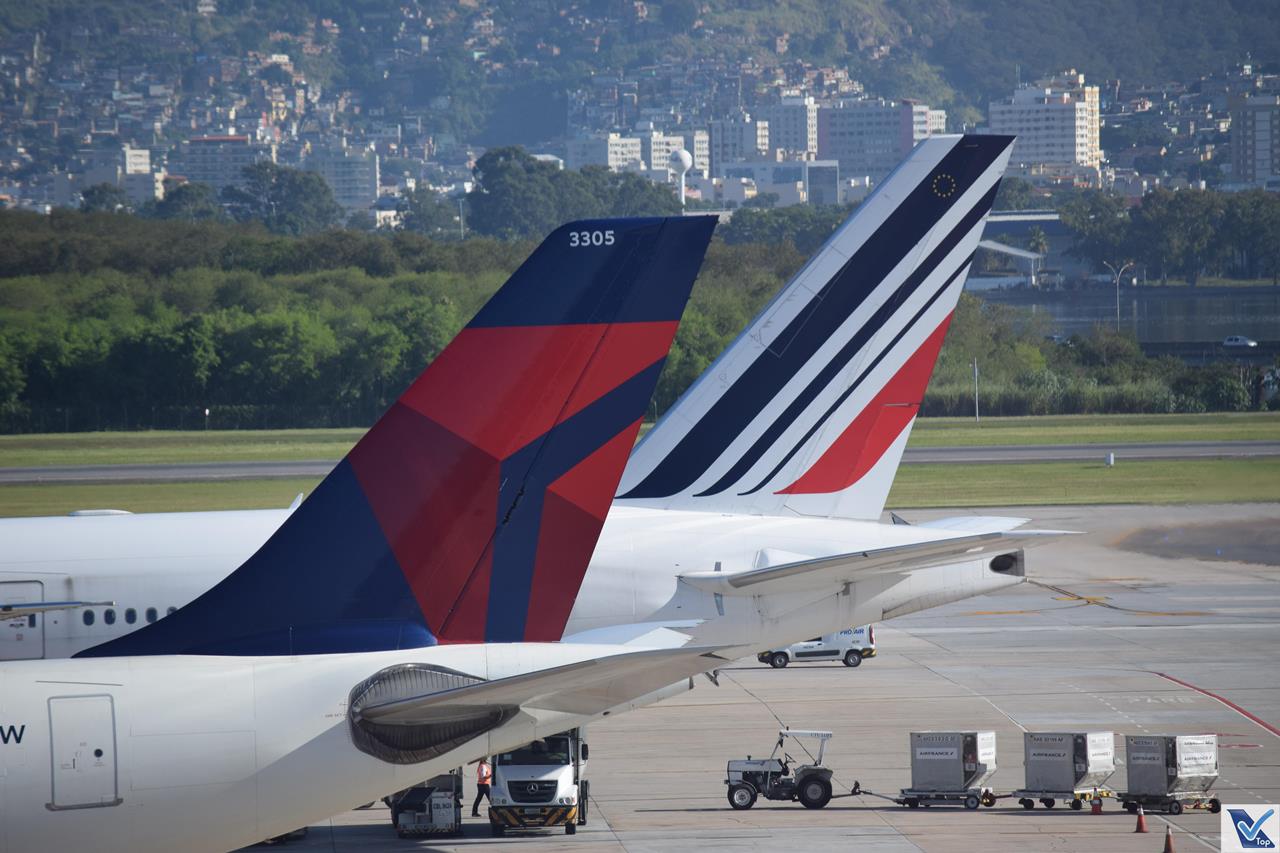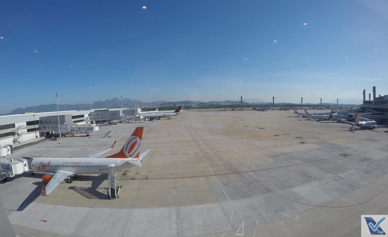 – as grandes e ainda limpas janelas do lounge são um convite para mais alguns registros do pátio do GIG, mas, neste dia, poucos aviões estavam por lá