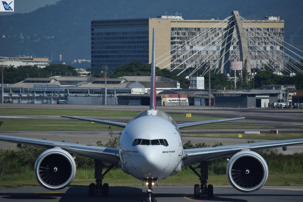 – o B777 alinhou na cabeceira da pista 15 do Galeão (que tem 3.180 metros de extensão) às 16:19h, logo em seguida, foi inicada a aceleração em potência máxima dos 02 motores General Electric, foram 35 segundos para começarmos a ganhar altitude