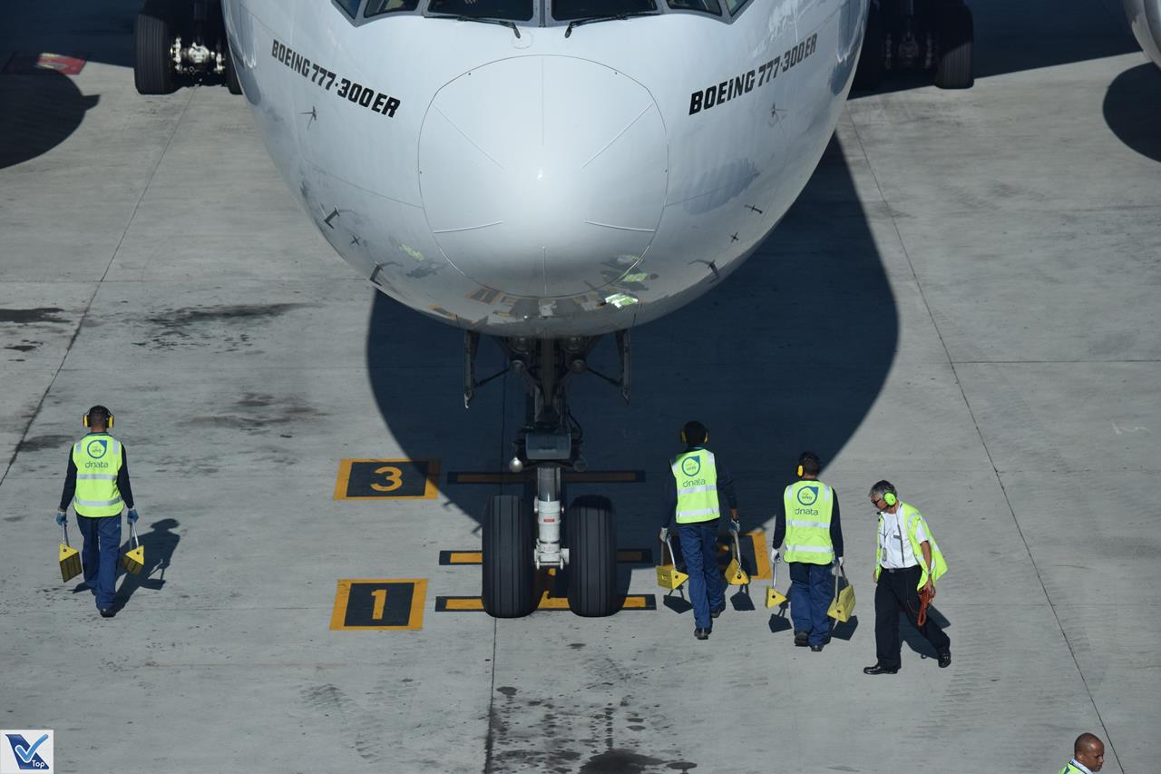 – o embarque em um dos 140 B777s (isto mesmo, este é o tamanho da frota!) que a EMIRATES opera atualmente foi iniciado às 15:40h; os funcionários organizam 02 filas: uma para as prioridades e outra para os demais passageiros; os ocupantes da 1ª Classe e classe Executiva entram de forma dedicada pela porta mais frontal da aeronave