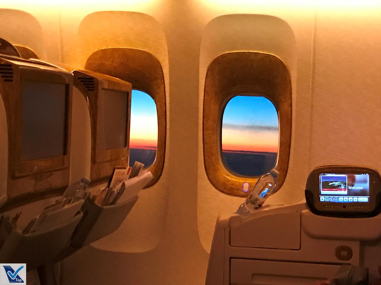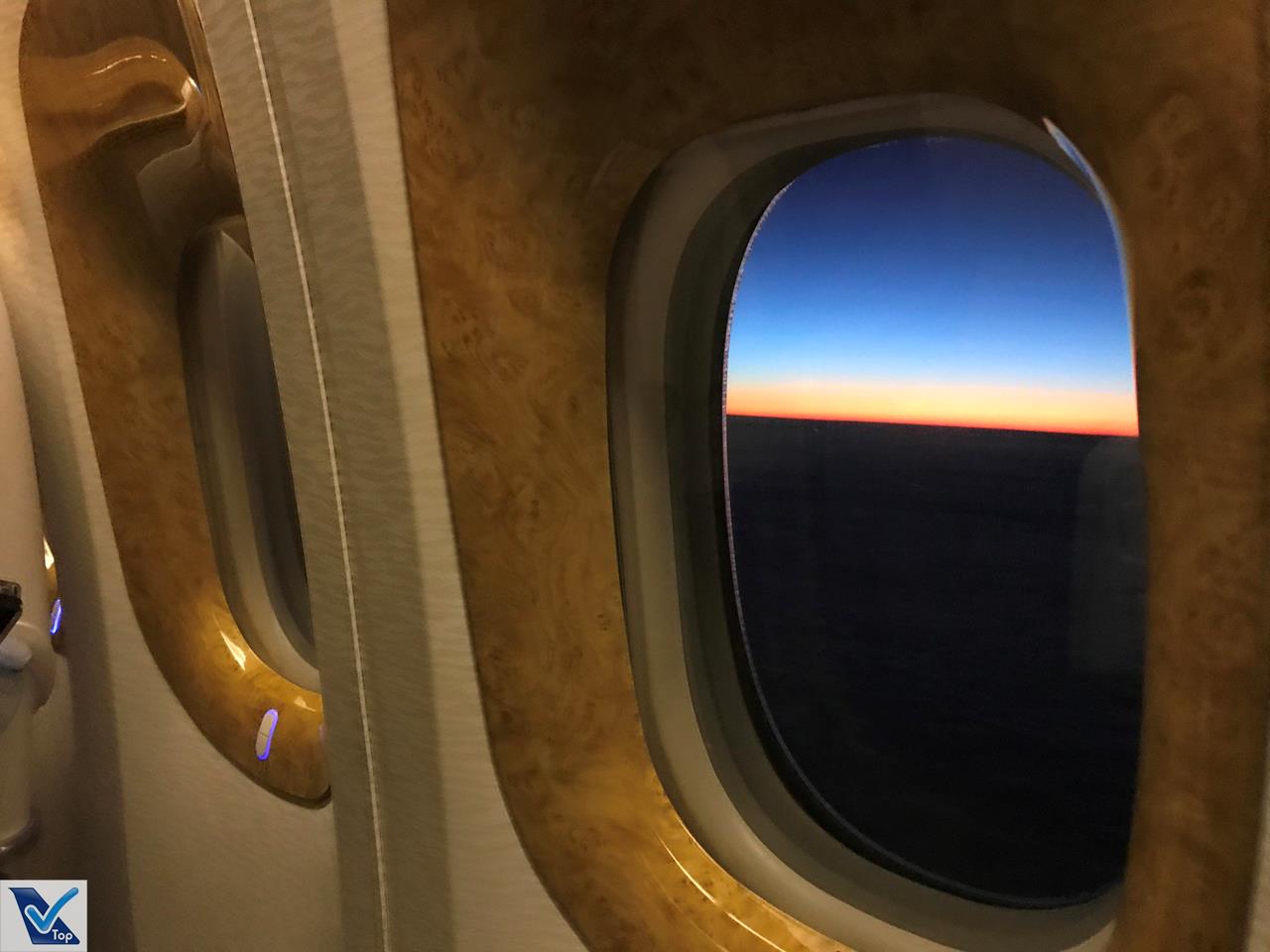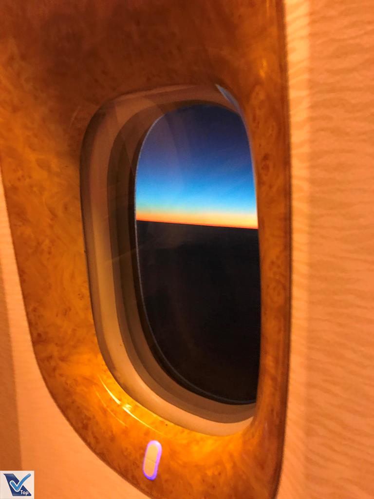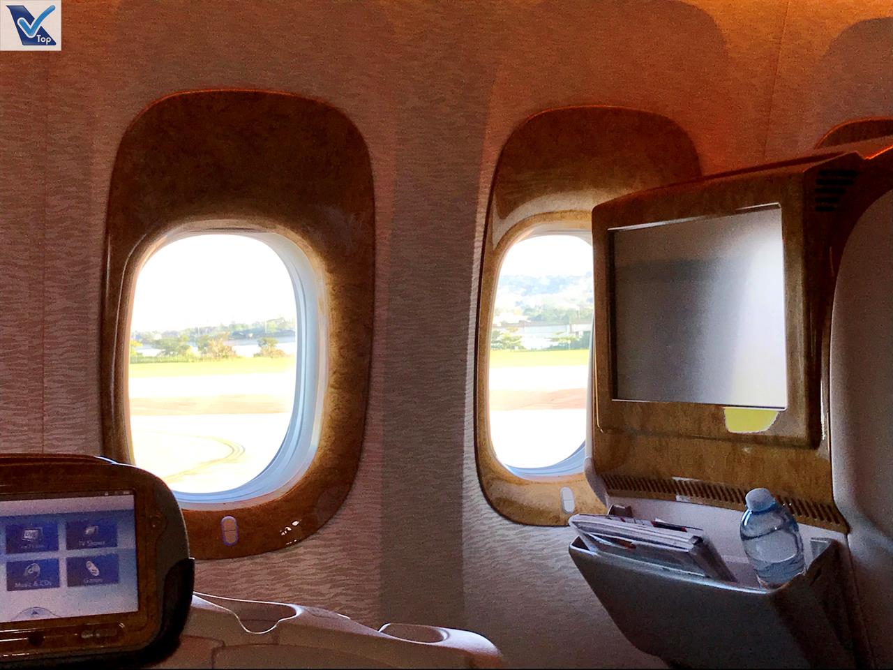 – outro detalhe do luxo oferecido pela EMIRATES é o sistema de cortina das janelas na cabine Executiva: um sistema eletrônico faz subir e descer uma charmosa cortininha sanfonada
